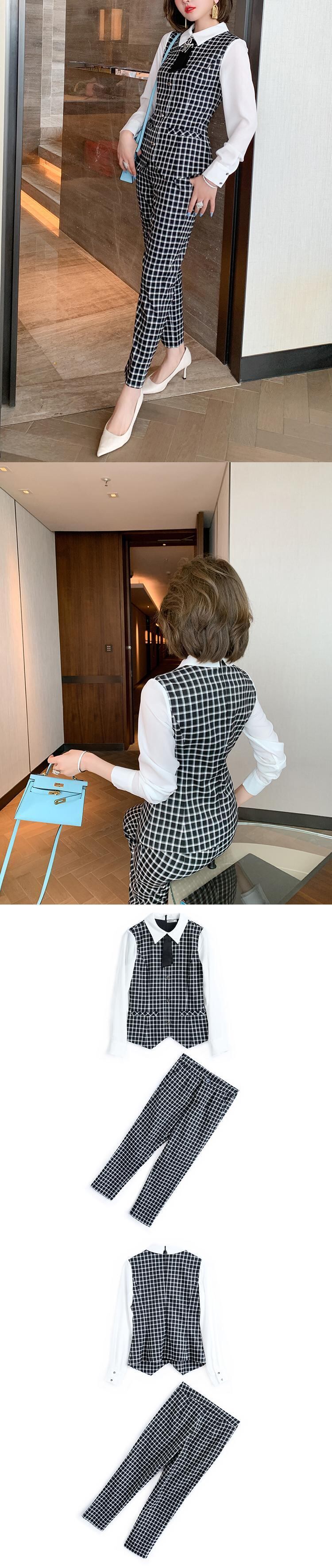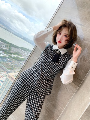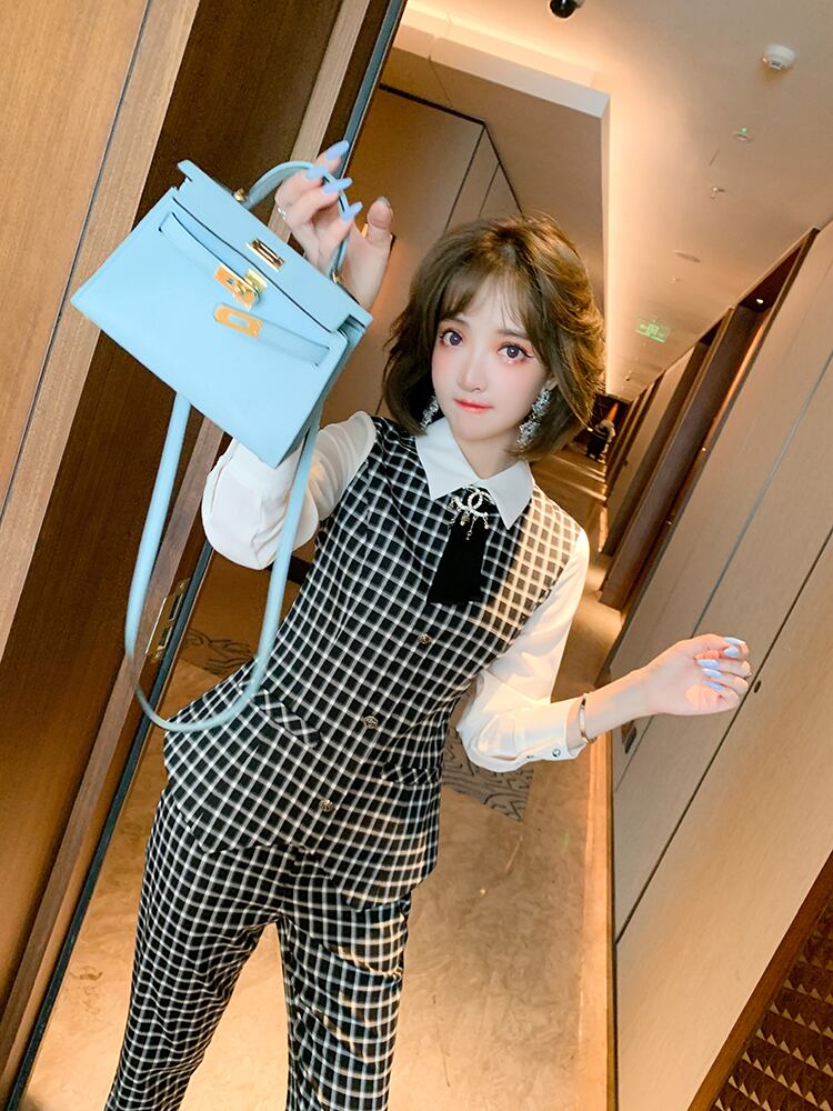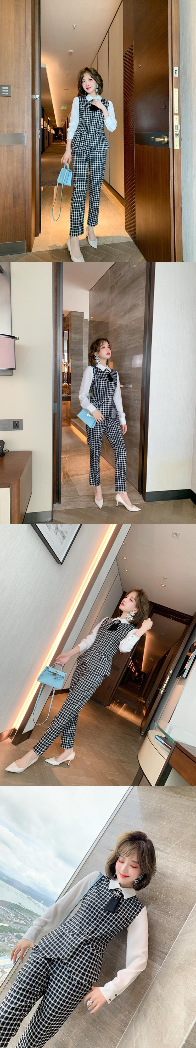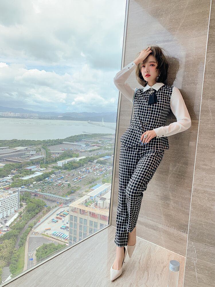 スタイルシャツ ハイウェストウェスト格子柄パンツ オータム 秋物 MIUCO46051453827