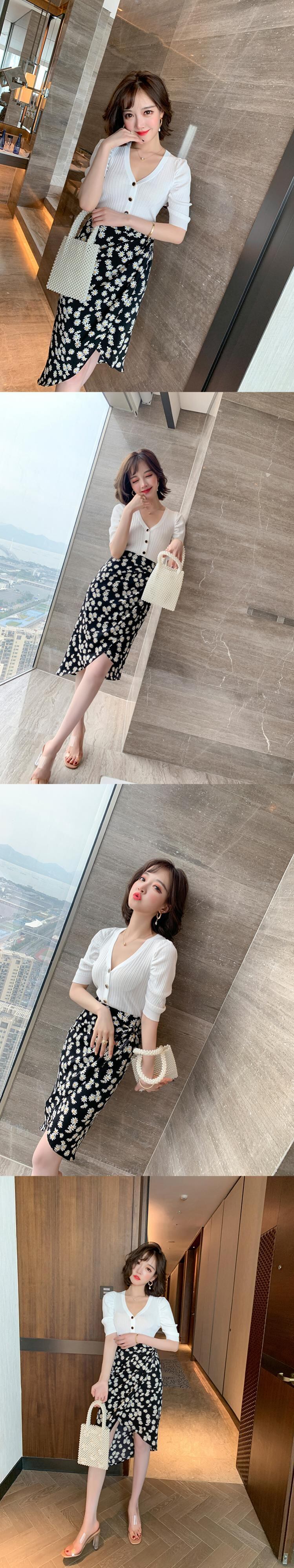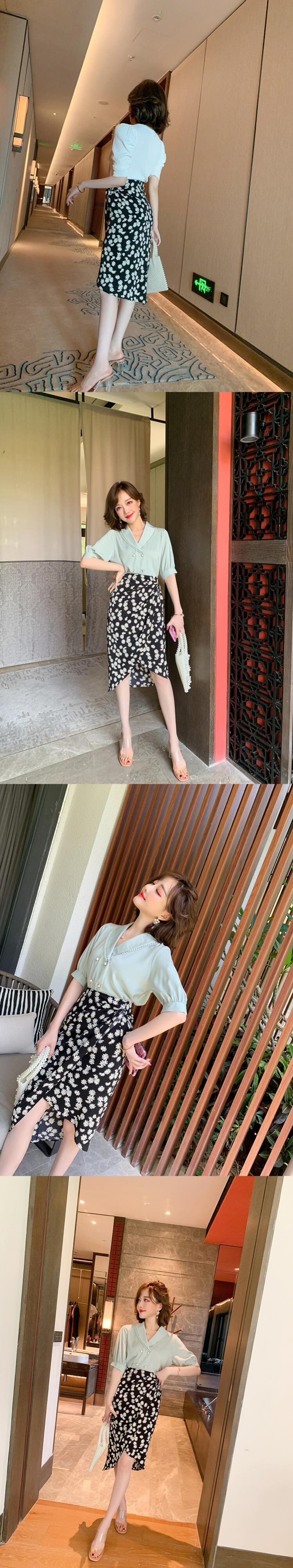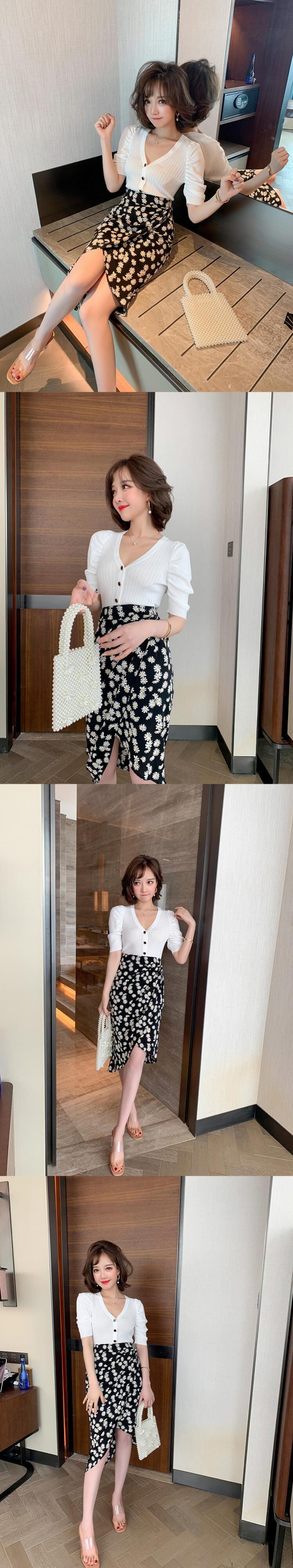 ハイウェストウェストスリムプリント柄スカート サマー 夏物 MIUCO77294765691