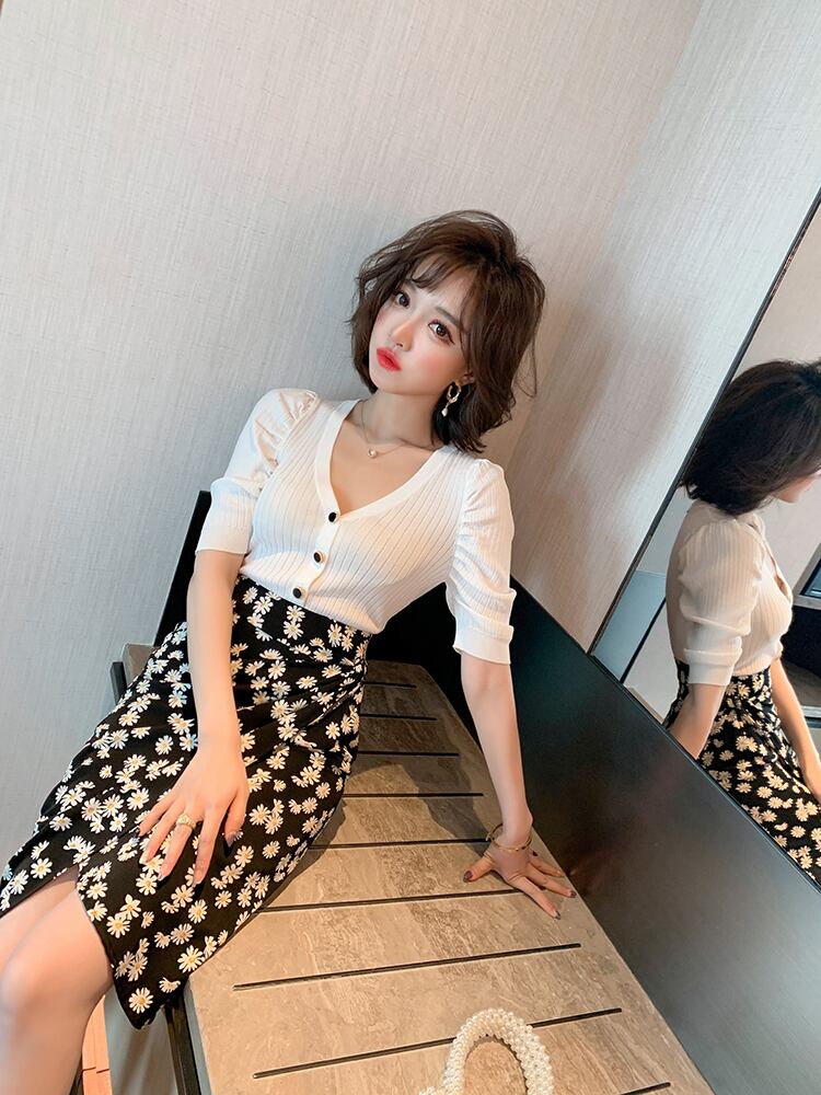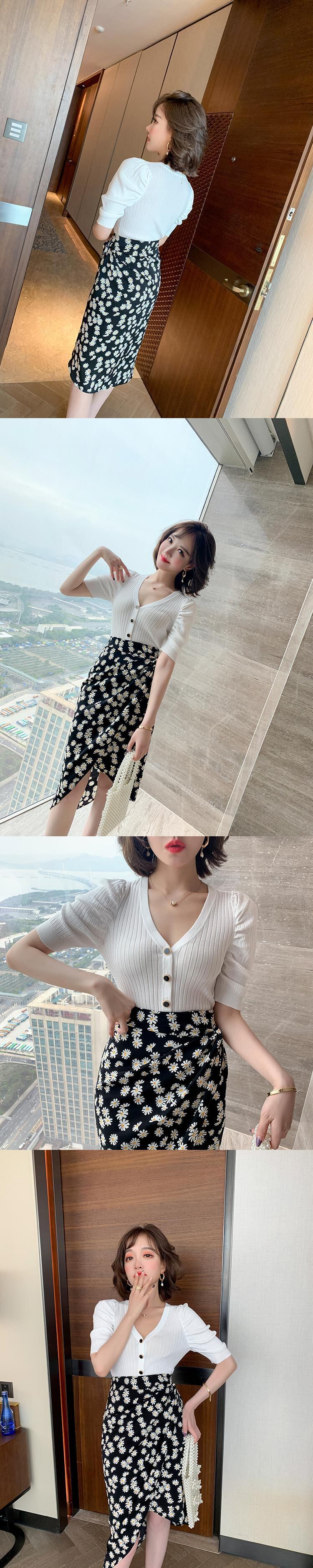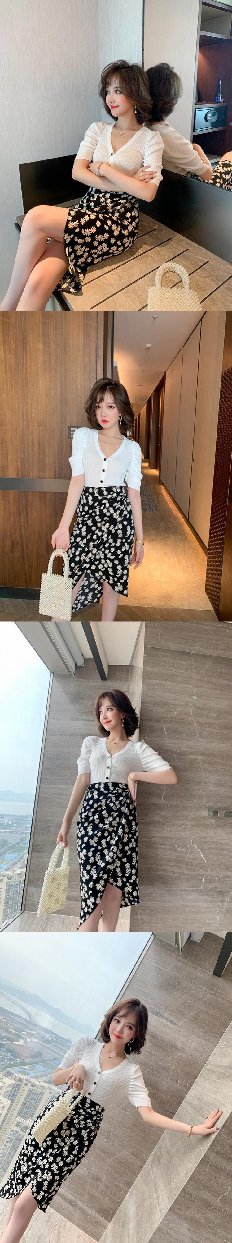 ハイウェストウェストスリムプリント柄スカート サマー 夏物 MIUCO77294765691
