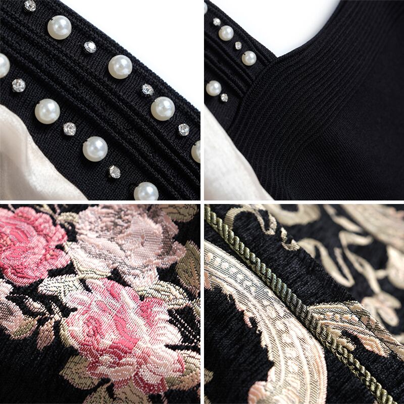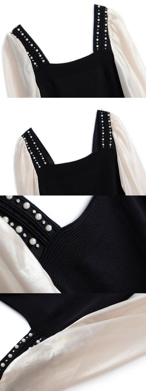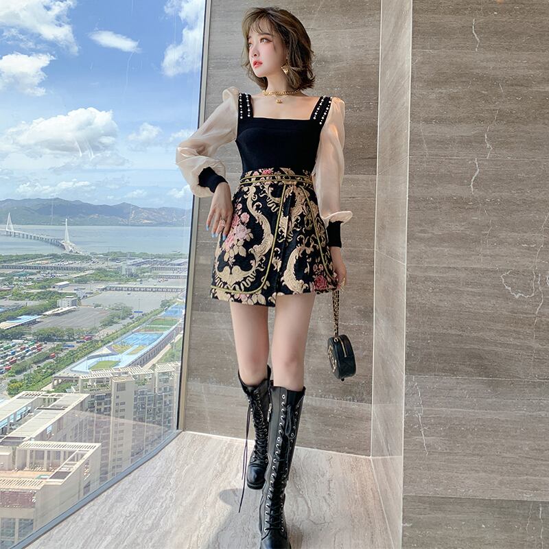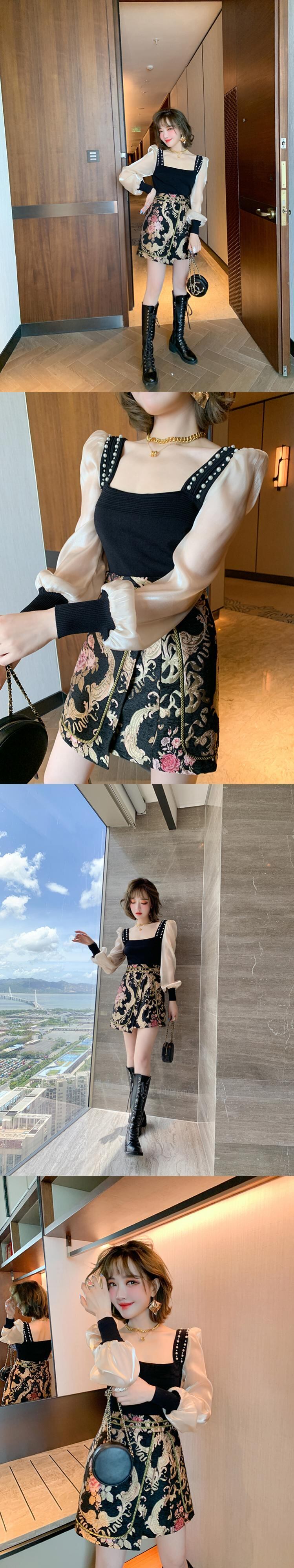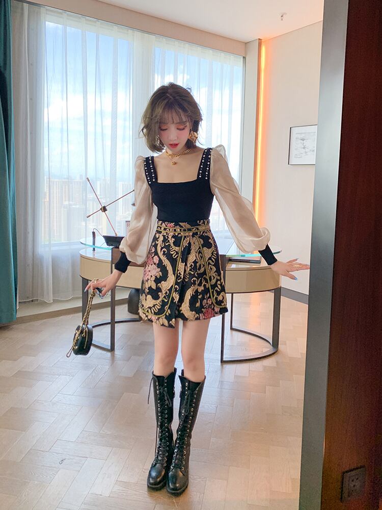 カラースリーブシャツ スタンダードジャカードスカート セット レトロ スクウェア MIUCO99909106517