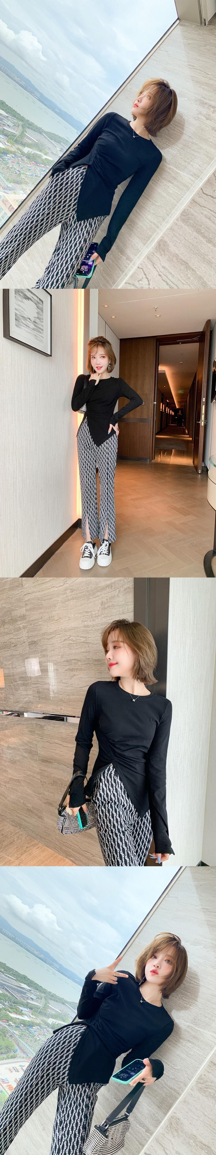 ラウンドネックトップス パンツ Oネック MIUCO94089803566