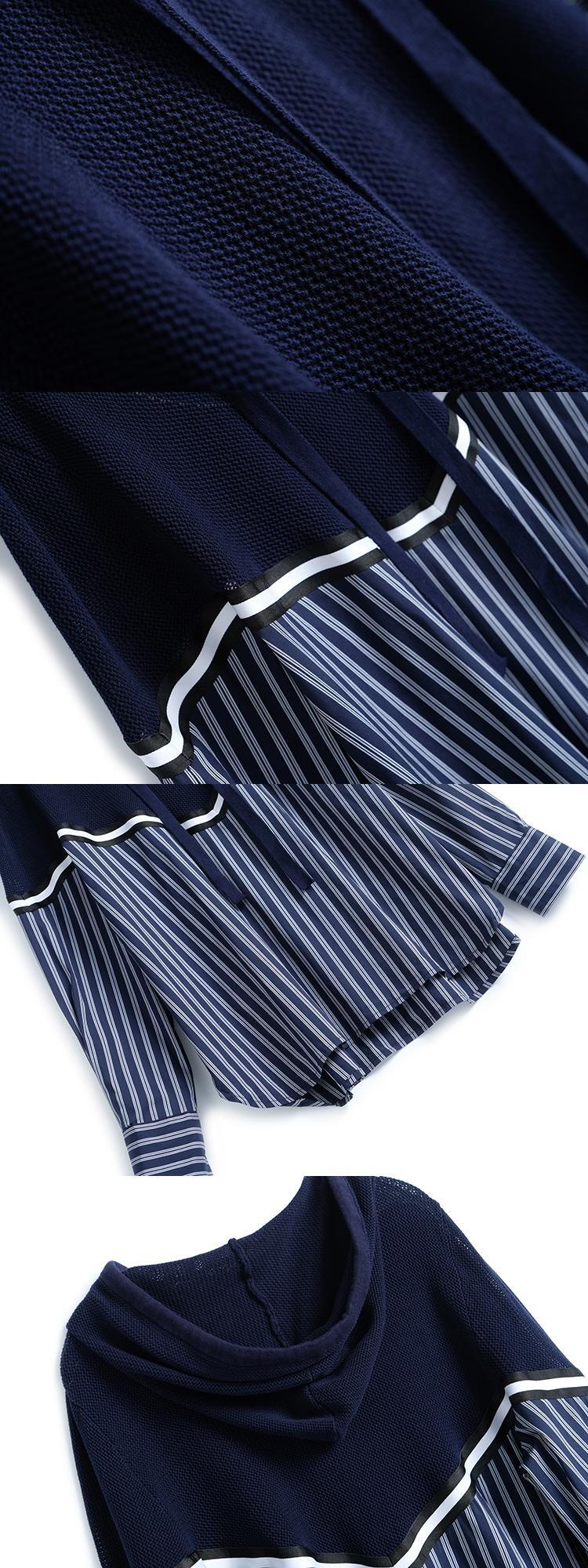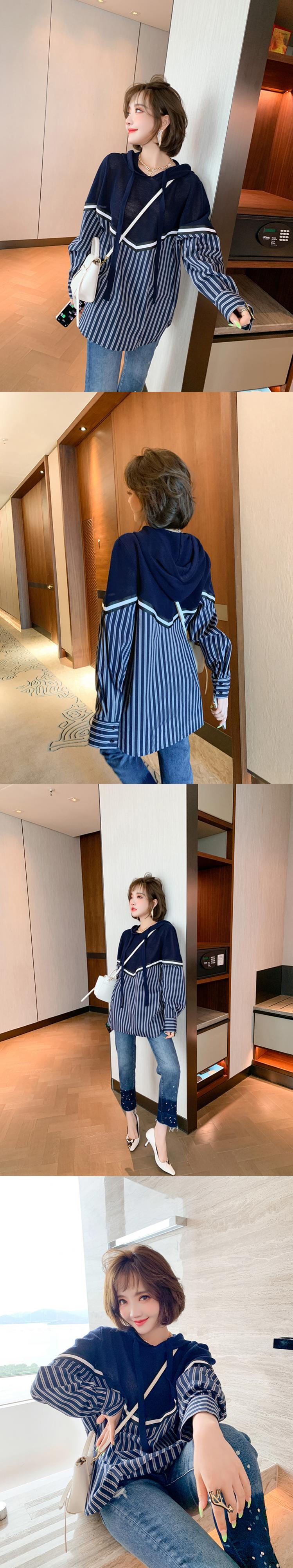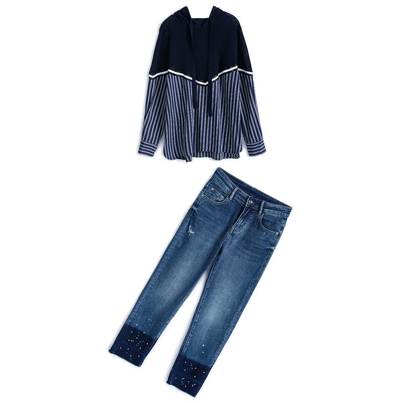 フードニットストライプトップス ジーンズ セット オータム 秋物 ステッチ MIUCO68292026883