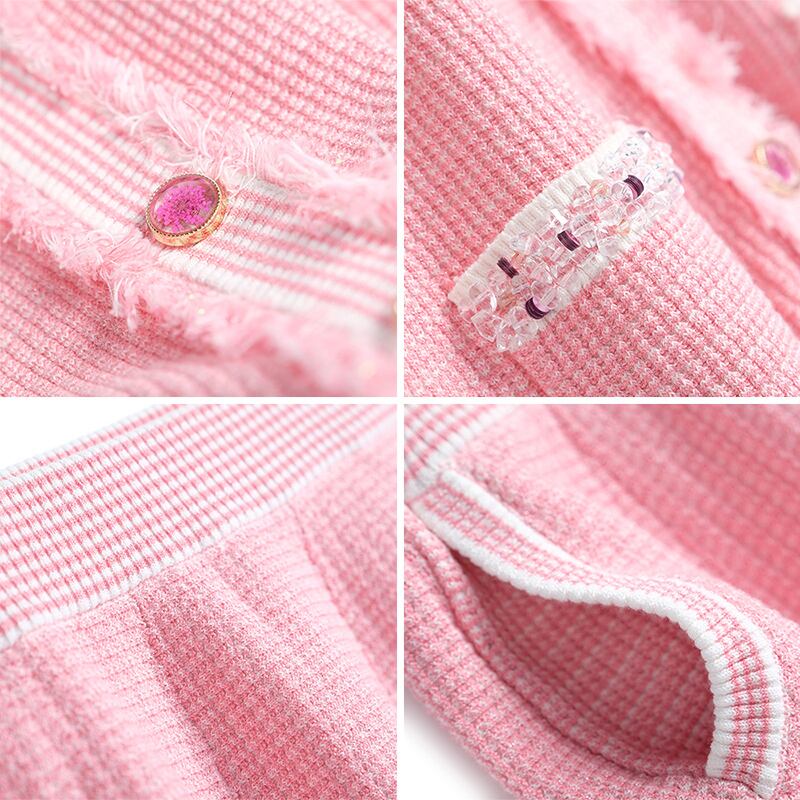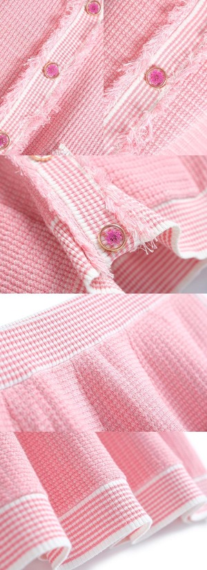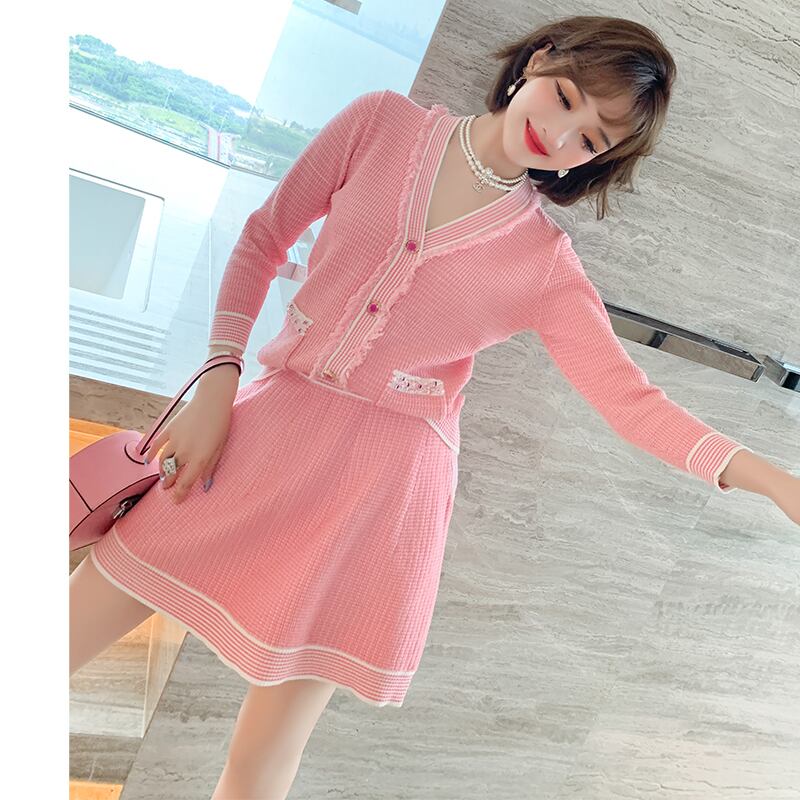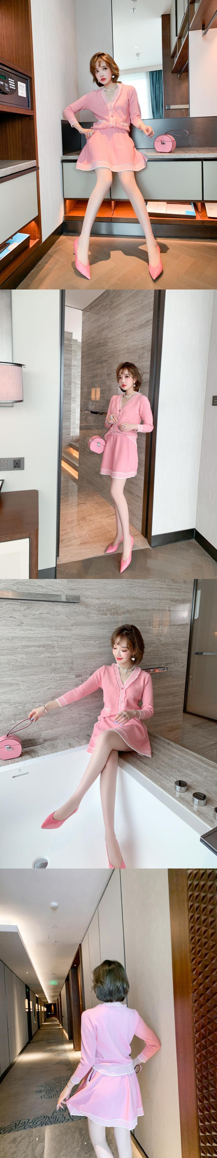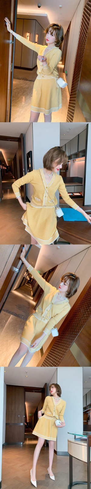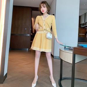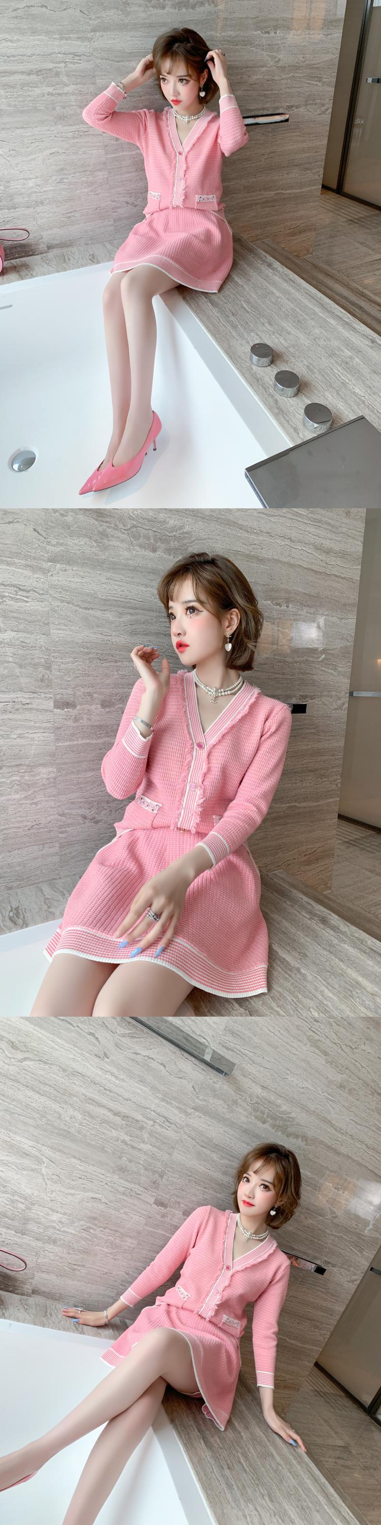 Vネックポケットニットトップス ウェスト薄手Aラインスカート オータム 秋物 MIUCO45628282280