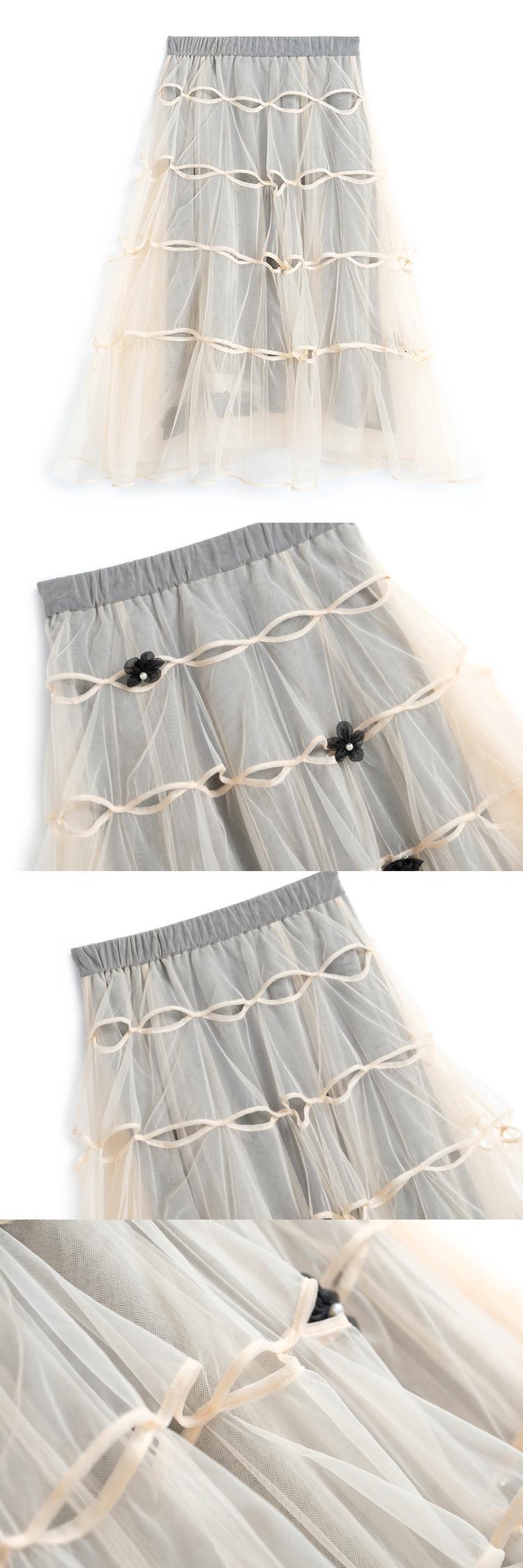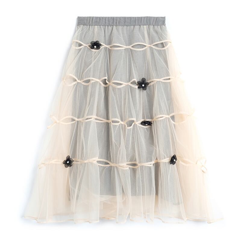 ハイウェストウェストFlowerデザイン スカート オータム 秋物 フラワーデザイン MIUCO40572629835