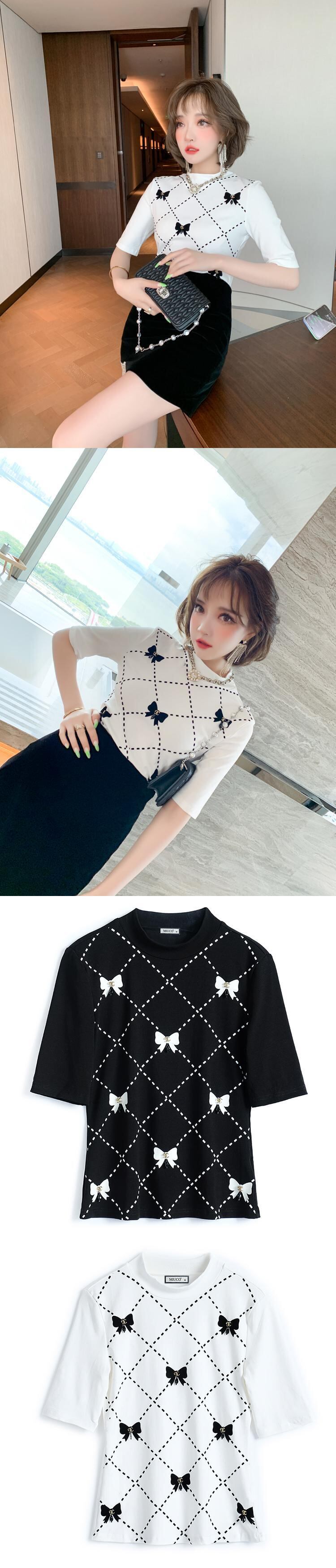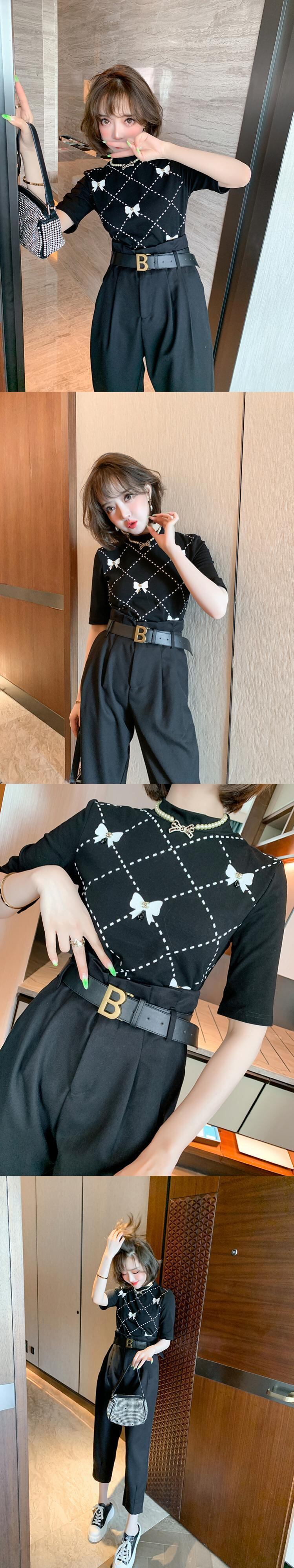 カラーラインプリントスリムTシャツ オータム リボン エレガント 秋物 MIUCO88868682088