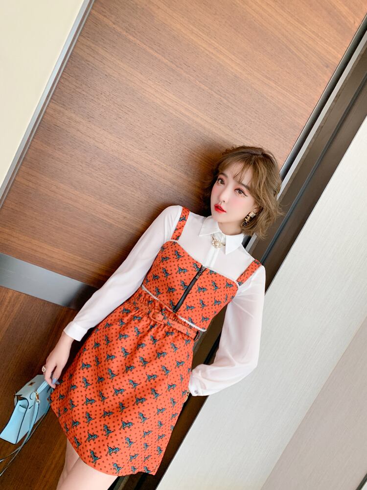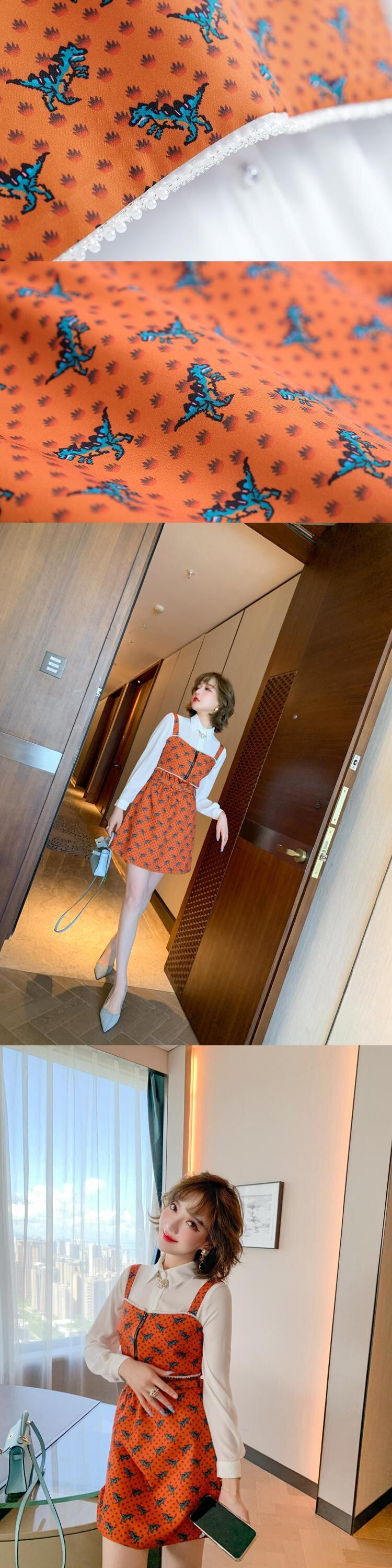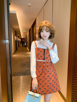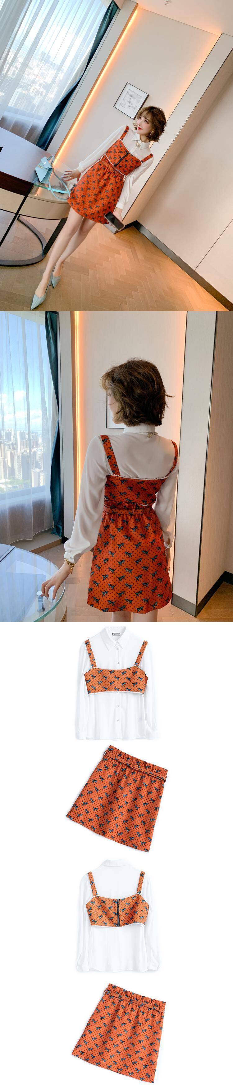 プリントソリッド カラーシャツ ハイウェストAラインスカート オータム 秋物 ソリッドカラー MIUCO842715805
