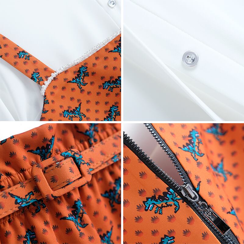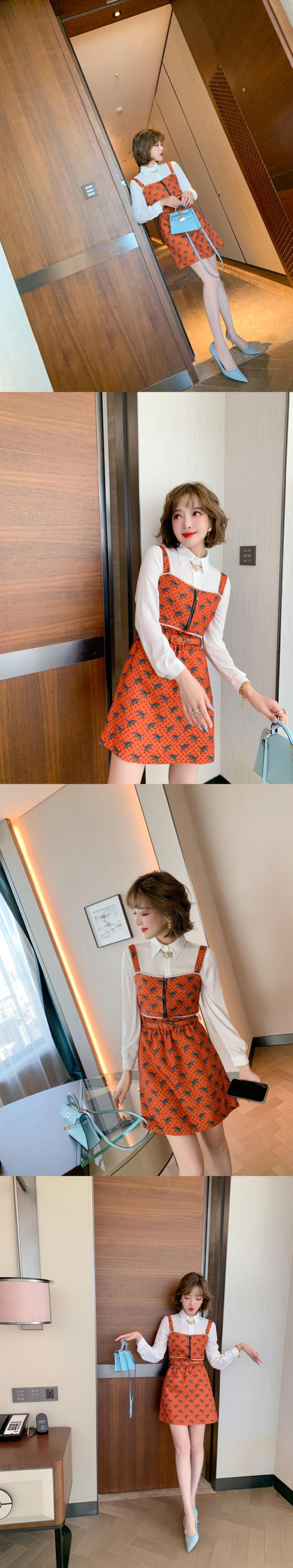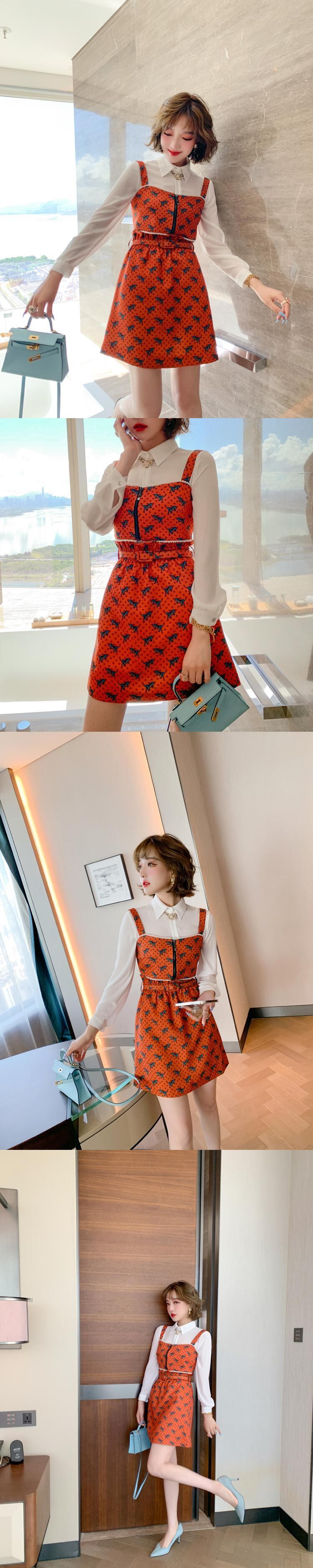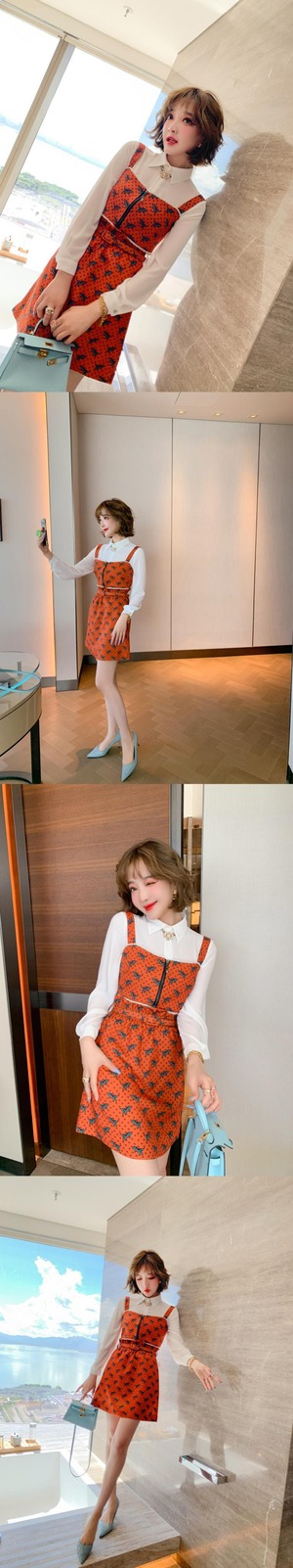 プリントソリッド カラーシャツ ハイウェストAラインスカート オータム 秋物 ソリッドカラー MIUCO842715805