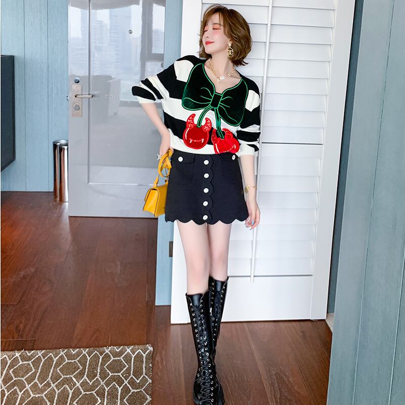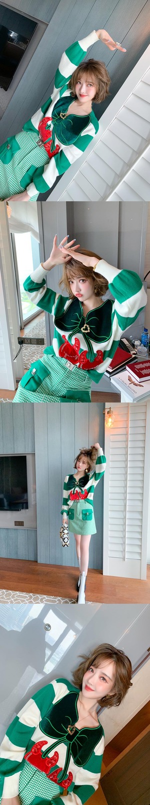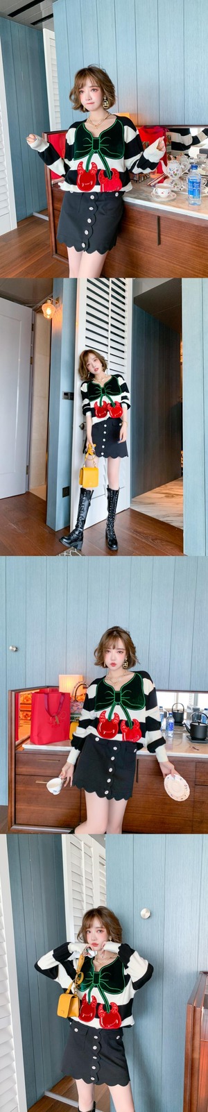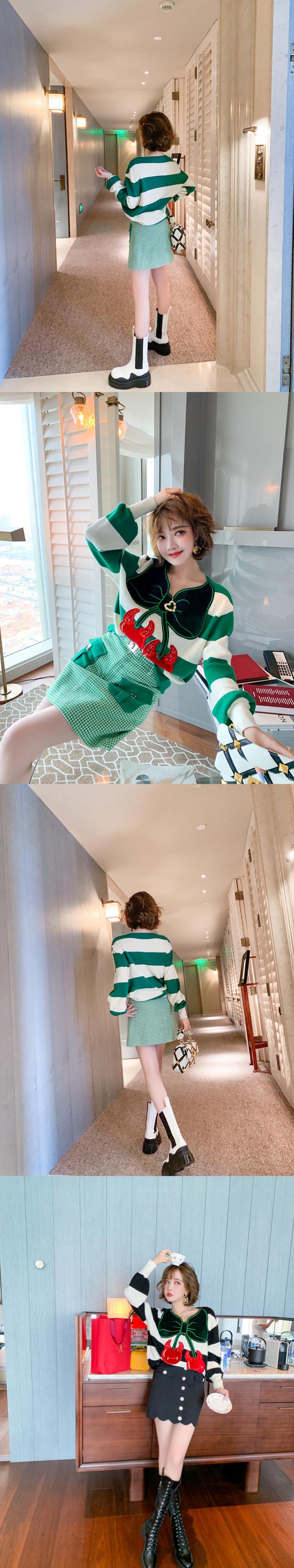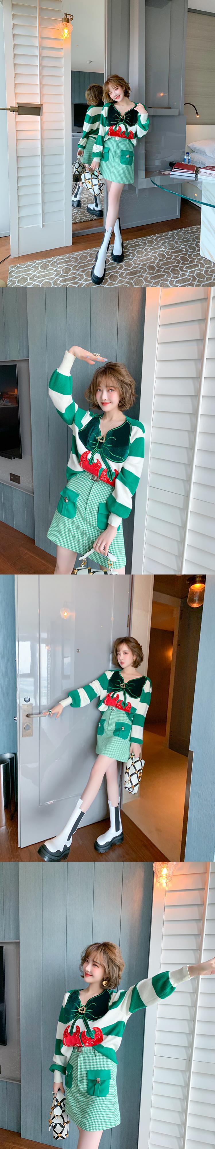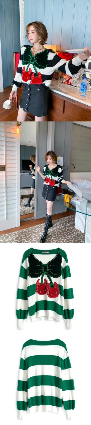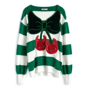 ストライプパターンルーズニット リボン MIUCO69125112969