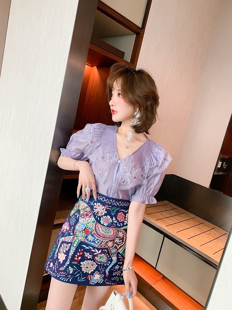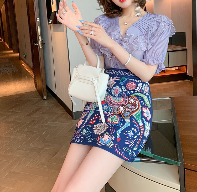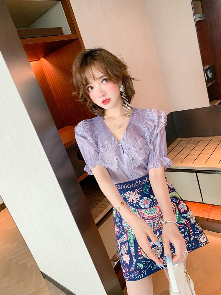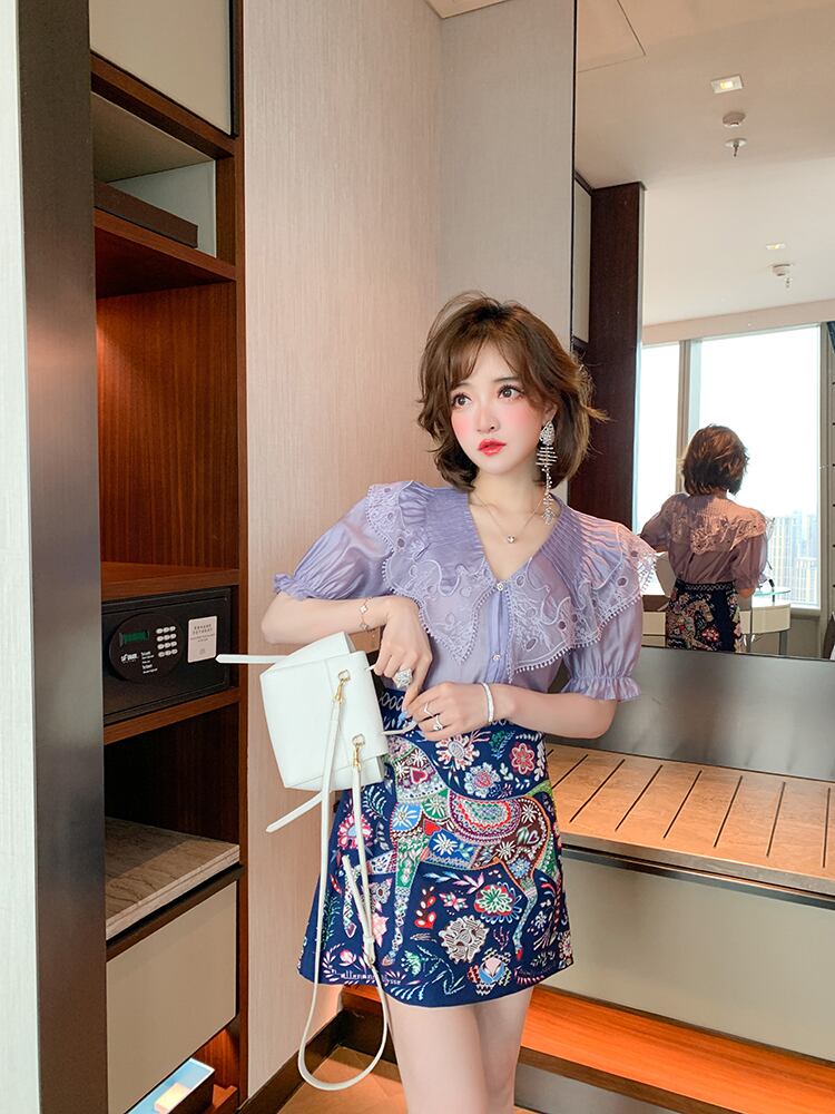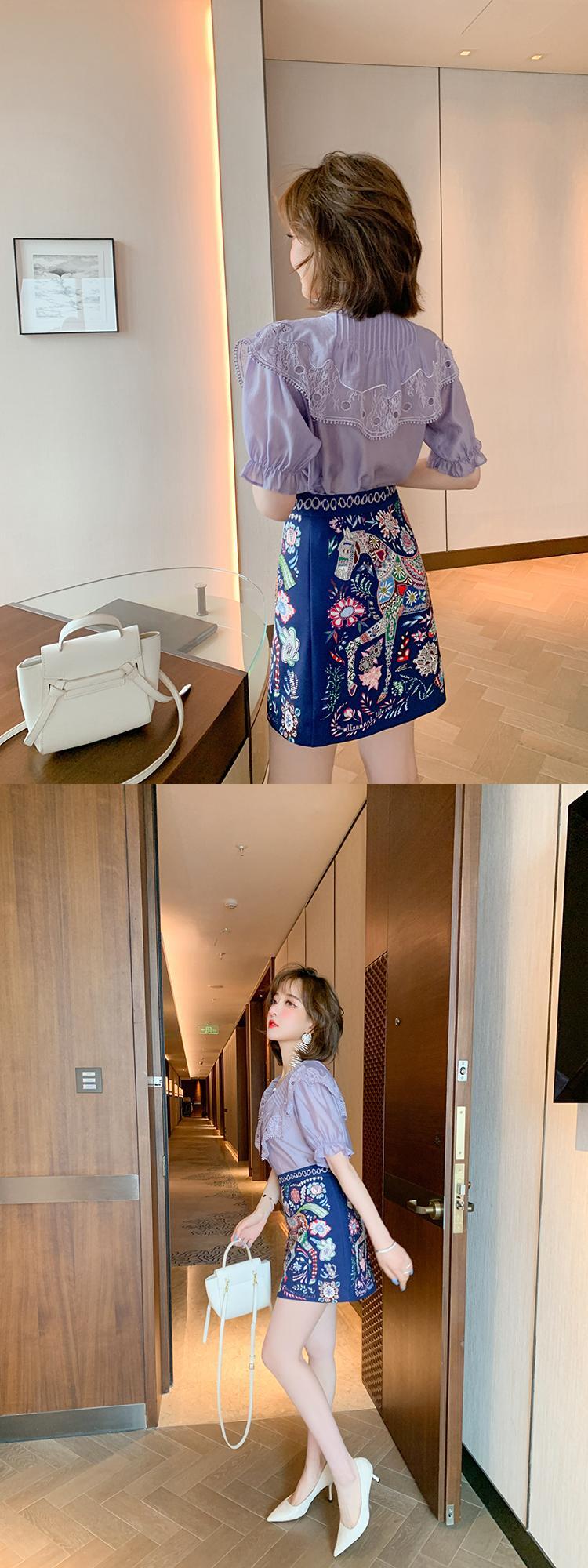 レーストップス ジャカードスカート セット オータム レッド 刺繍 秋物 MIUCO78663960003