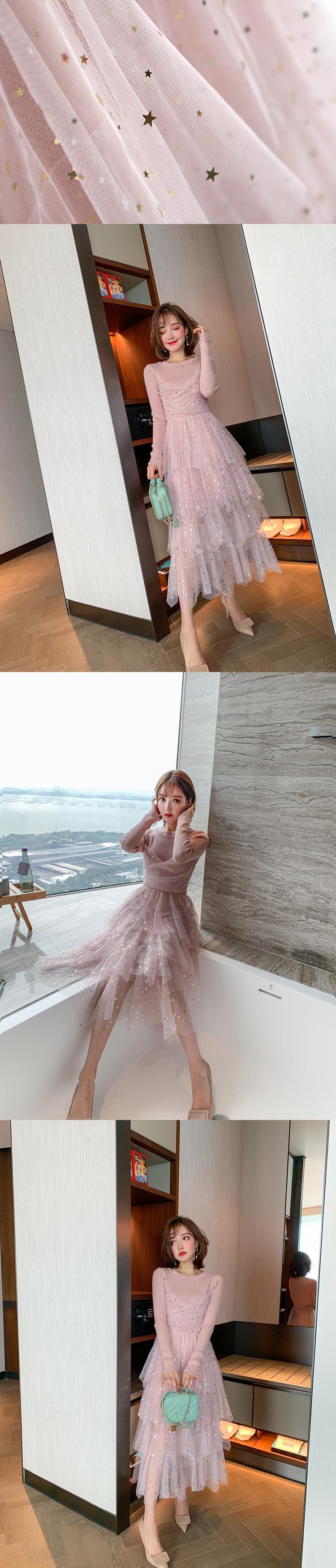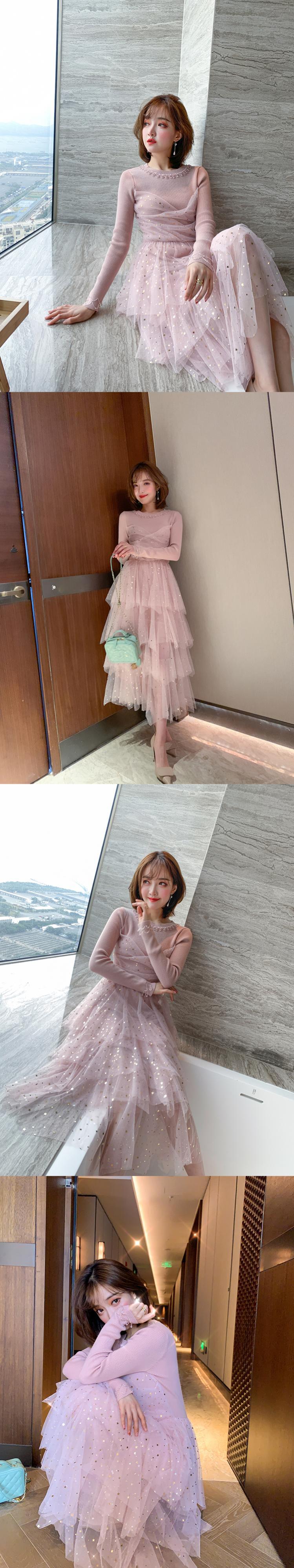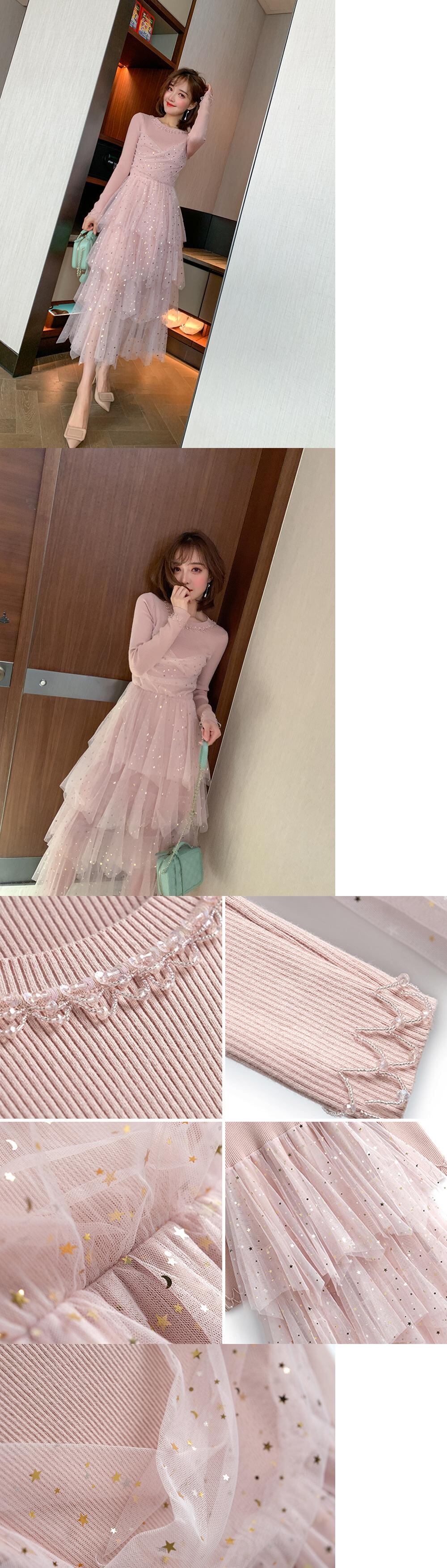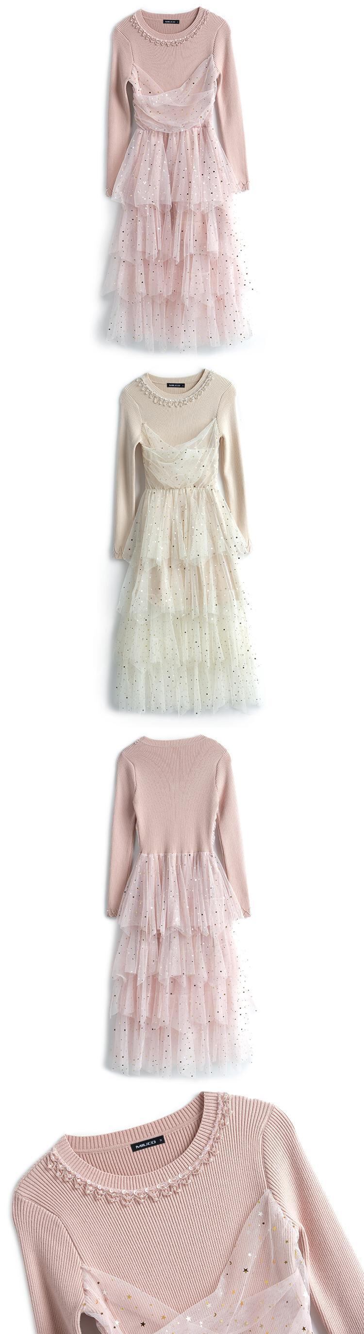 ニットスカート ドレス オータム ピンク 秋物 ステッチ MIUCO49533518201