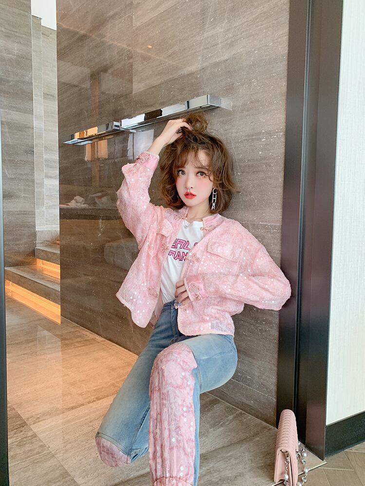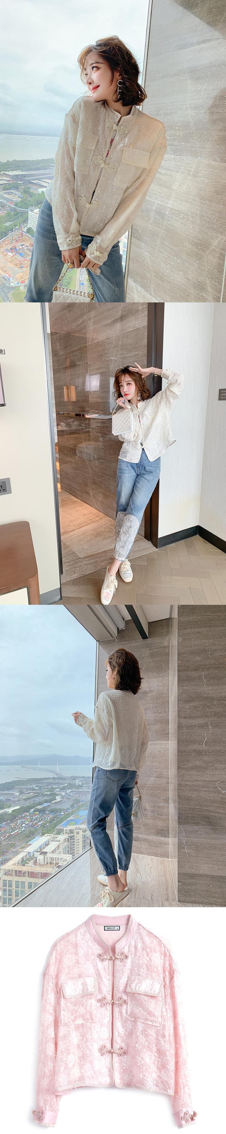 スタイルカラースタンダードバックルスパンコールジャカードルーズジャケット オータム レトロ 秋物 MIUCO4117677227