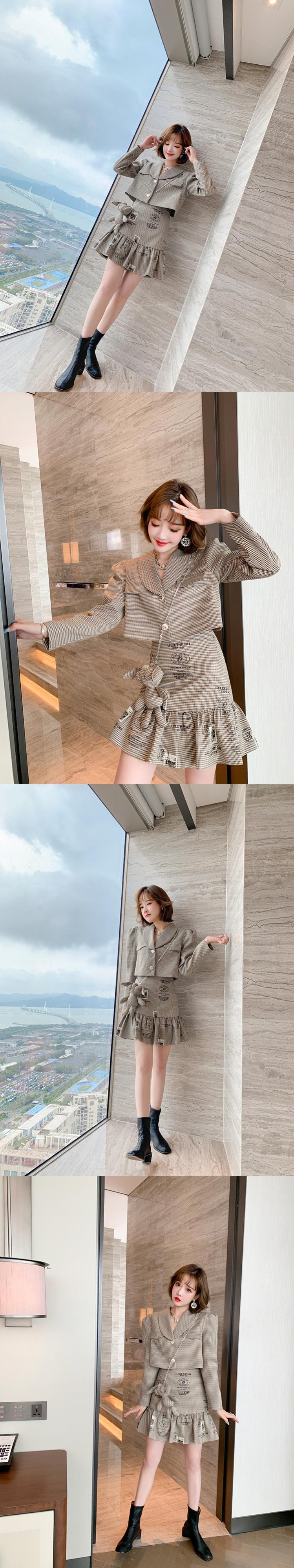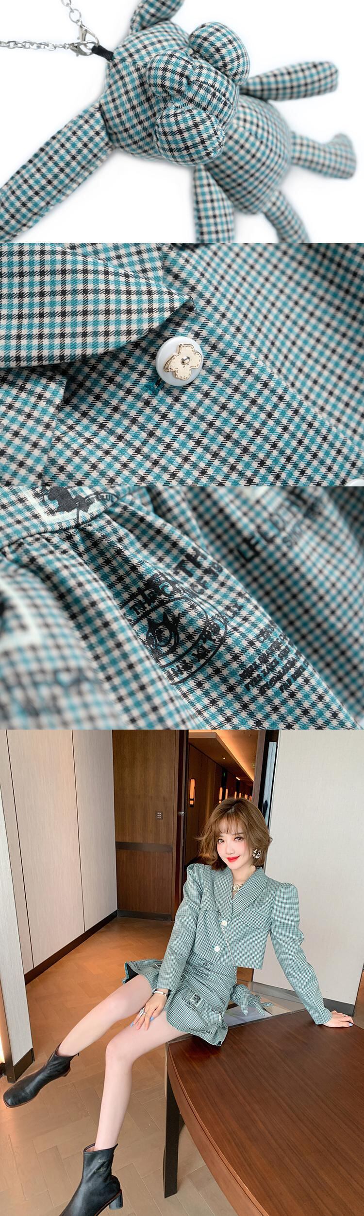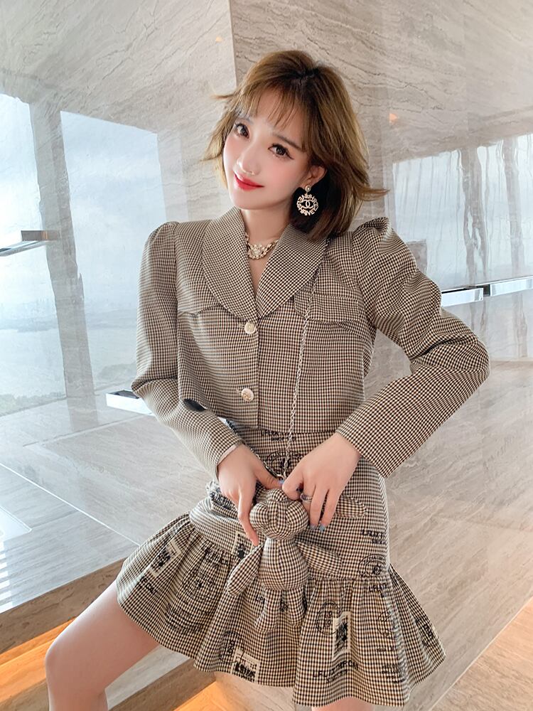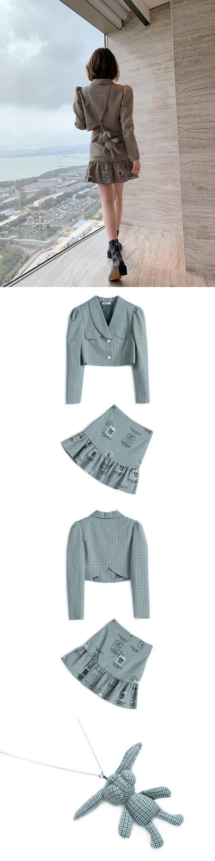 チェーン 格子柄ショートジャケット スカート セット MIUCO47320777866