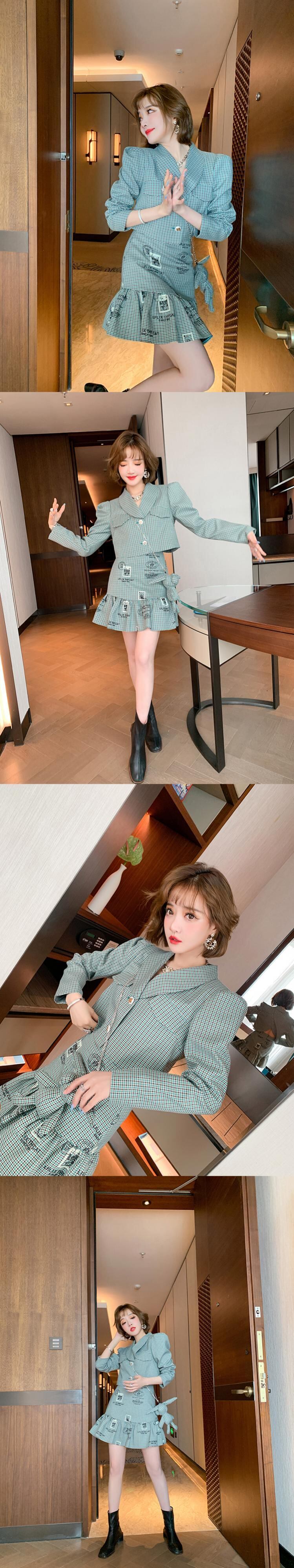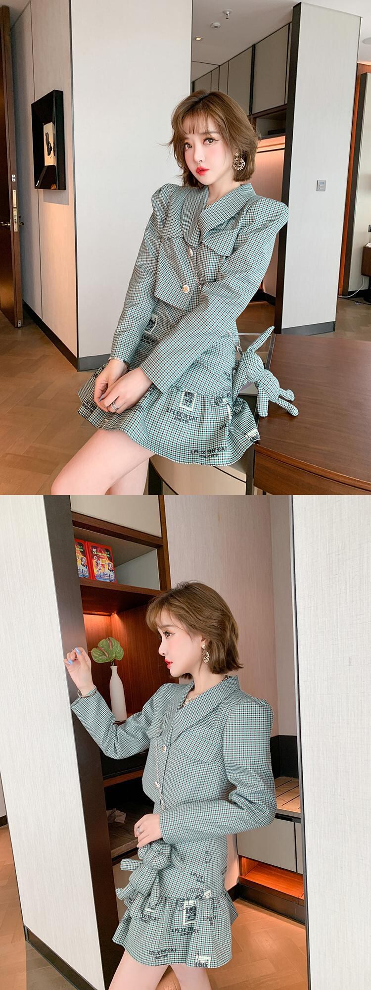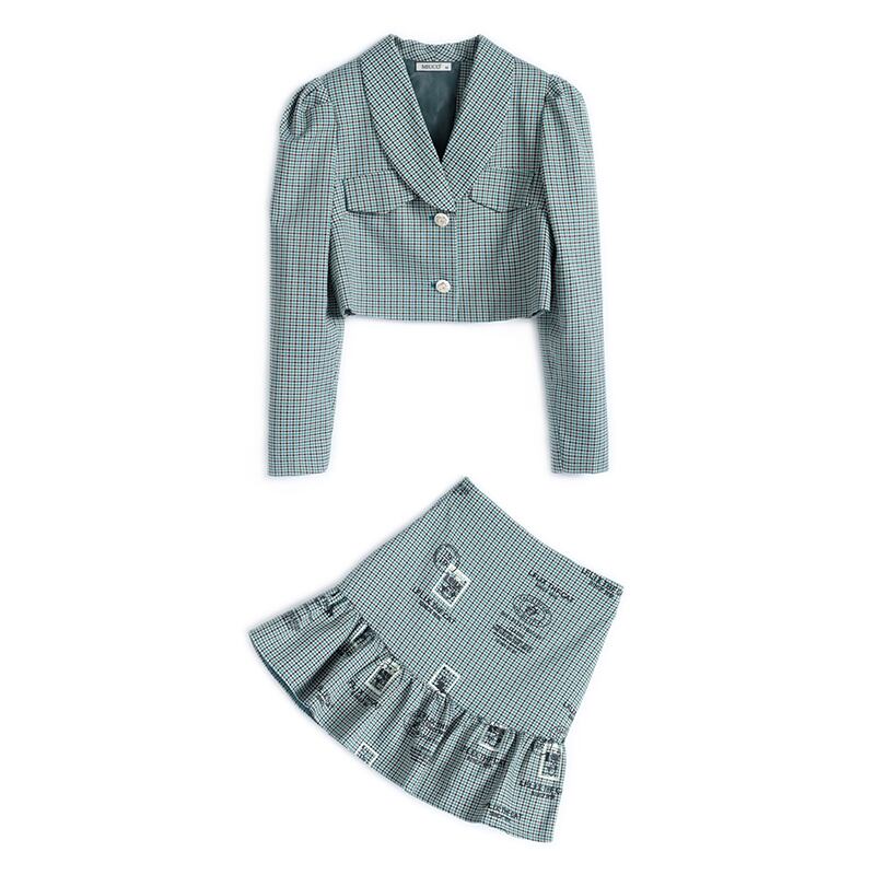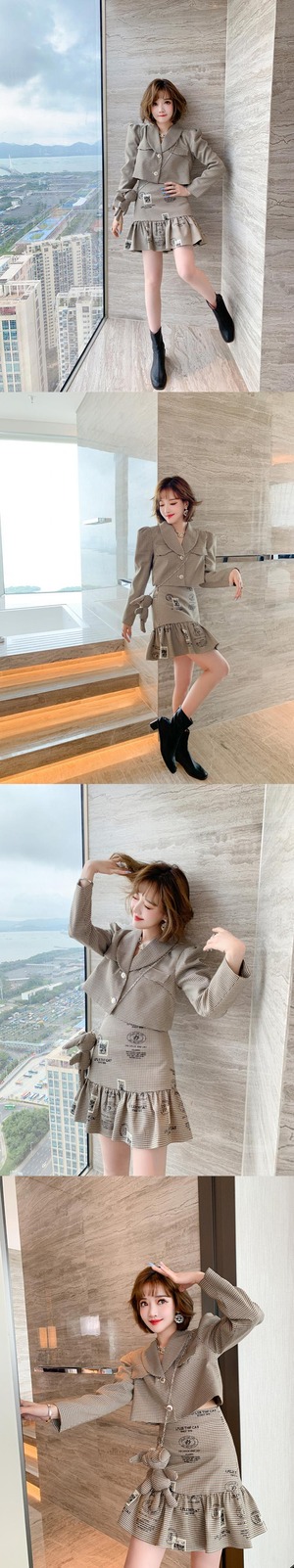 チェーン 格子柄ショートジャケット スカート セット MIUCO47320777866