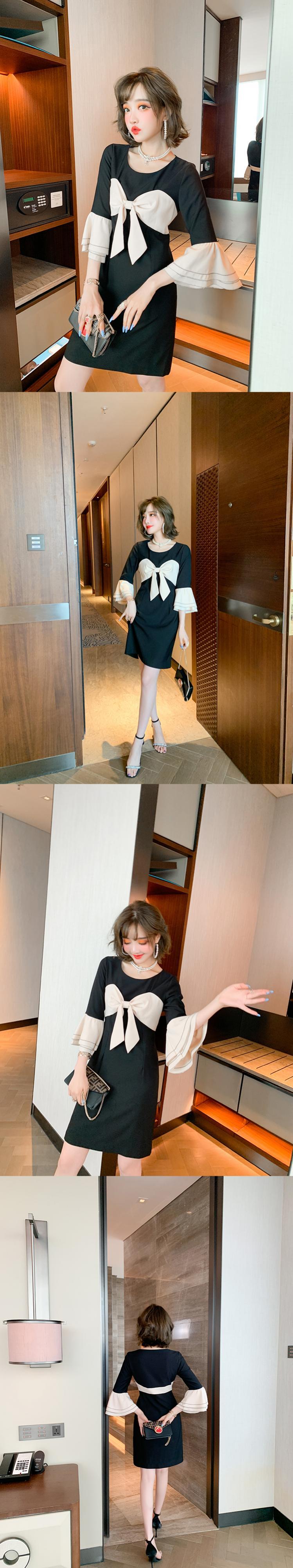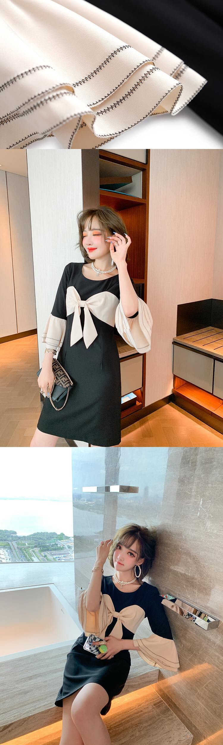 スタイルカラーリボンスリーブドレス オータム 秋物 MIUCO24435061783
