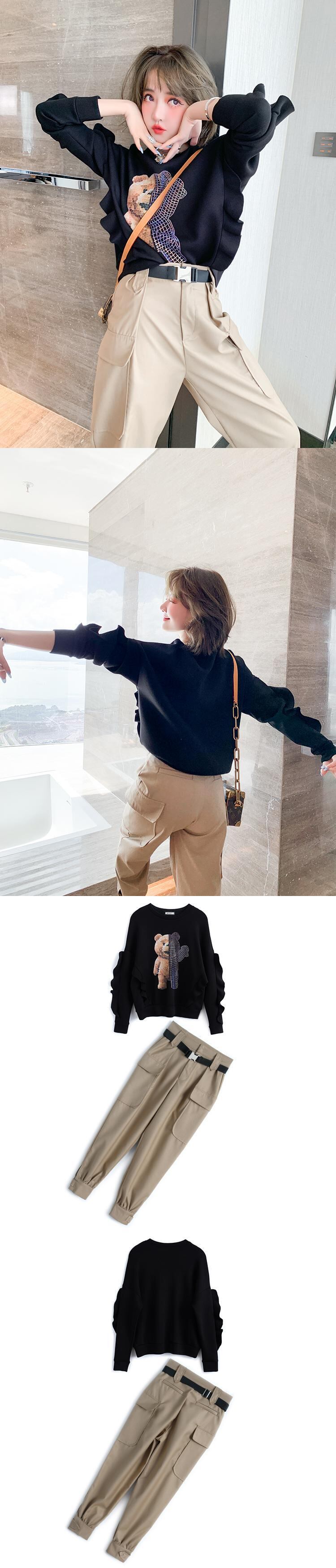 ラインストーンセーター ポケットオーバーオール ステッチ MIUCO65532233505