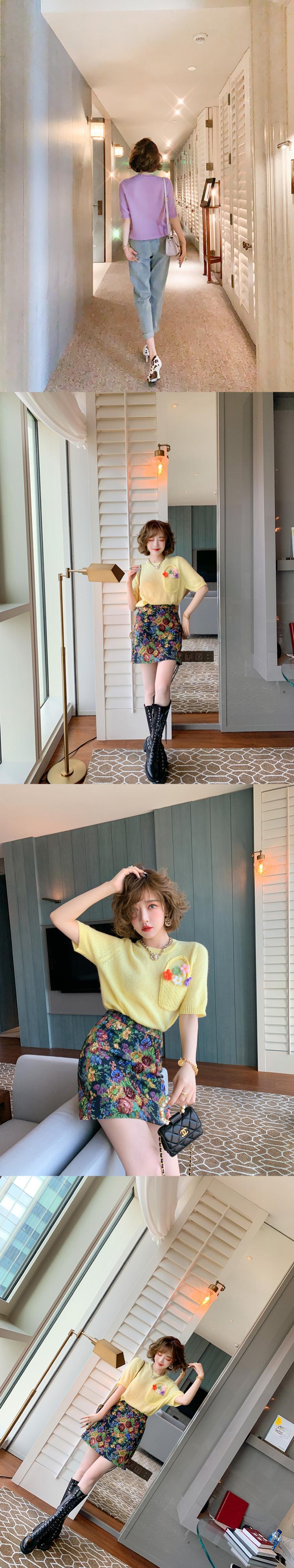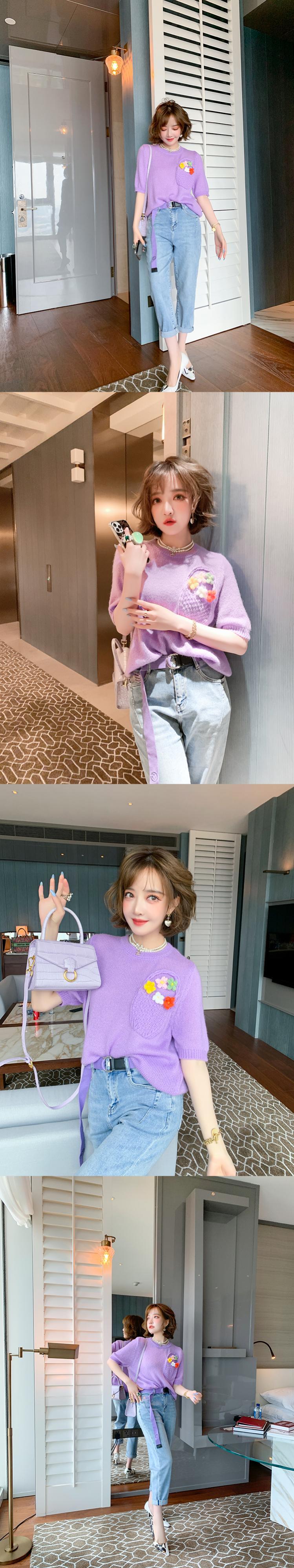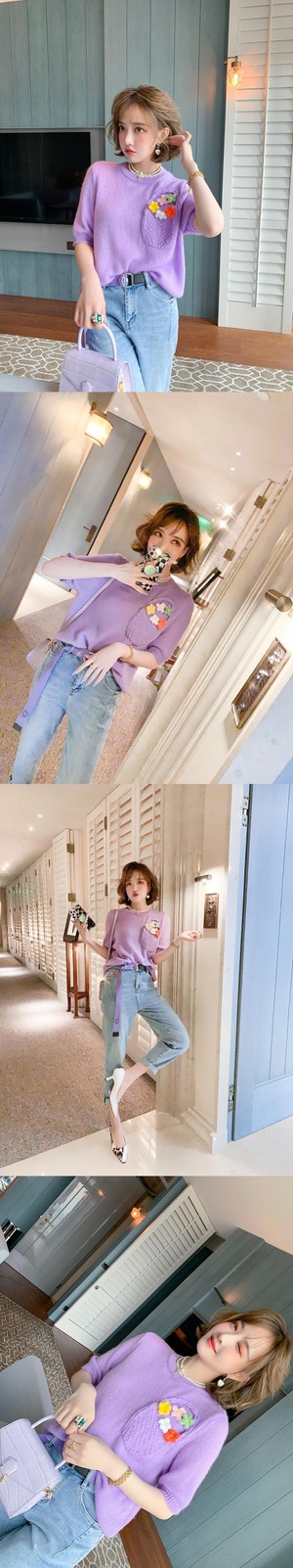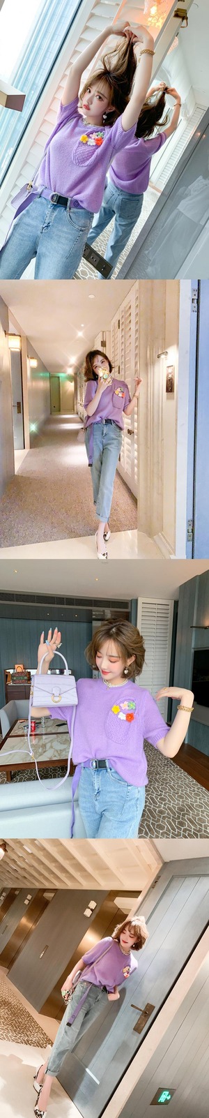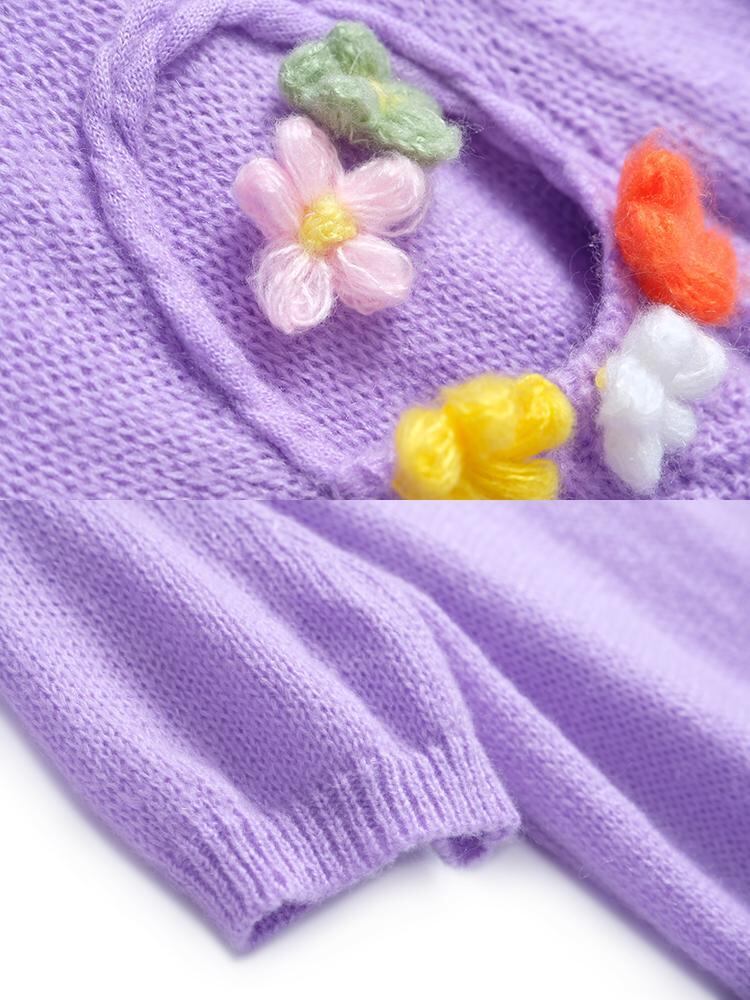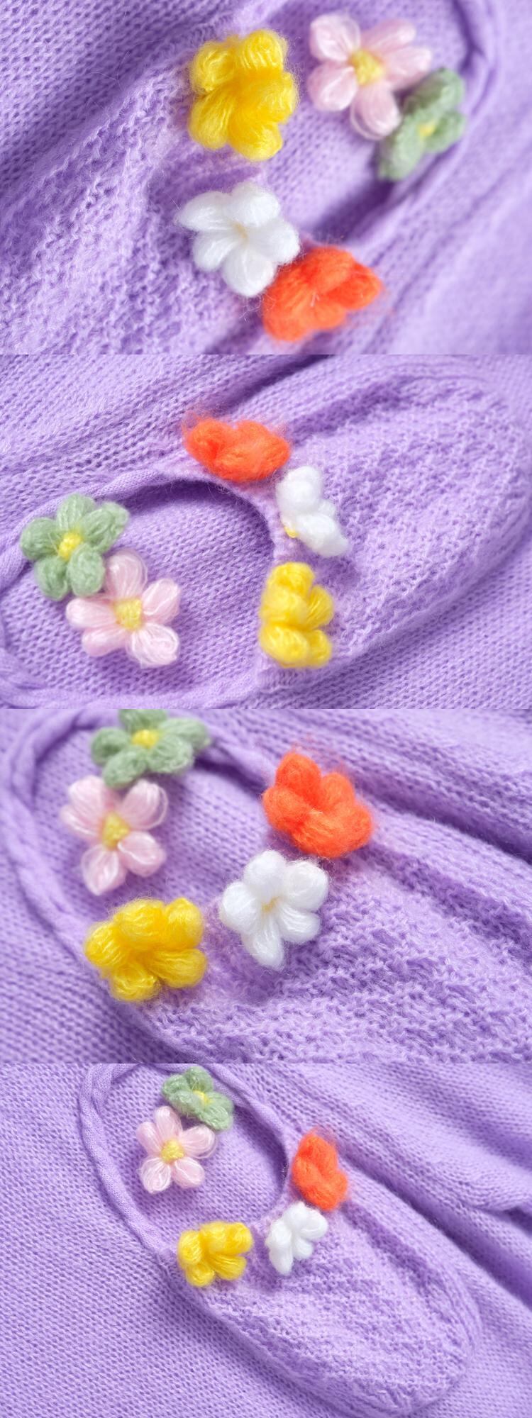 Flowerデザイン ラウンドネックプルオーバー ニットTシャツ オータムスタイル 大人ガーリー スウィート キュート カジュアル 秋物 Oネック フラワーデザイン MIUCO70388739418