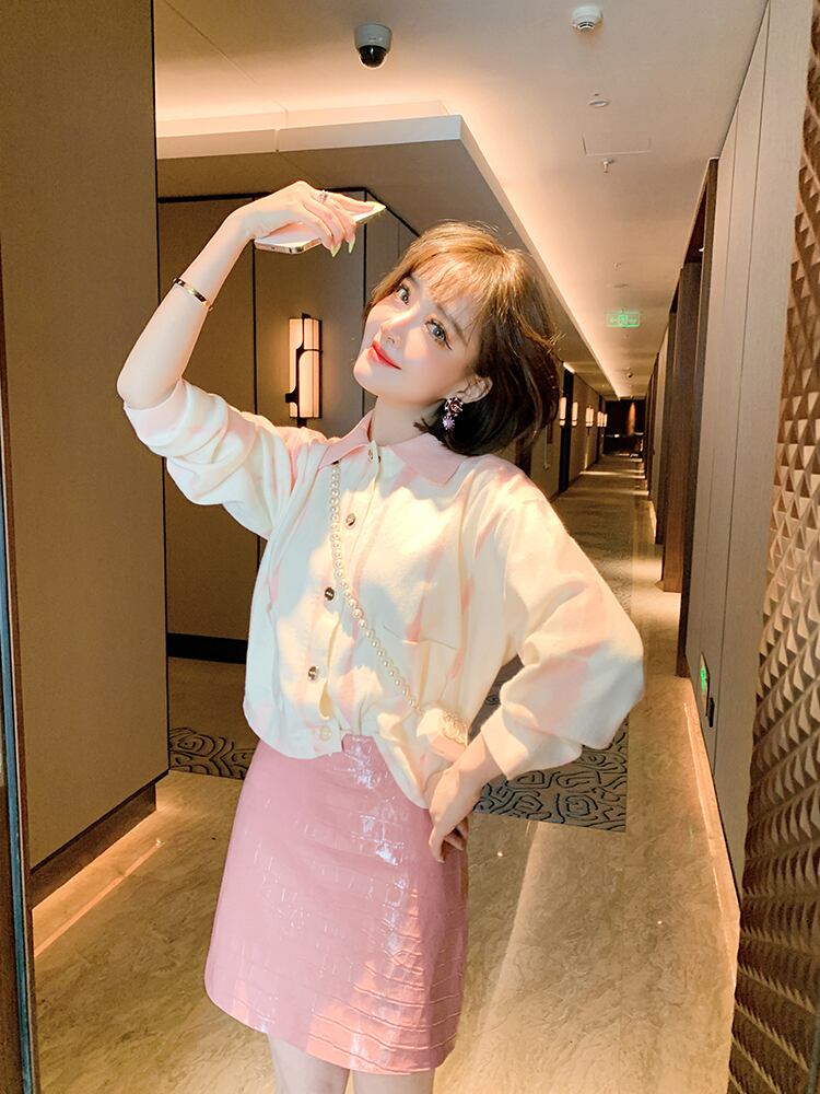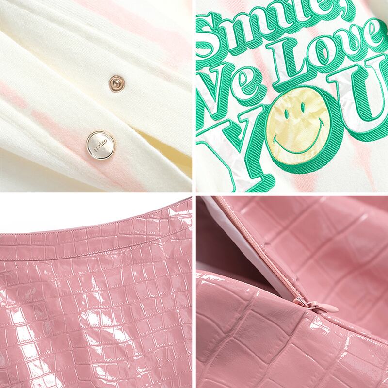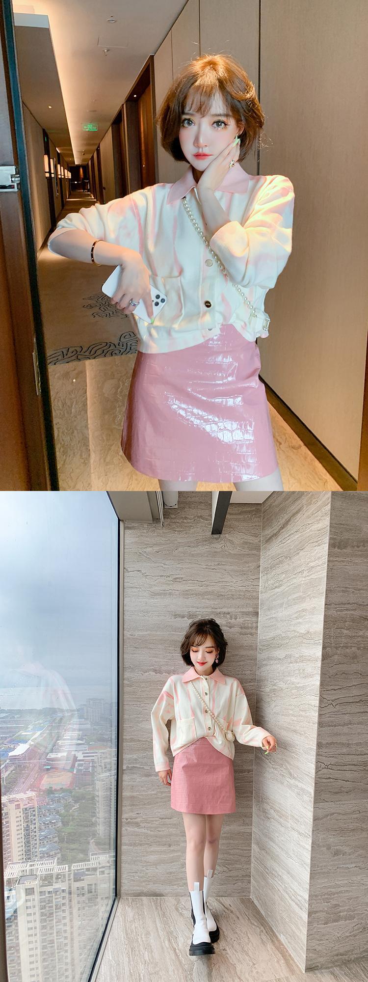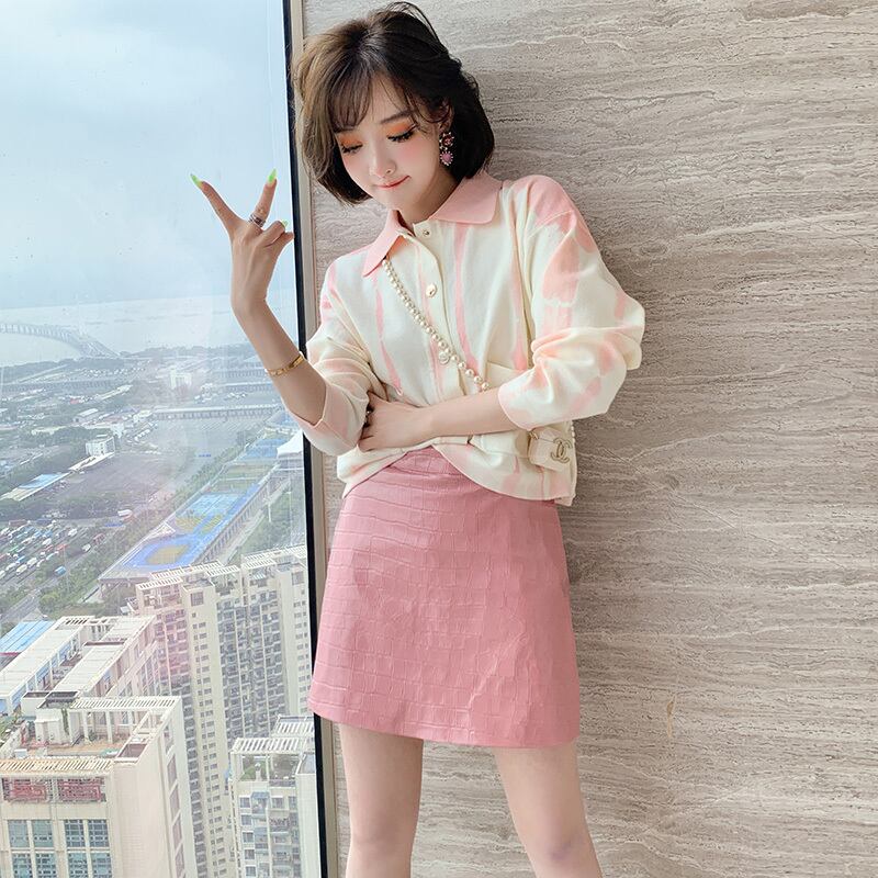ニットカーディガンウェストレザースカート レッド 刺繍 MIUCO10021334388