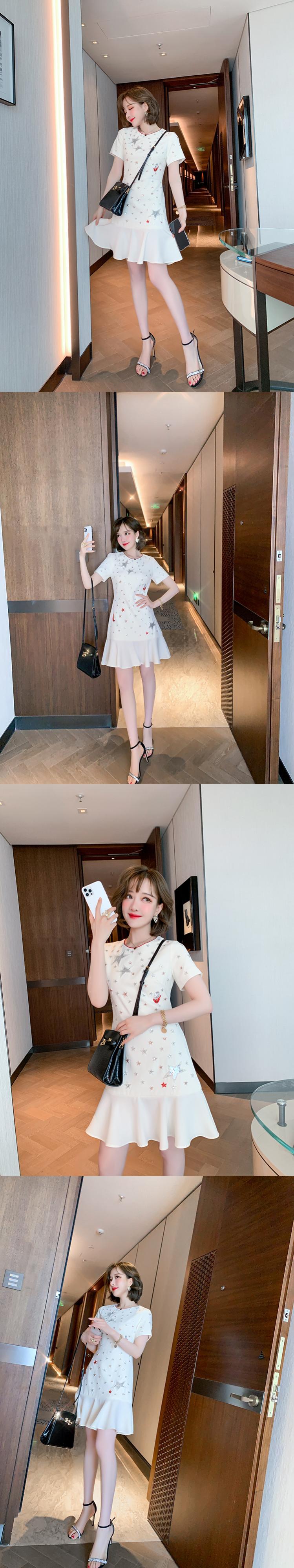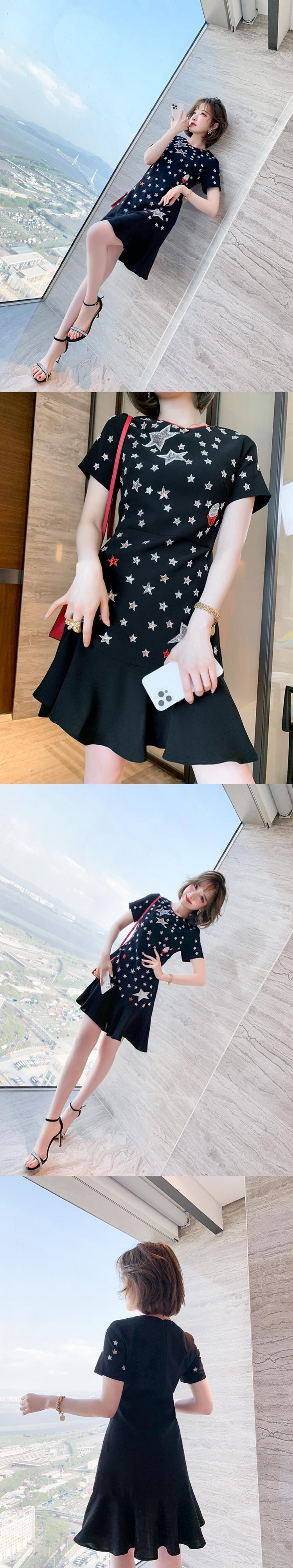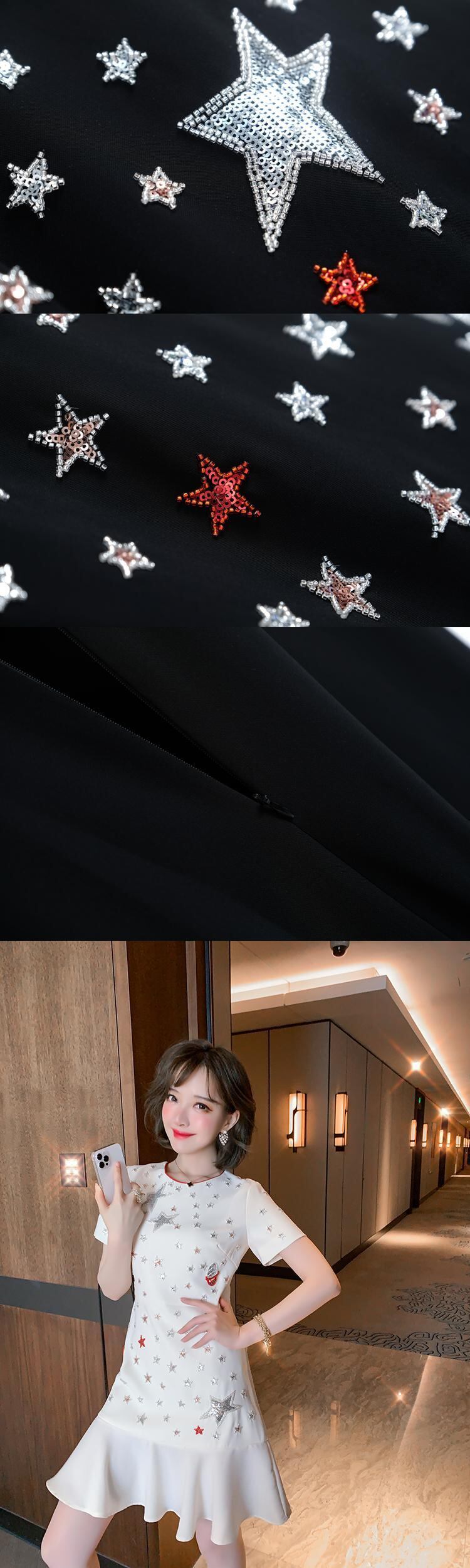 カラーラウンドネックウェストドレス スプリングサマー 春物 夏物 Oネック ステッチ MIUCO35726219684