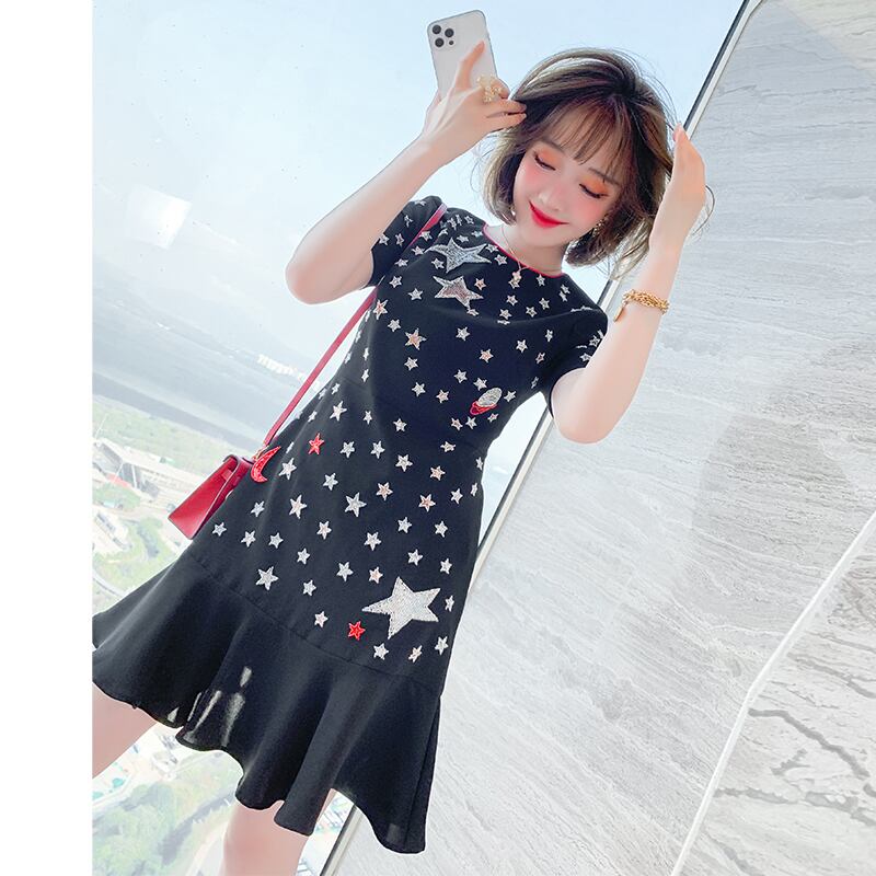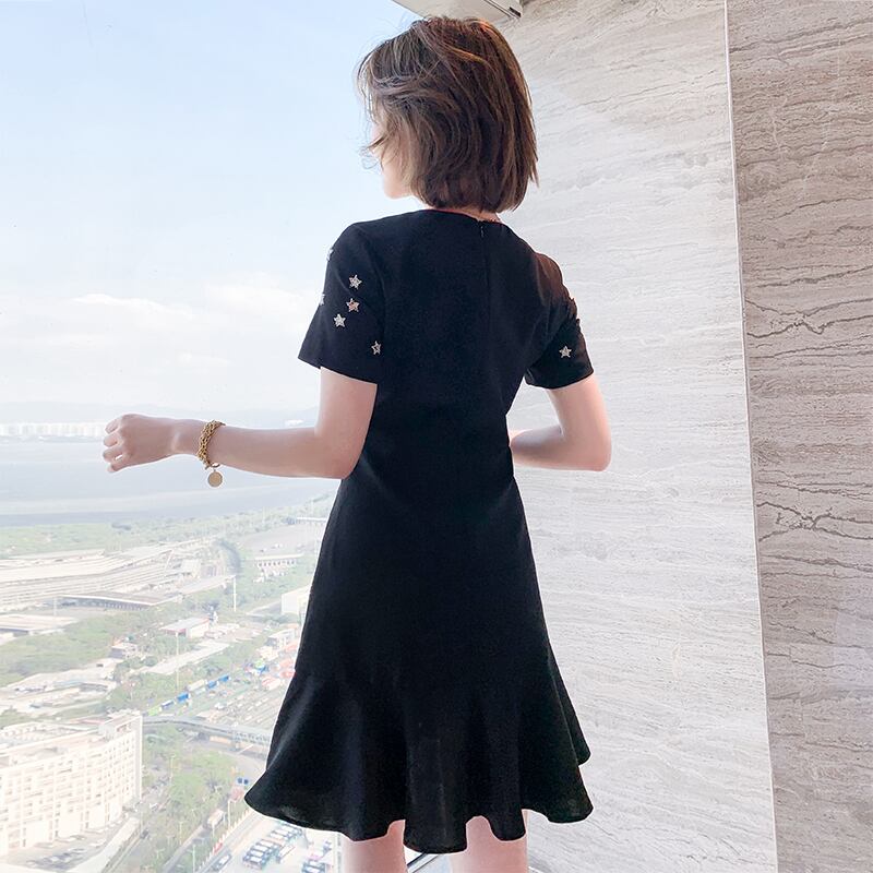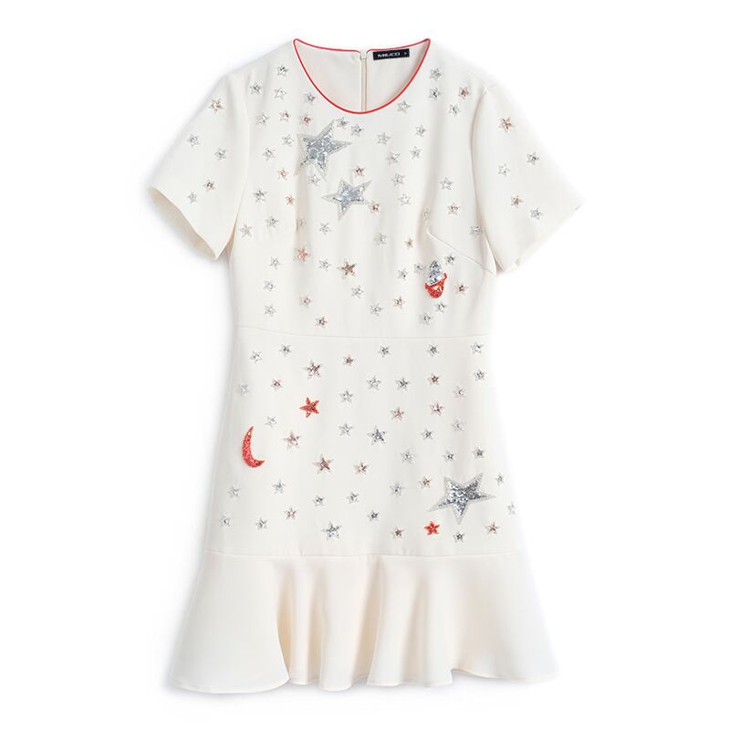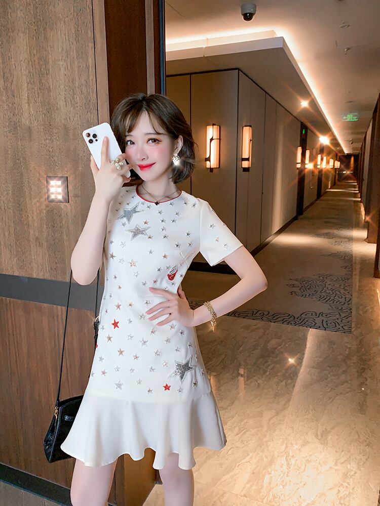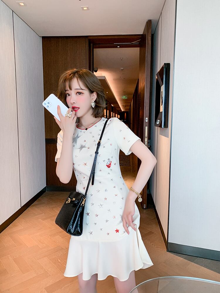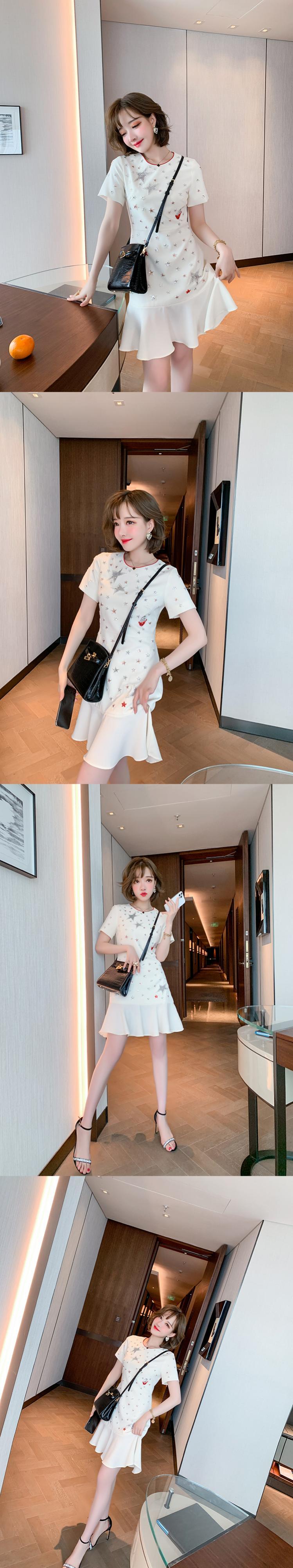 カラーラウンドネックウェストドレス スプリングサマー 春物 夏物 Oネック ステッチ MIUCO35726219684