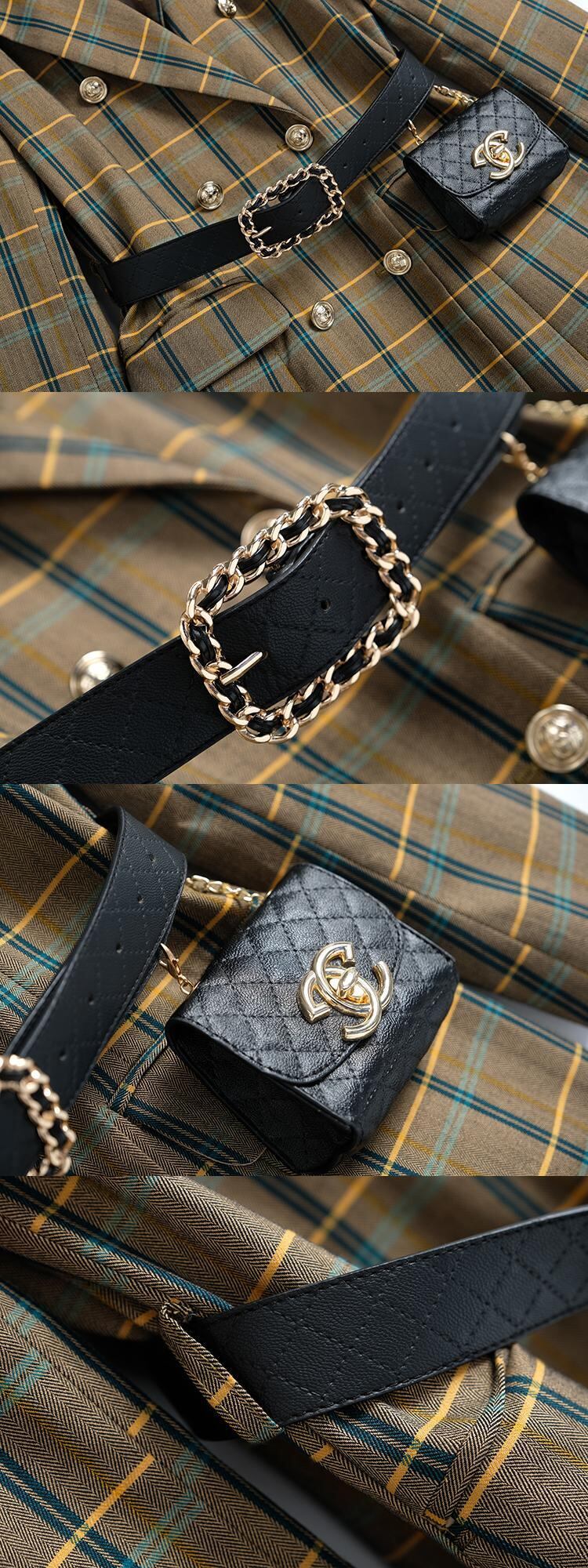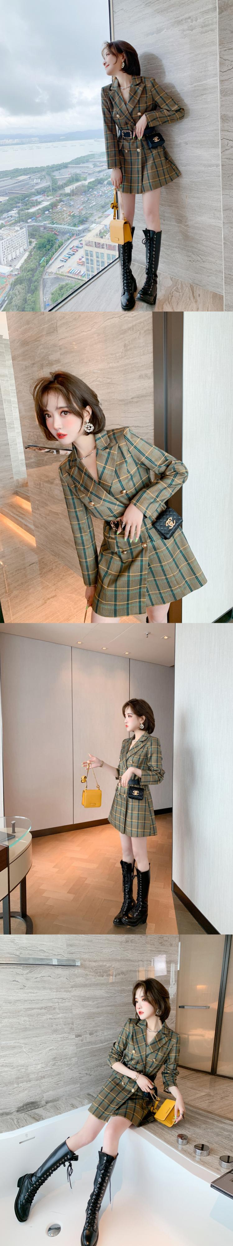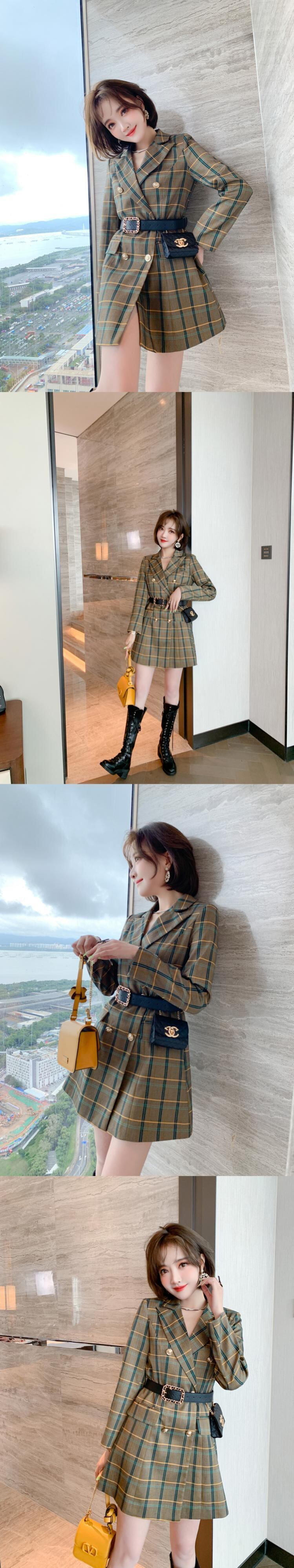 スタンダード格子柄ダブルブレストベルト ウェストブレザー ドレス オータム レトロ 秋物 ハーネス MIUCO24358550210