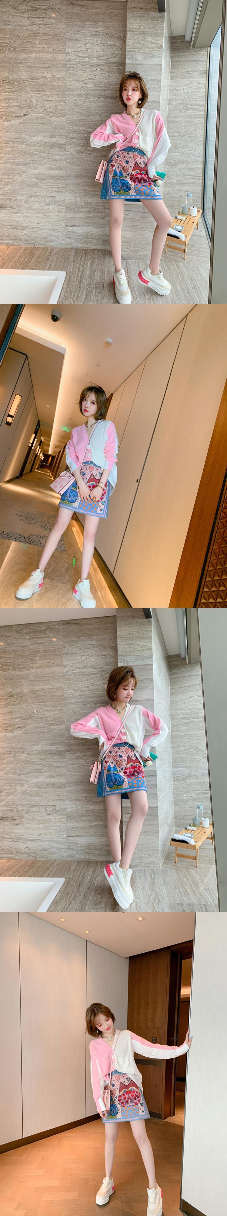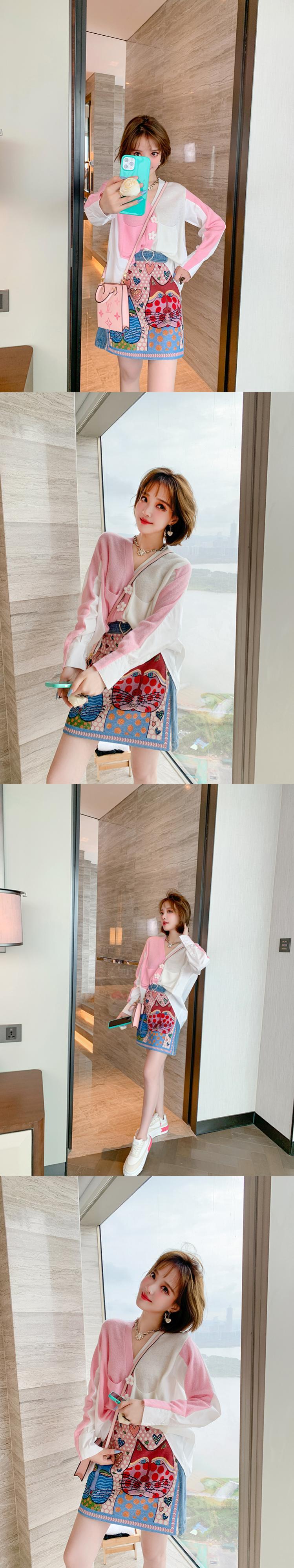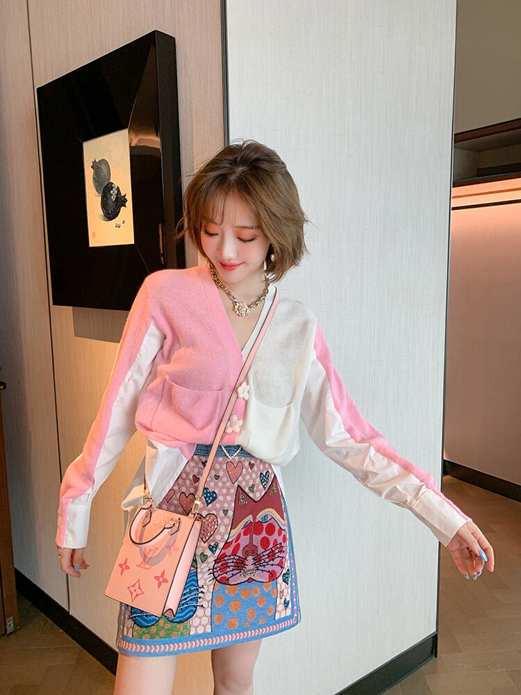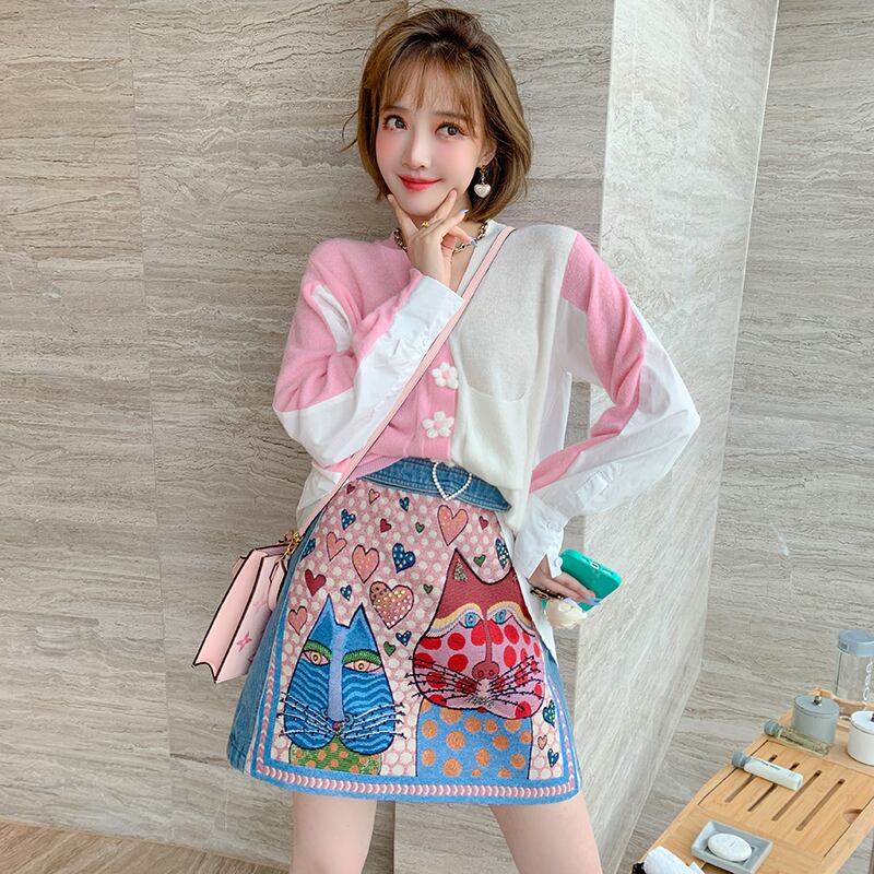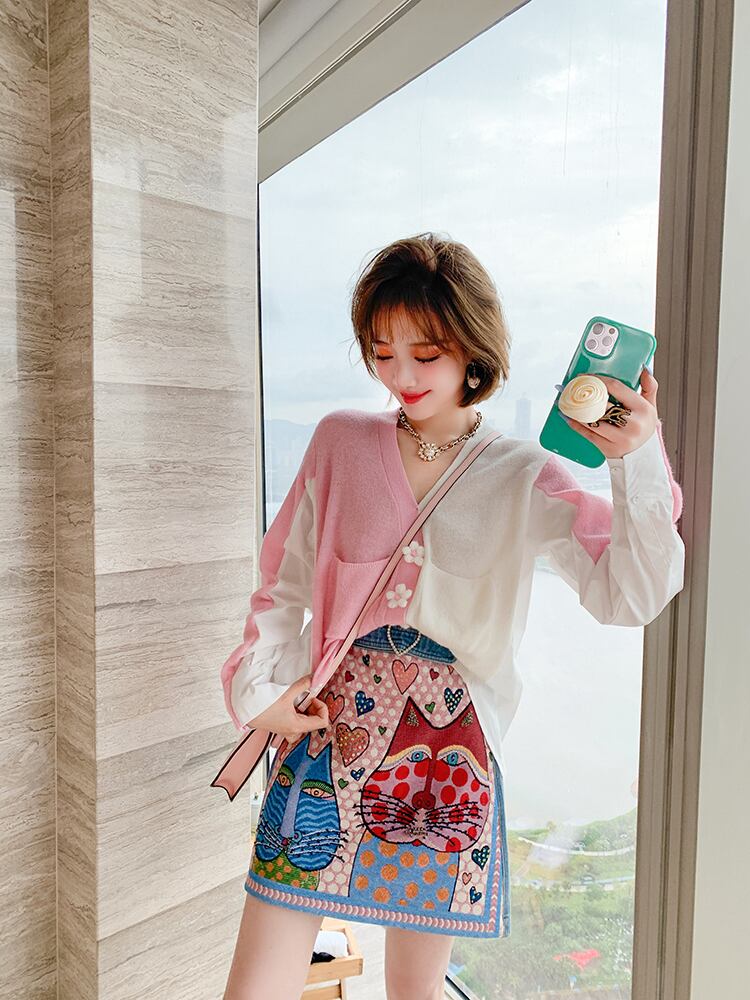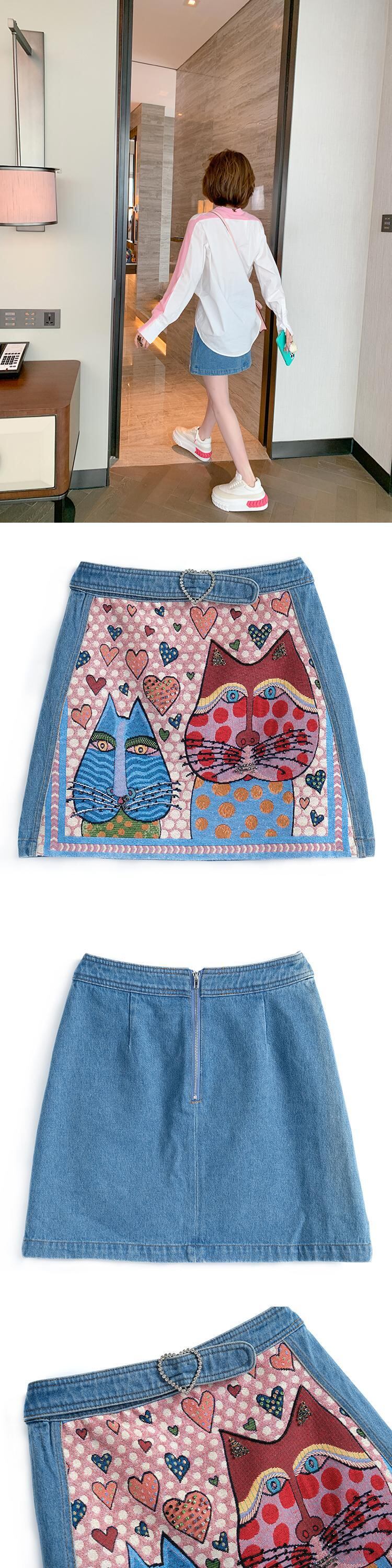 スタンダードスタイル刺繍ジャカードカラーAラインスカート オータム レトロ 秋物 MIUCO24478674927