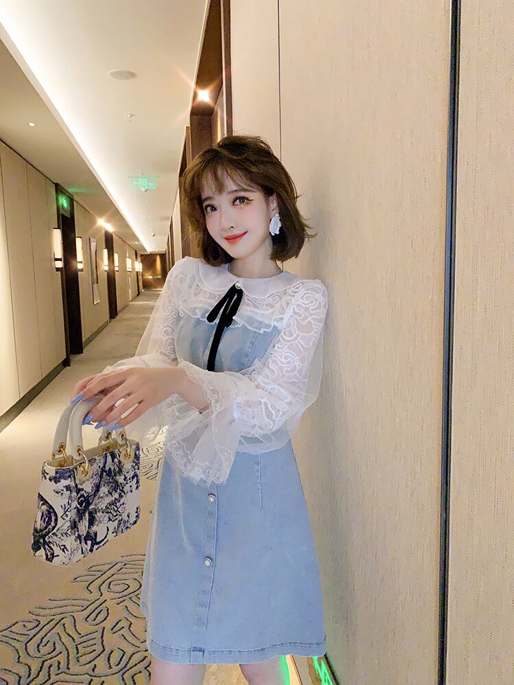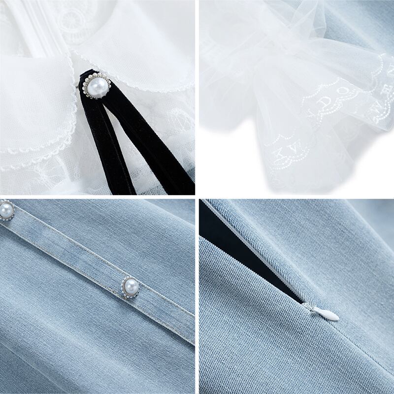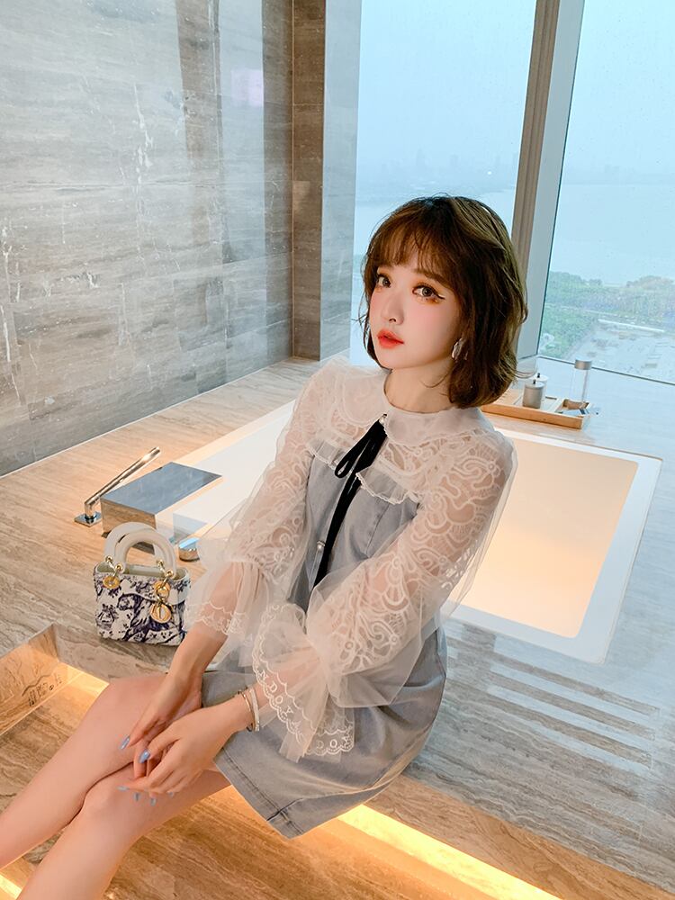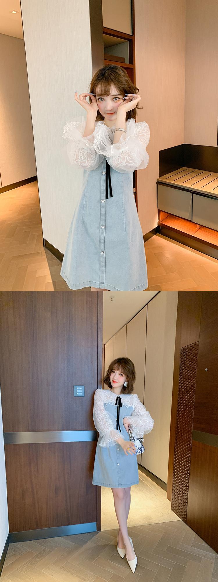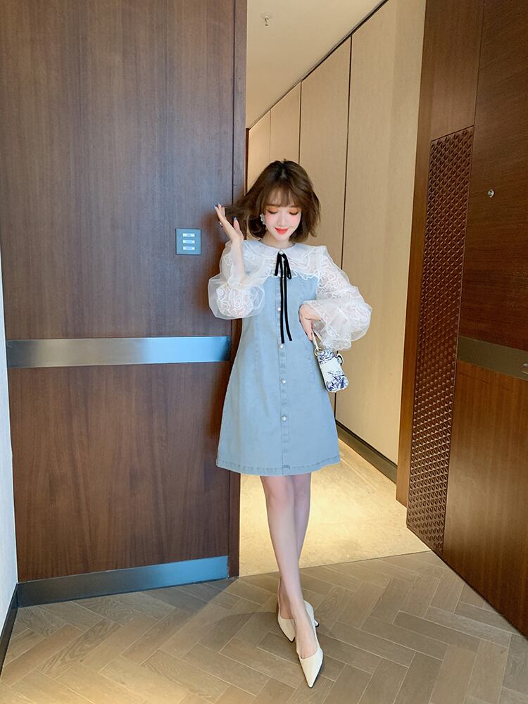 カラーレースメッシュスリーブAラインドレス オータム 大人ガーリー スウィート キュート カジュアル 秋物 ステッチ MIUCO4266655135