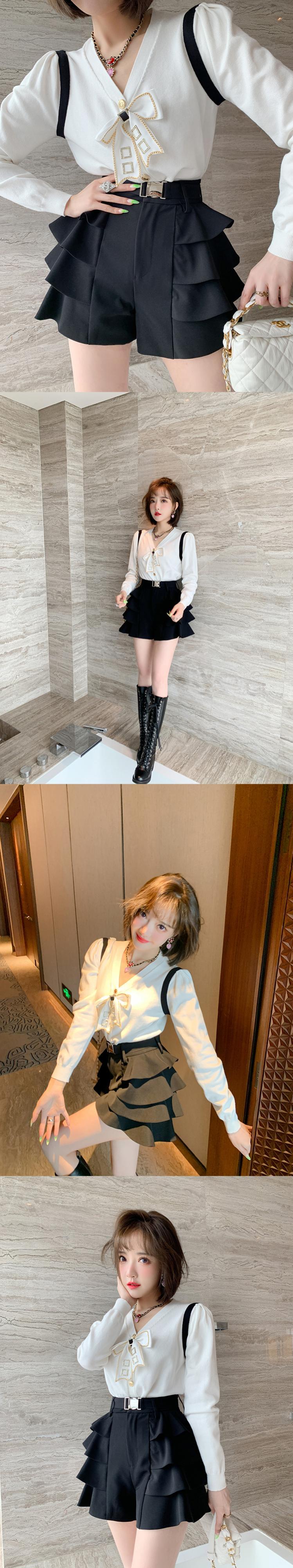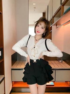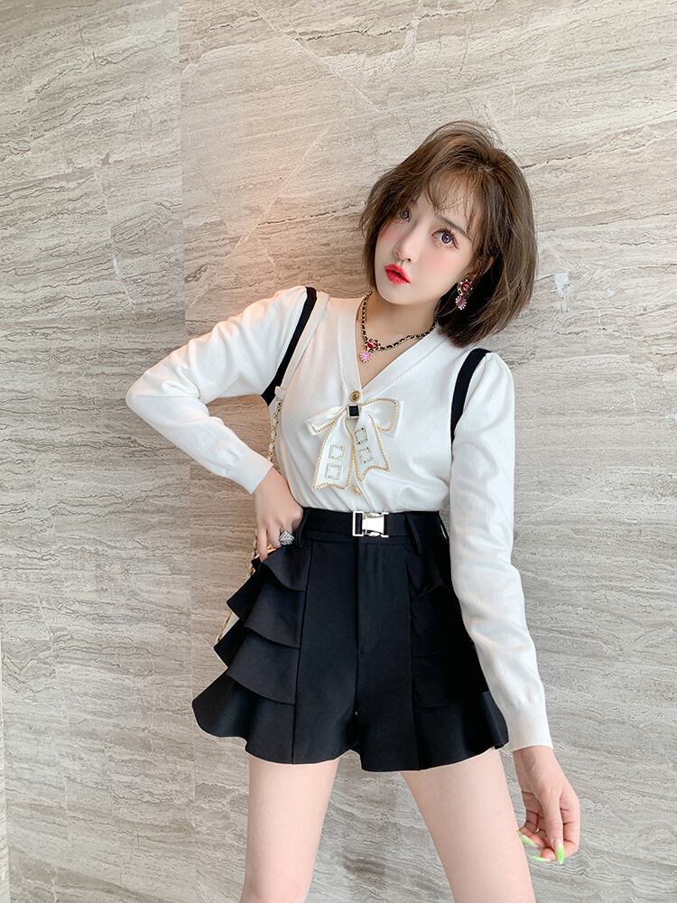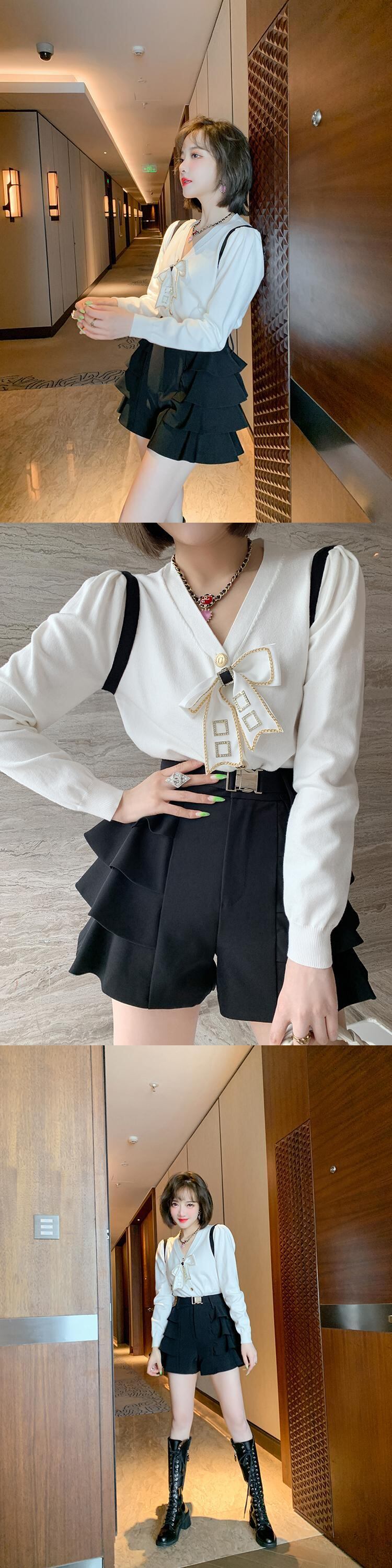 Vネックニットカーディガンハイウェストウェストショーツ オータム リボン 秋物 ブルマー MIUCO24808271771