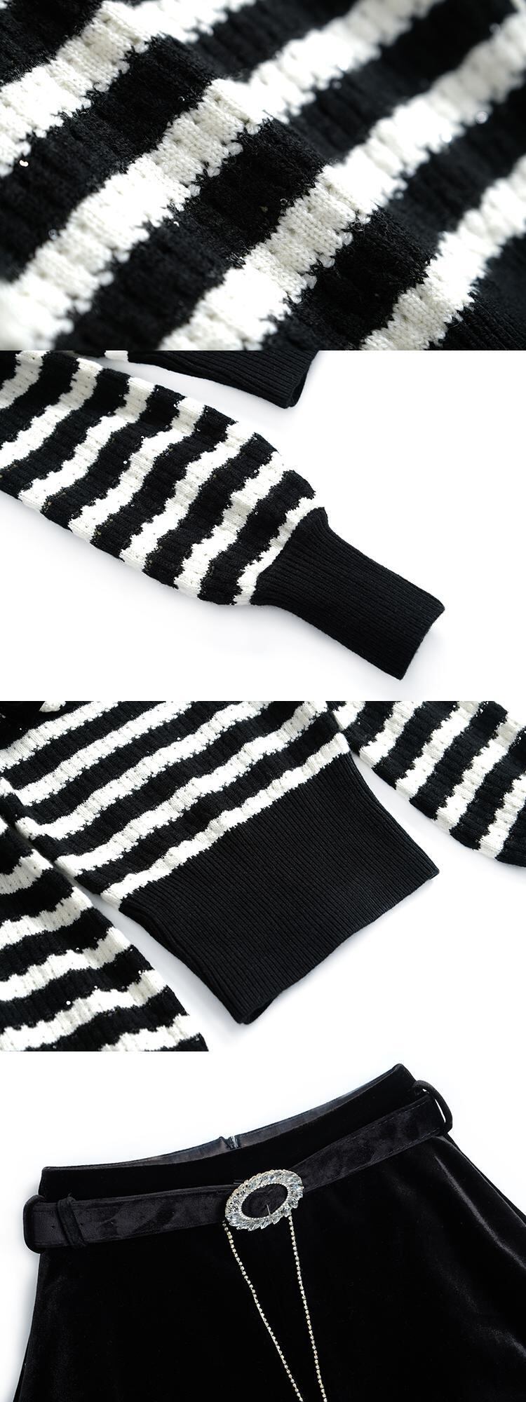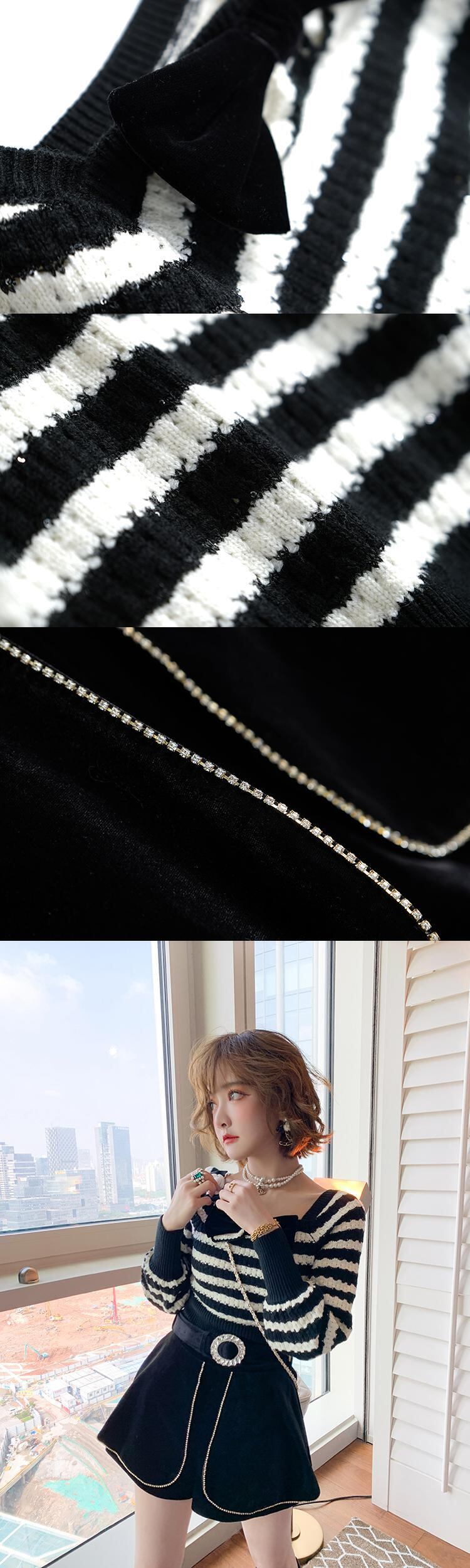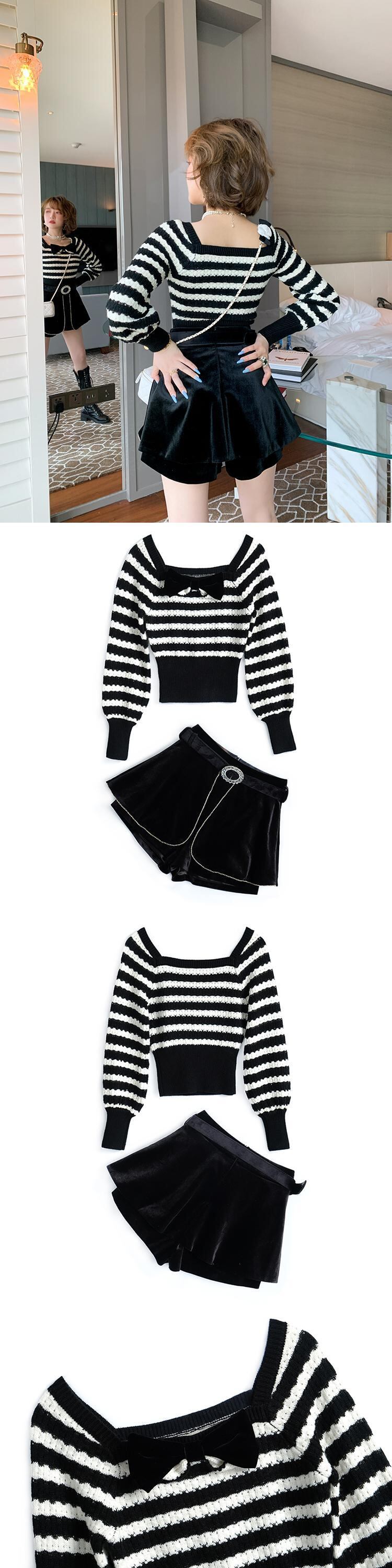 リボンストライプセーター ハイウェストウェストベルベットショーツ オータム 秋物 ブルマー MIUCO95913023081
