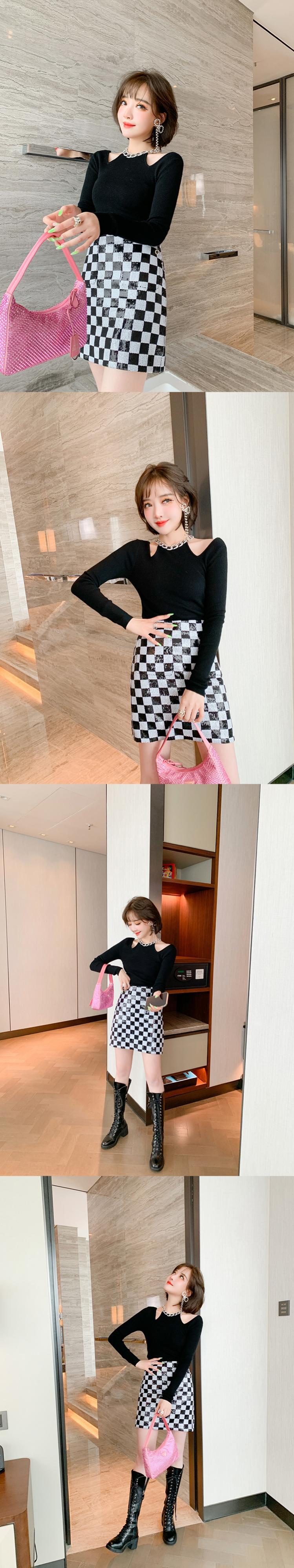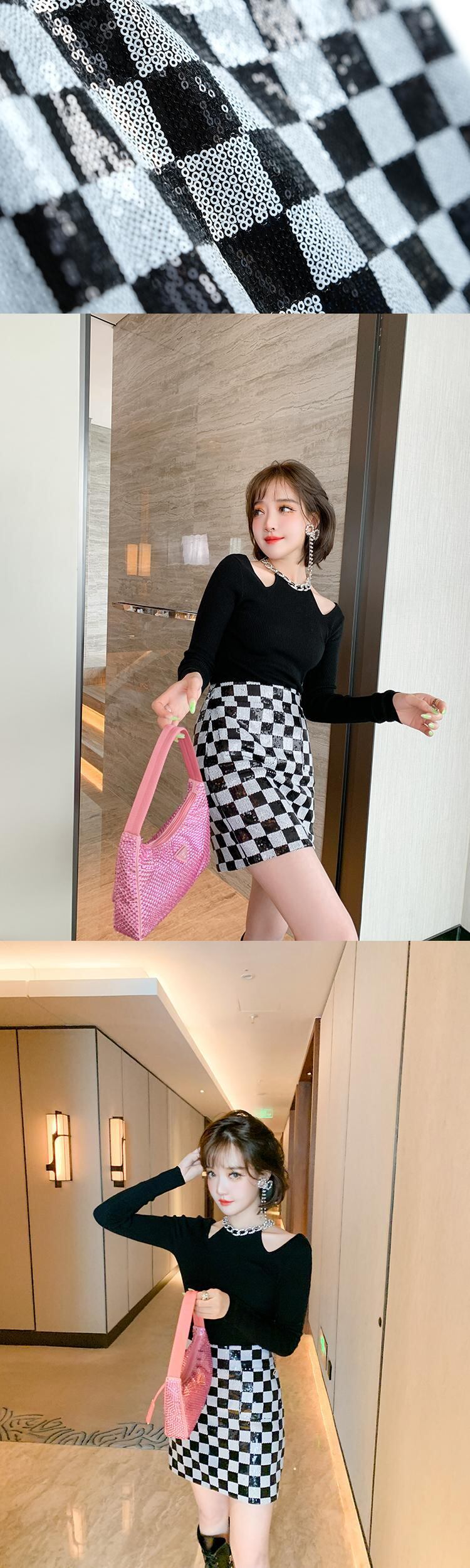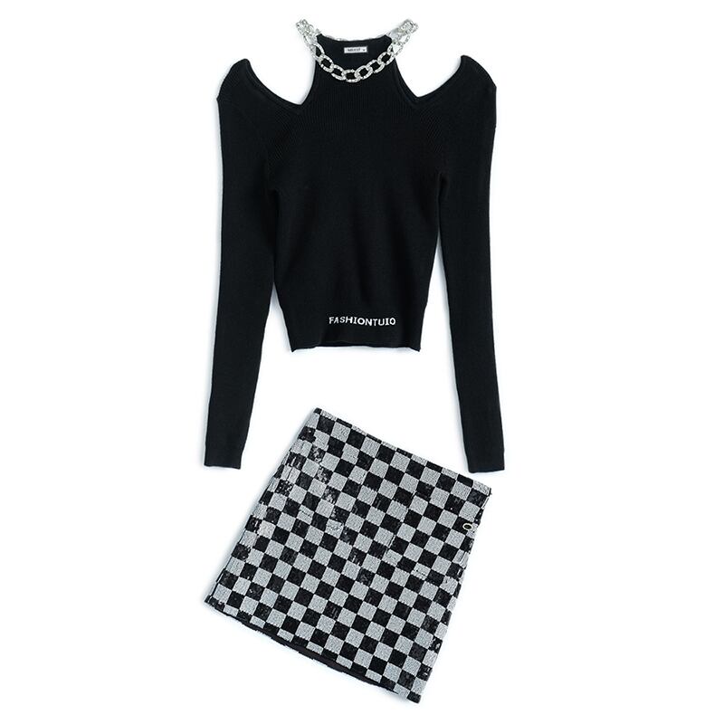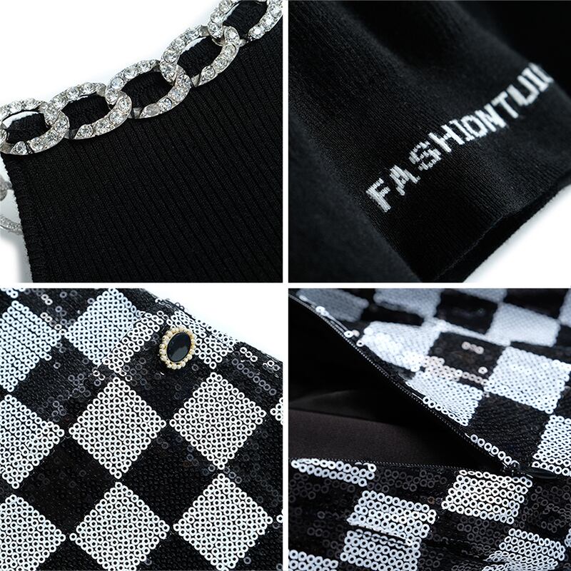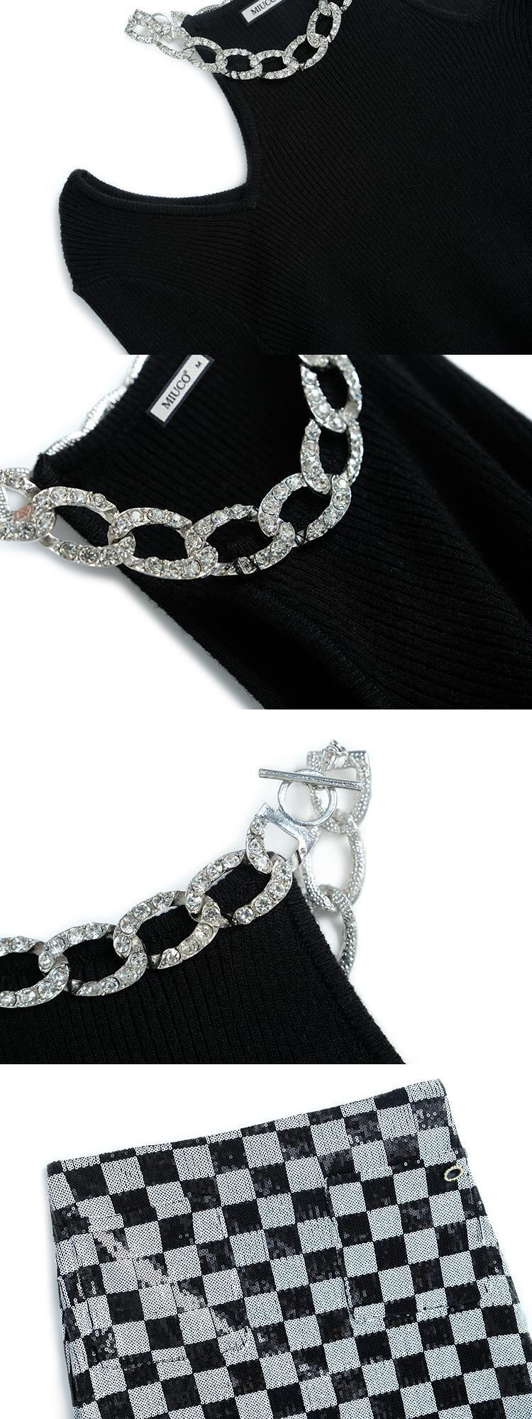ネックレス スリムトップス スパンコールウェストスカート セット レース MIUCO58575435478