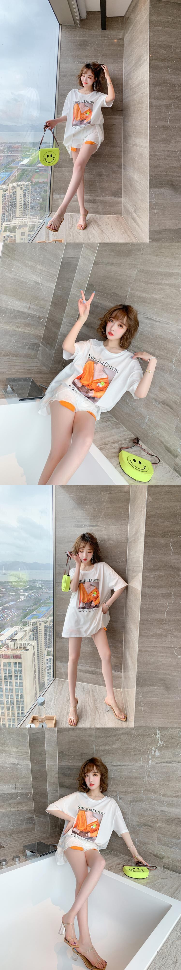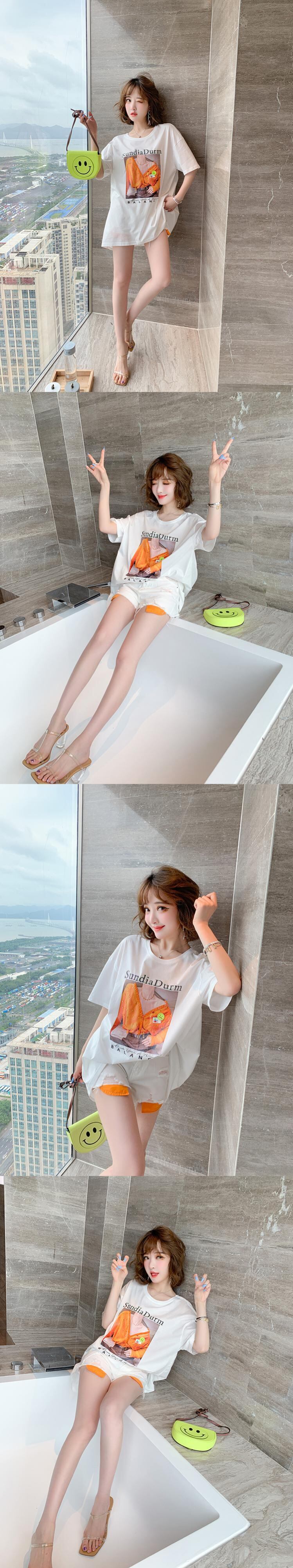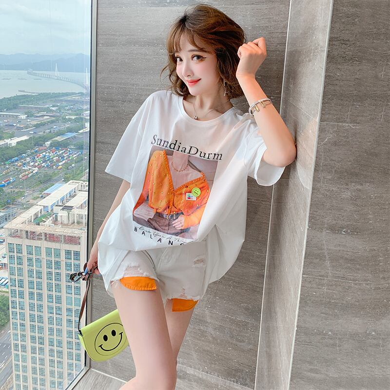 バックVネックリボンプリント柄ルーズ薄手Tシャツ オータムスタイル 秋物 MIUCO19280869116