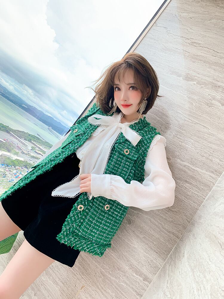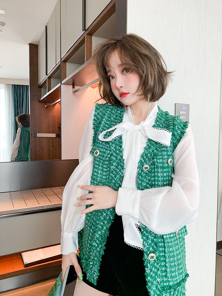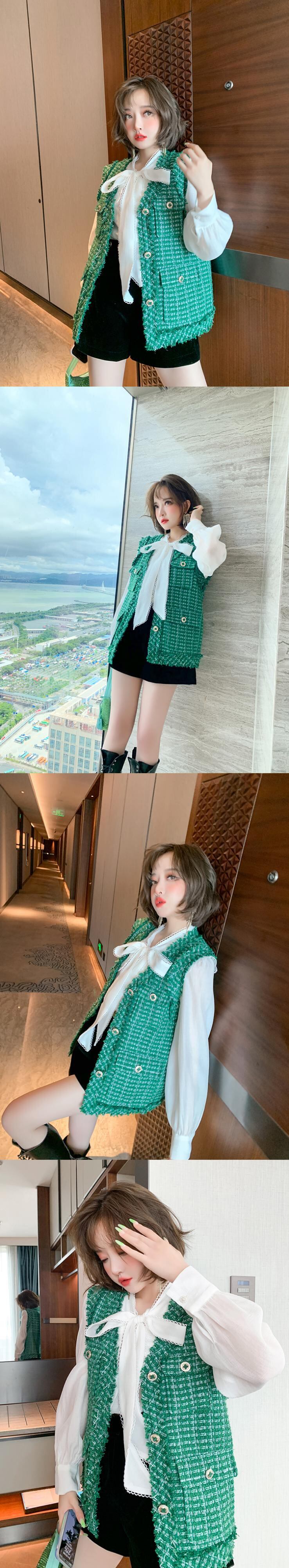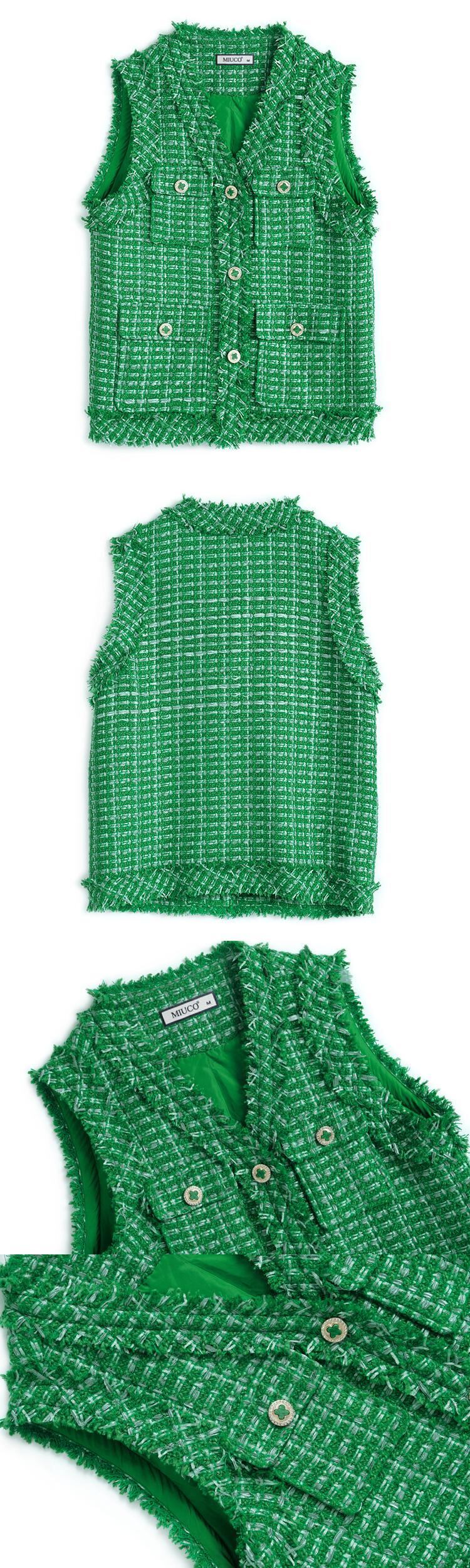 Vネックツィードポケットルーズオータム 秋物 MIUCO43087515580