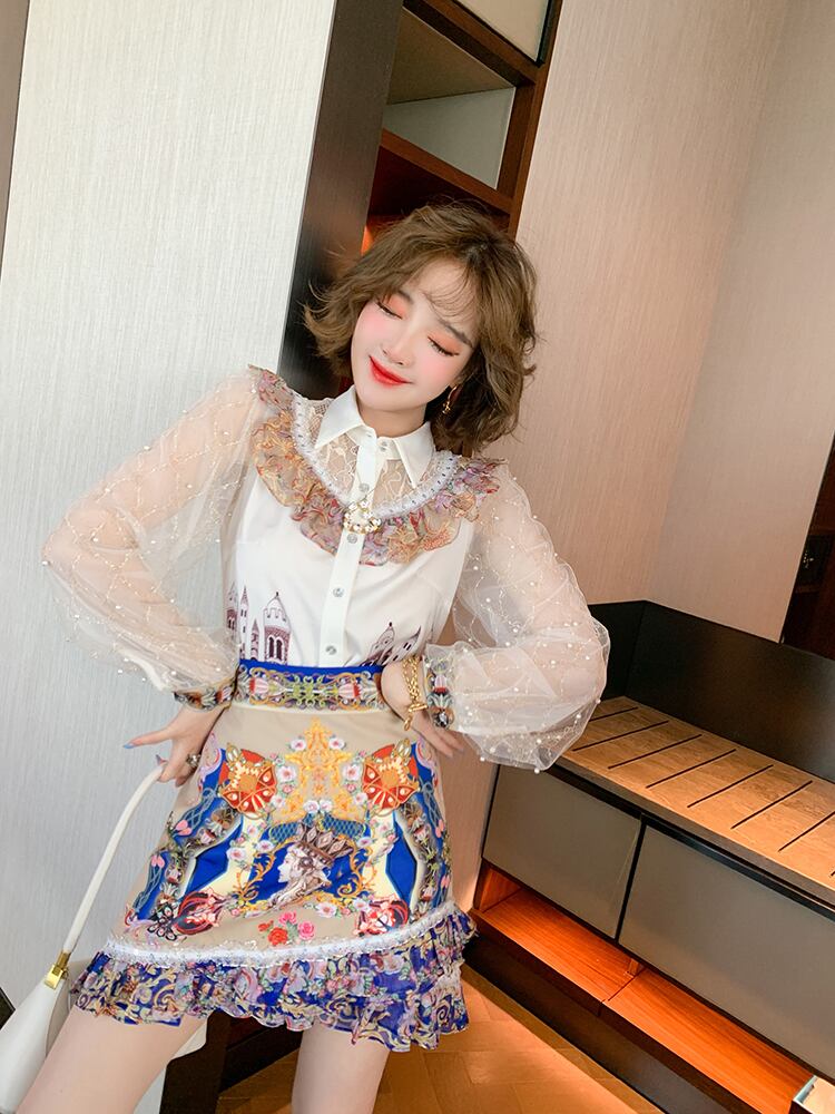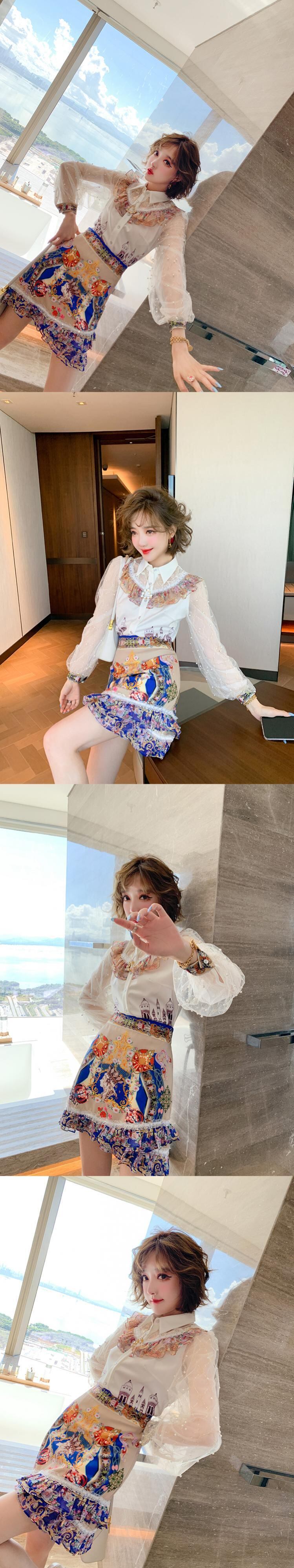 スリーブシャツ プリントスカート オータム 秋物 MIUCO55420890979