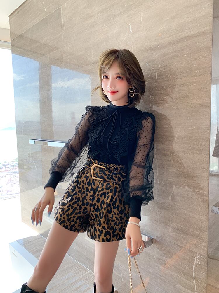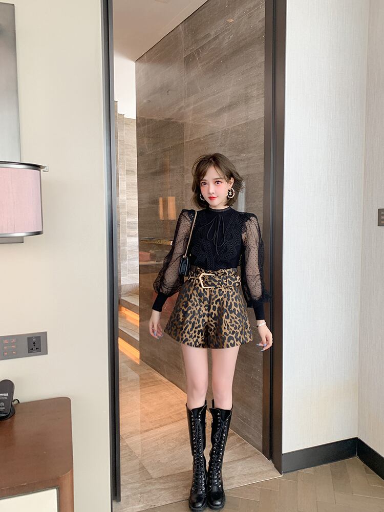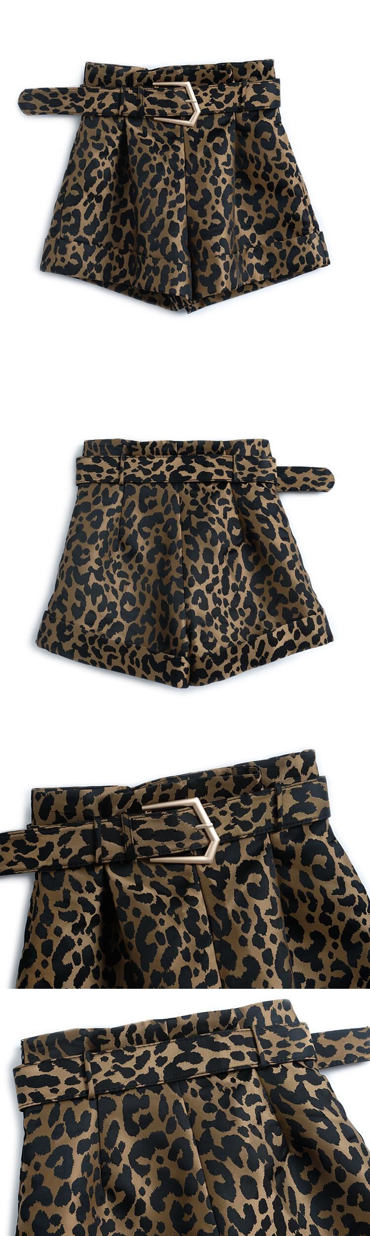 ベルト ウェストハイウェスト薄手Aラインレオパードショーツ オータム 秋物 ハーネス ブルマー MIUCO86958577196