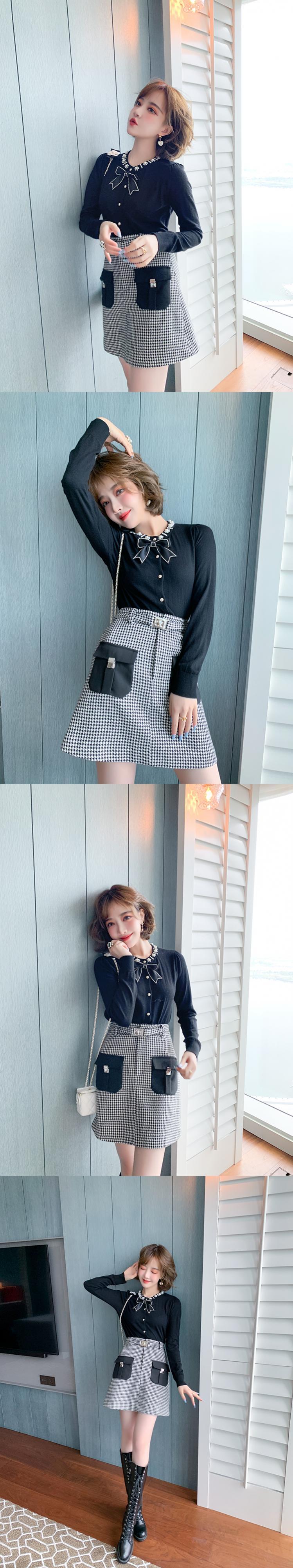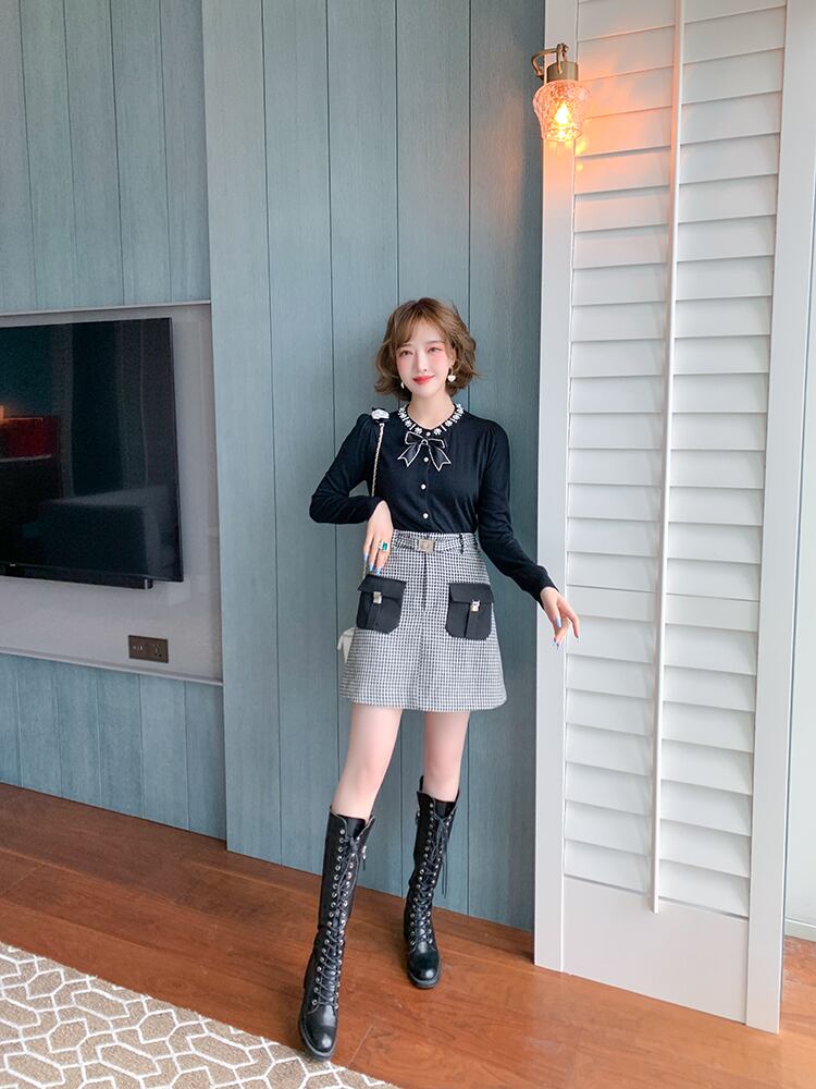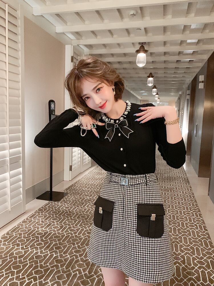 Flowerデザイン ラウンドネックブラウス スタンダードハイウェストウェストスカート オータム レトロ 秋物 Oネック フラワーデザイン MIUCO47249494929