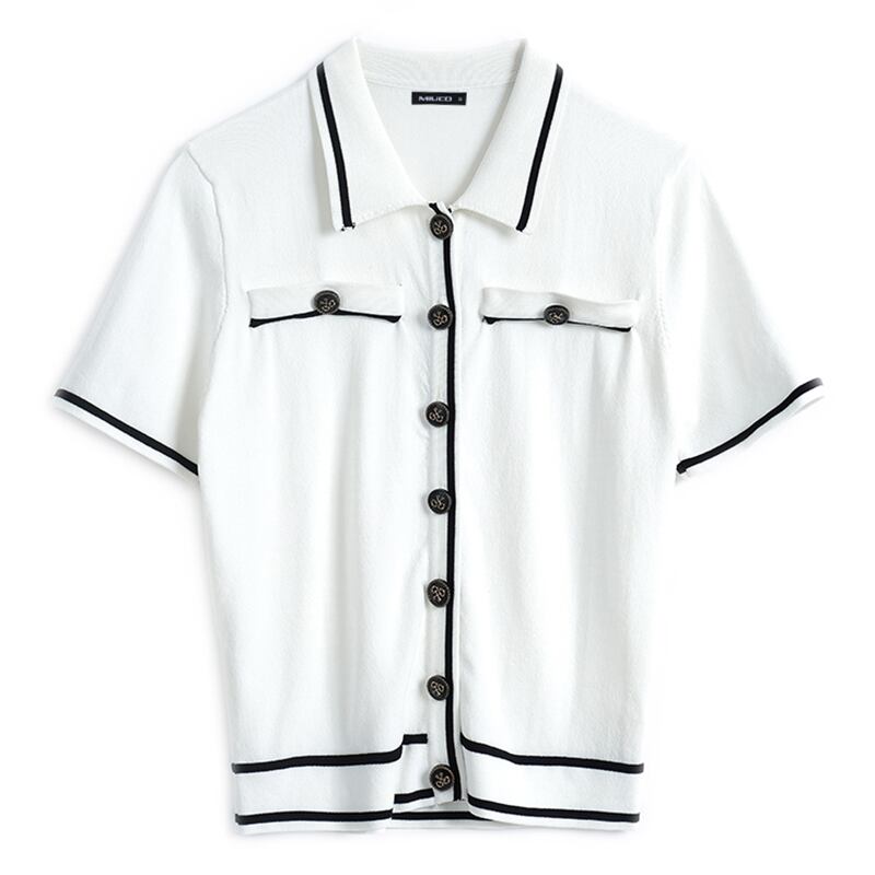 カラーストライプフィットニットセーター トップス サマー 夏物 MIUCO70331604390