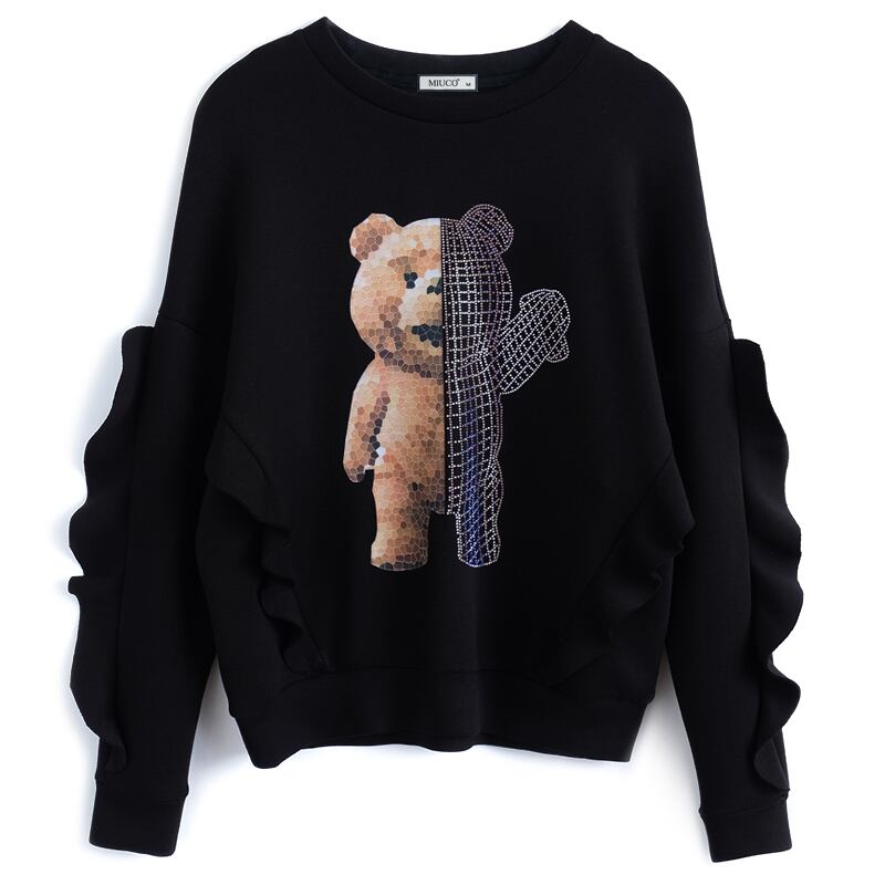 プリントラウンドネックカジュアルセーター オータム 秋物 Oネック ステッチ MIUCO22919125850