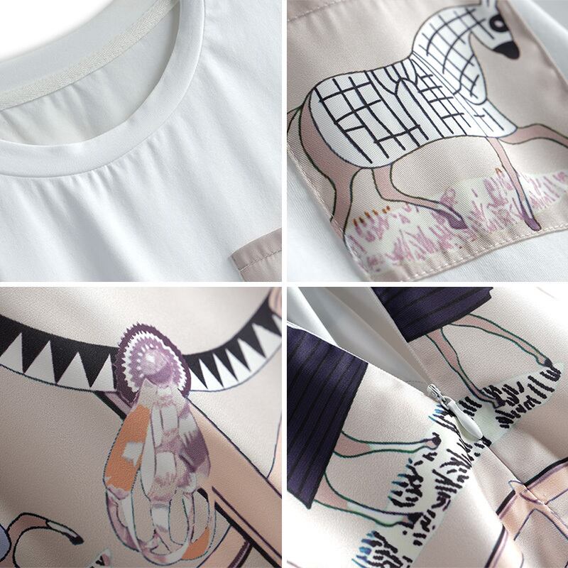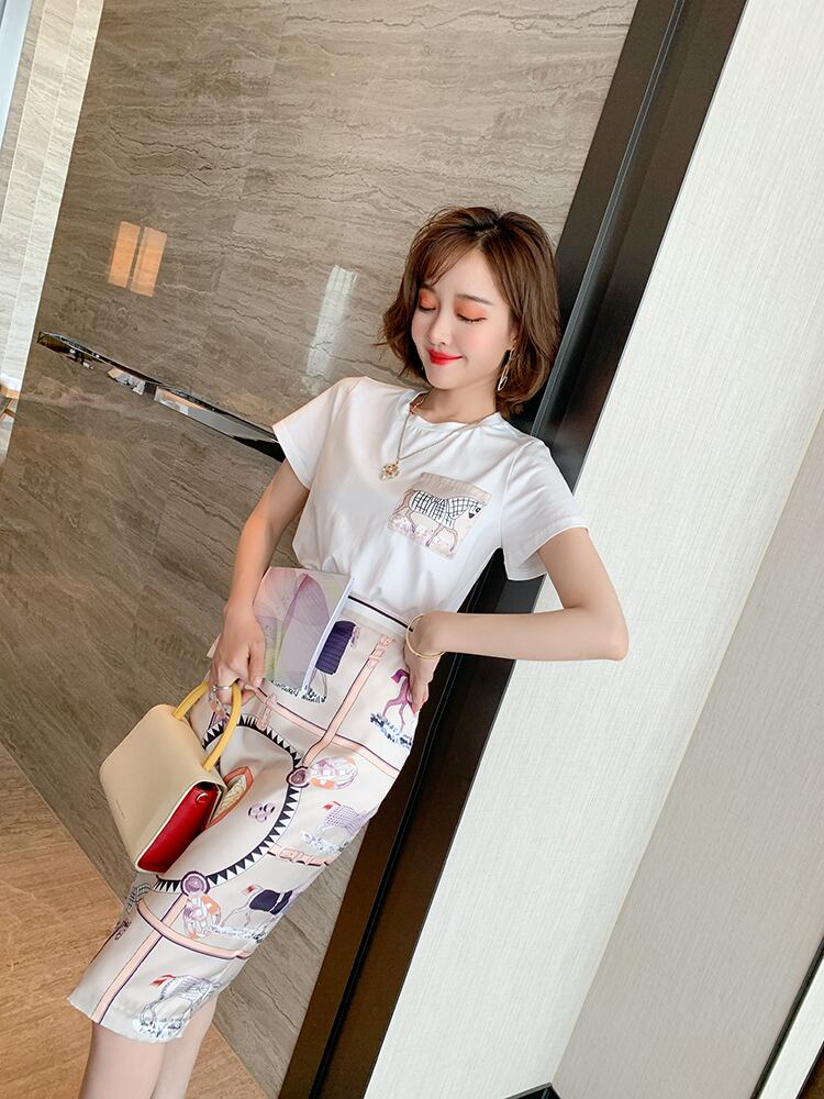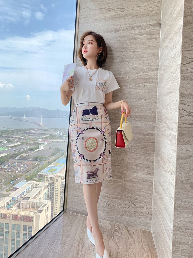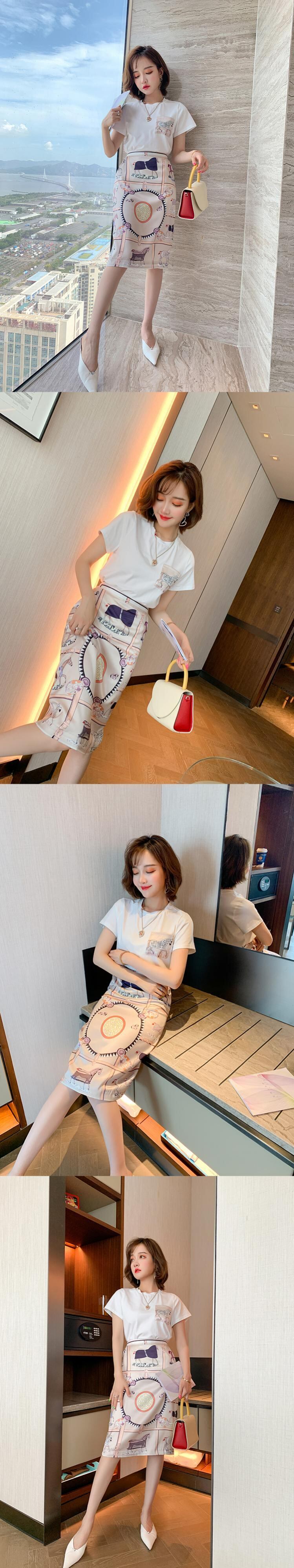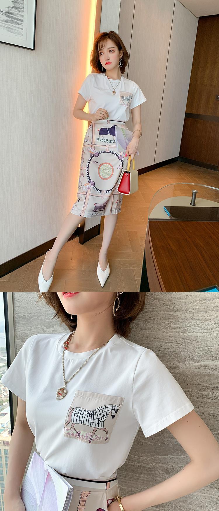 プリントポケットラウンドネックTシャツ ハイウェストウェストスカート サマー 夏物 Oネック MIUCO57522429947