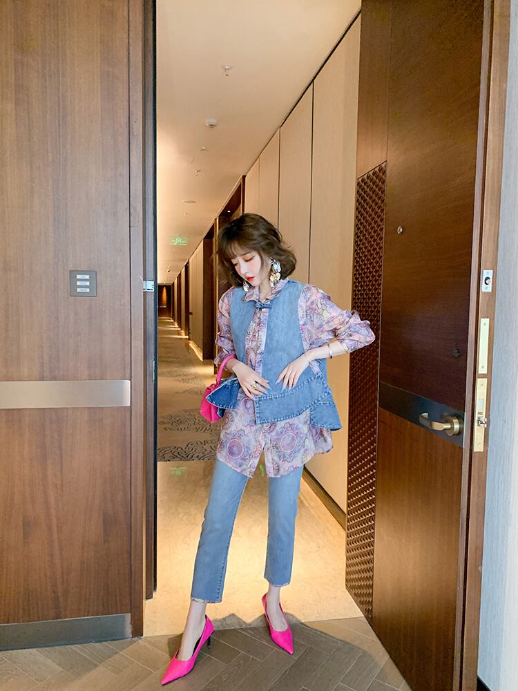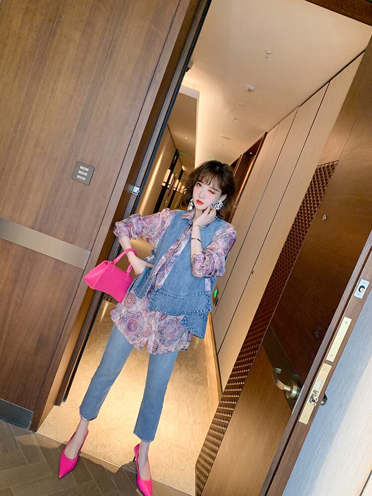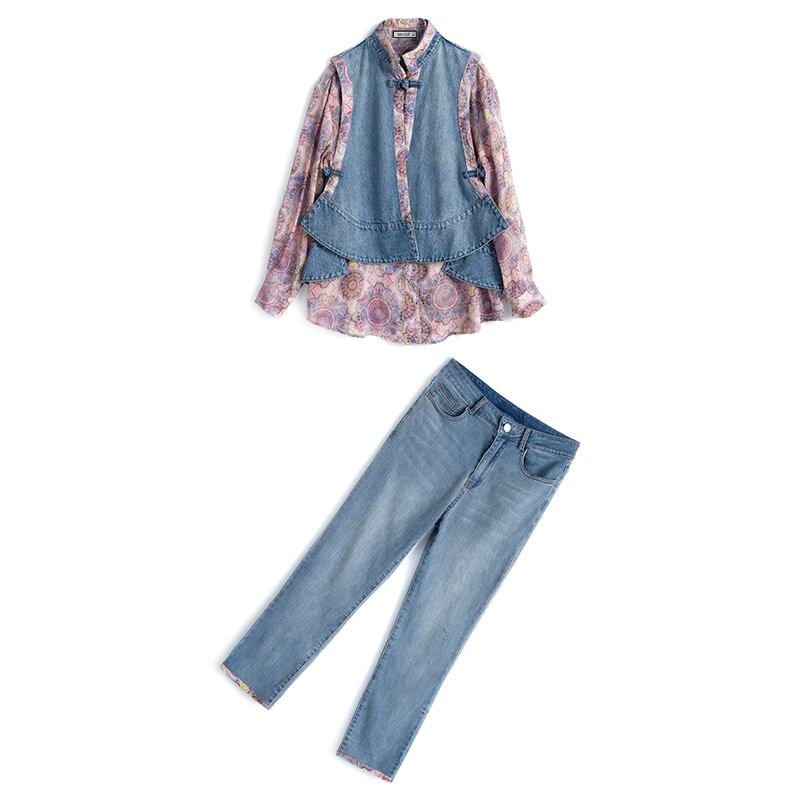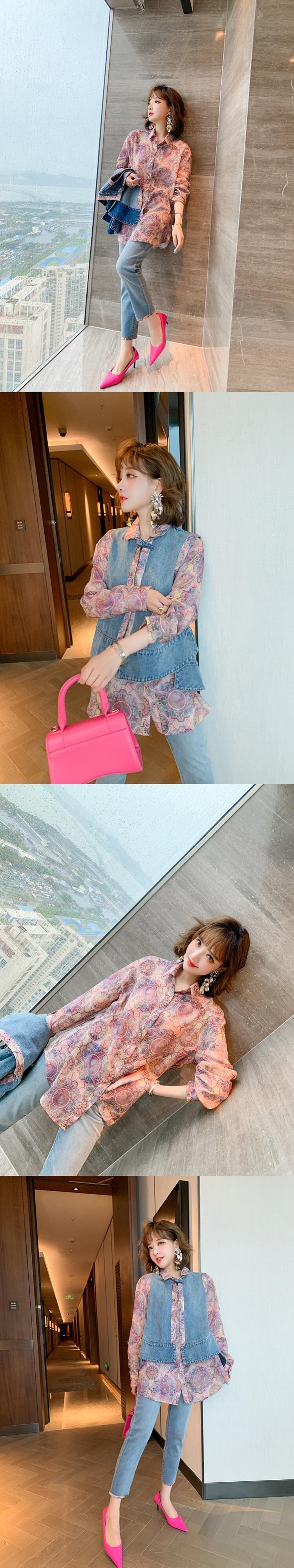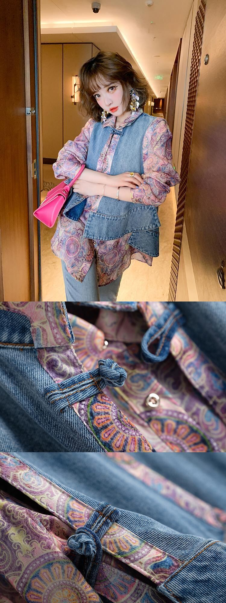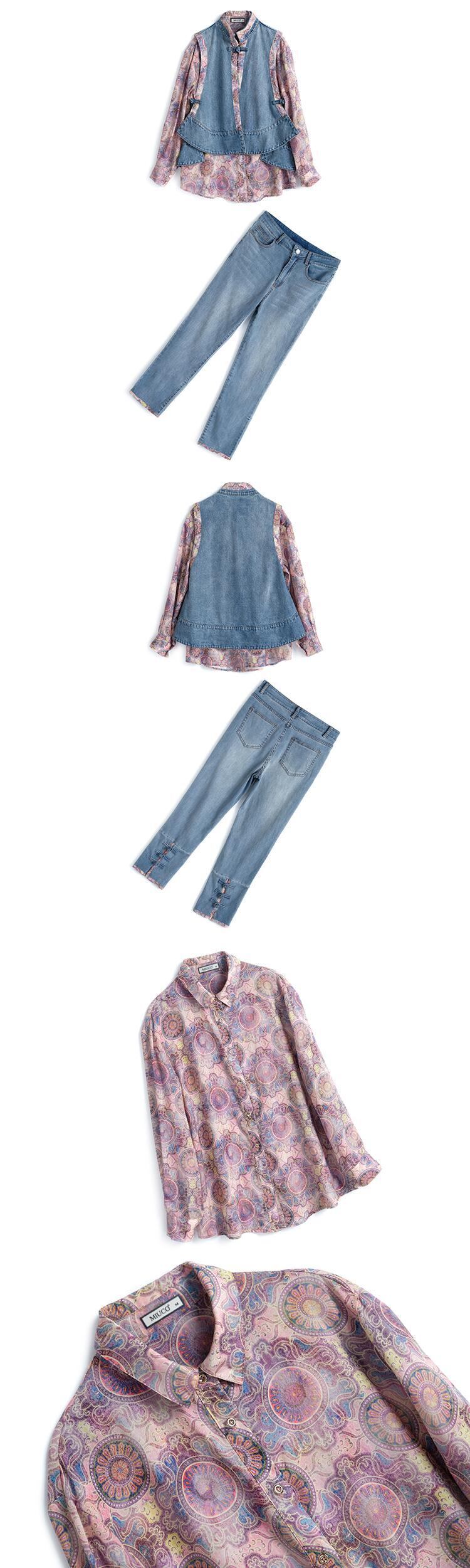 スタンダードプリント柄シャツ ボタンジーンズ オータム レトロ 秋物 MIUCO63932582855