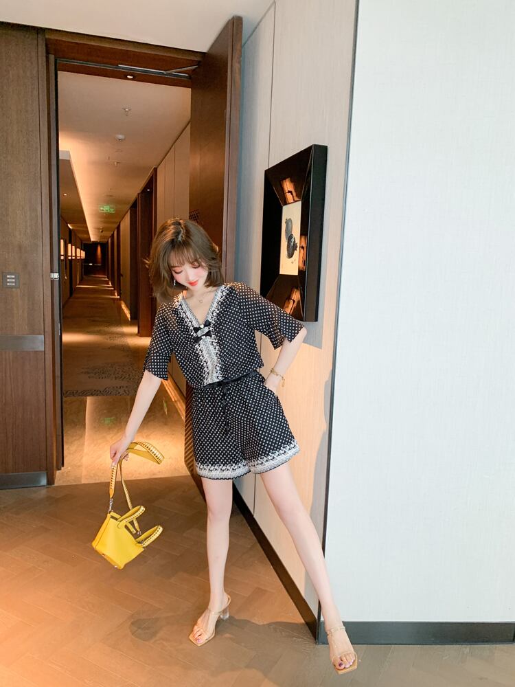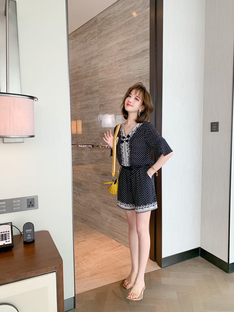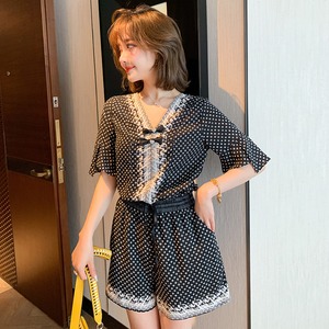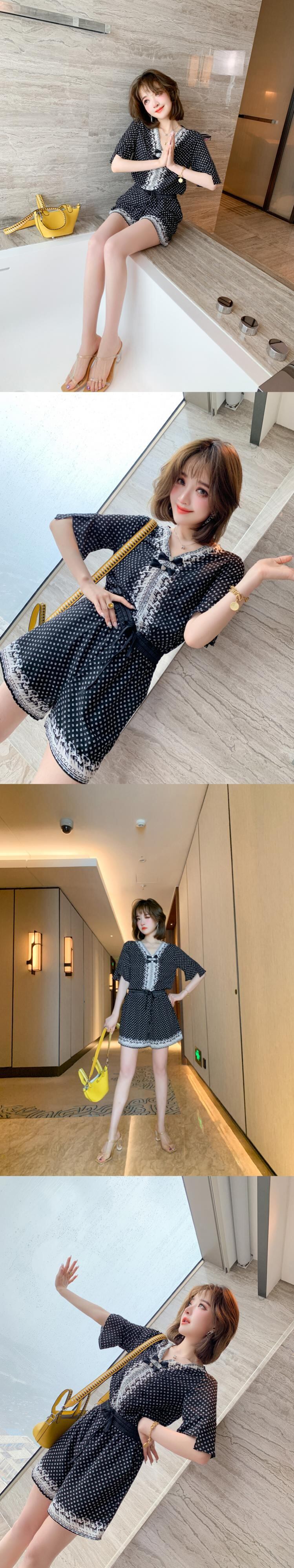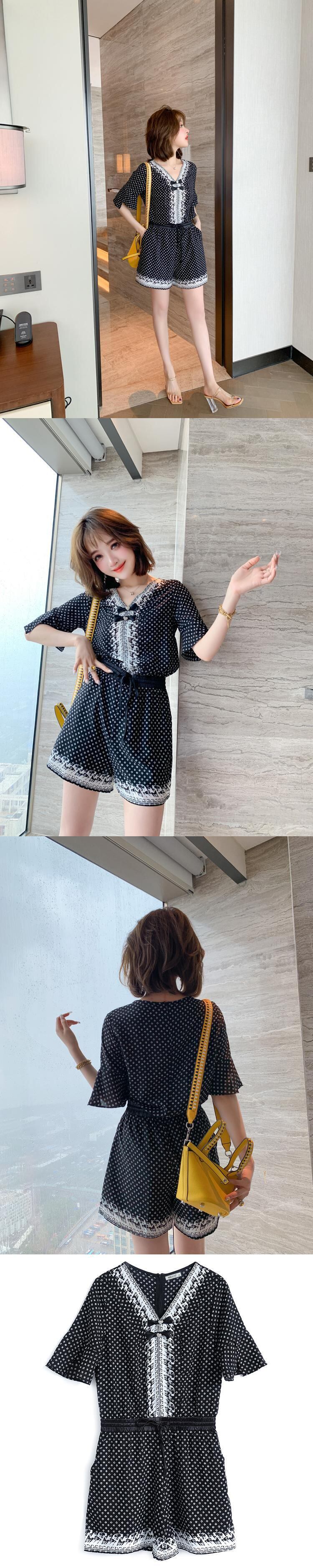 Vネックスリーブベルト ウェストワイドレッグワンピースショーツ サマースタイル フレアスリーブ リボン 夏物 ハーネス ブルマー ワイドパンツ MIUCO6381125251