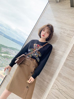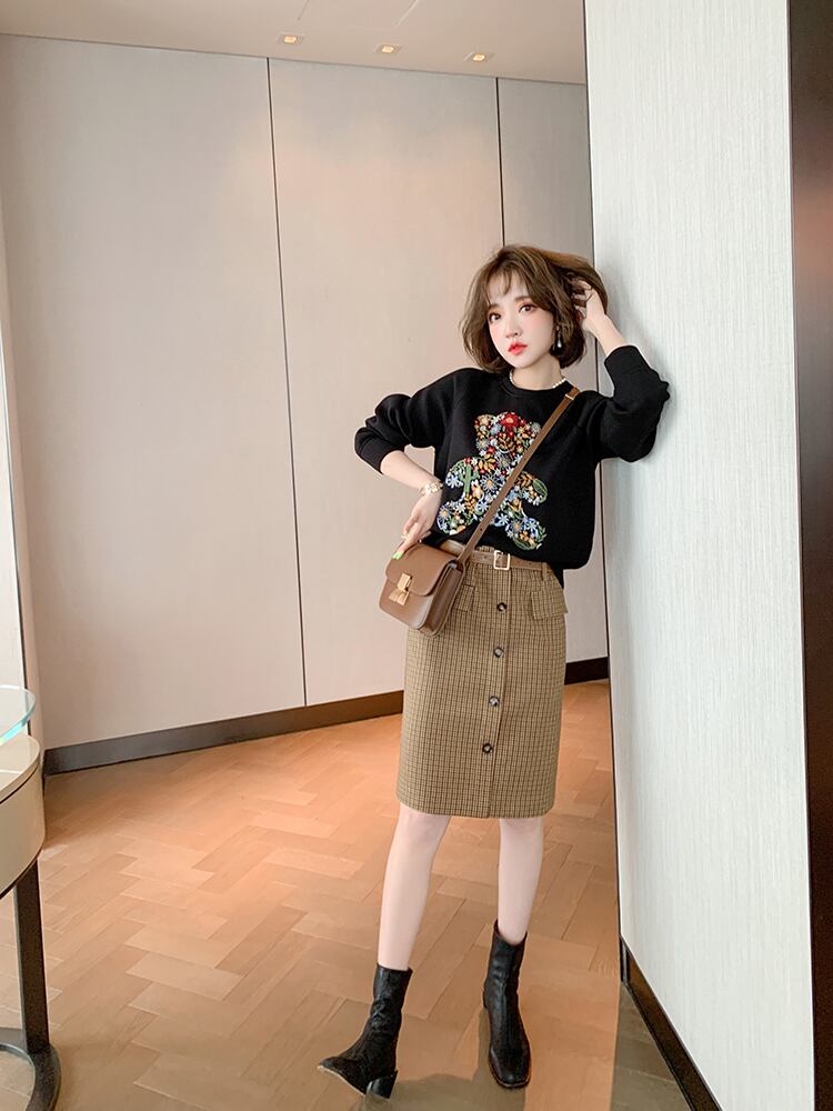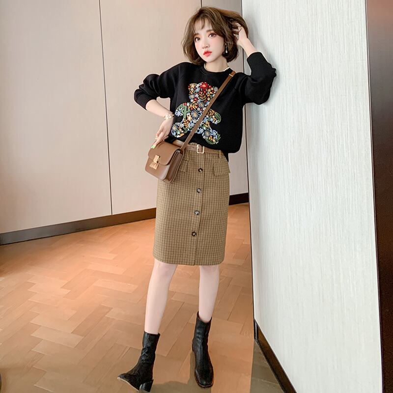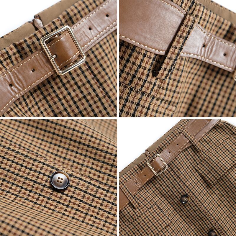 スタンダードスタイルベルト ウェスト格子柄スカート オータム レトロ 秋物 ハーネス MIUCO21123339914