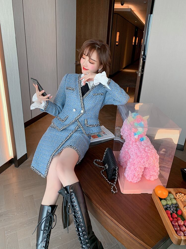 ゴールドツィードVネックジャケット スカート オータム 秋物 MIUCO58903033786