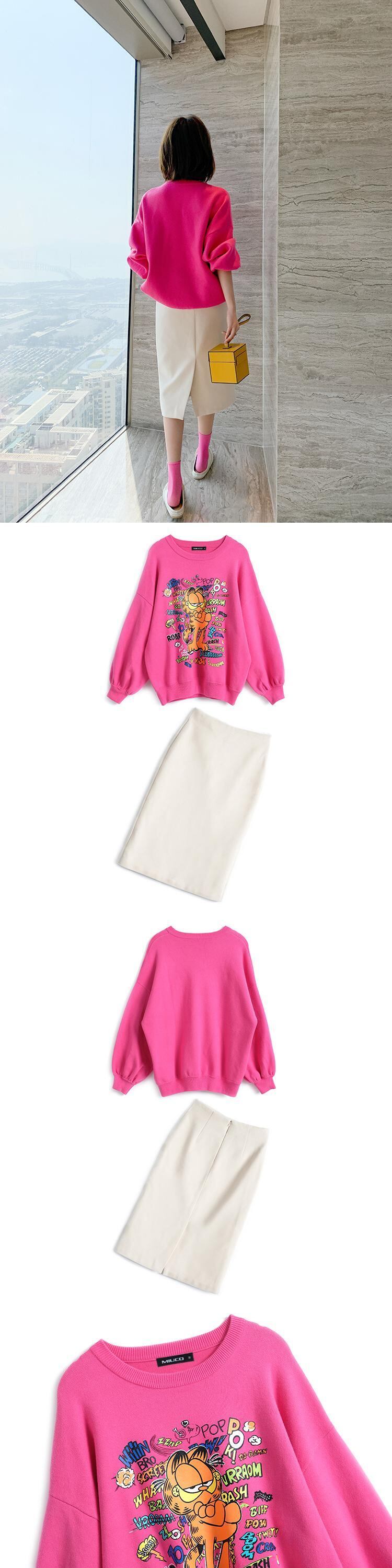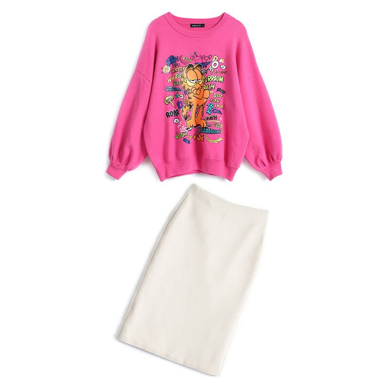 プリント柄ルーズセーター ウェストAラインスカート セット 大人ガーリー スウィート キュート カジュアル ウィンター 冬物 MIUCO64271322504