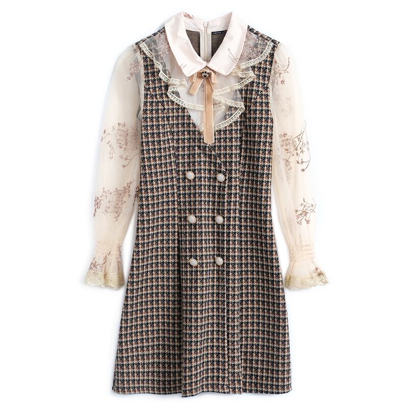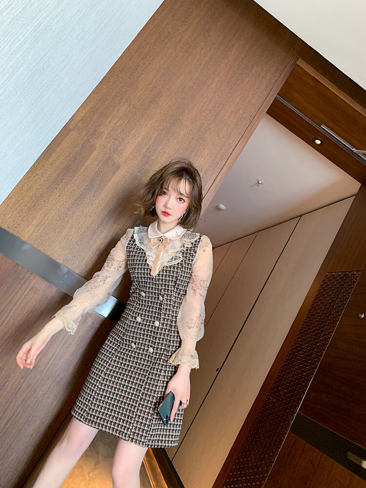 メッシュドレス スプリング レッド 刺繍 春物 MIUCO42737130386