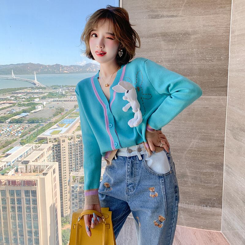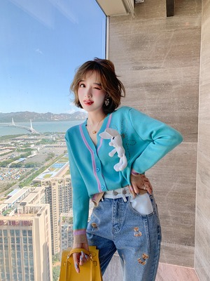刺繍カラーニットカーディガンオータムスタイル 秋物 MIUCO56219349461