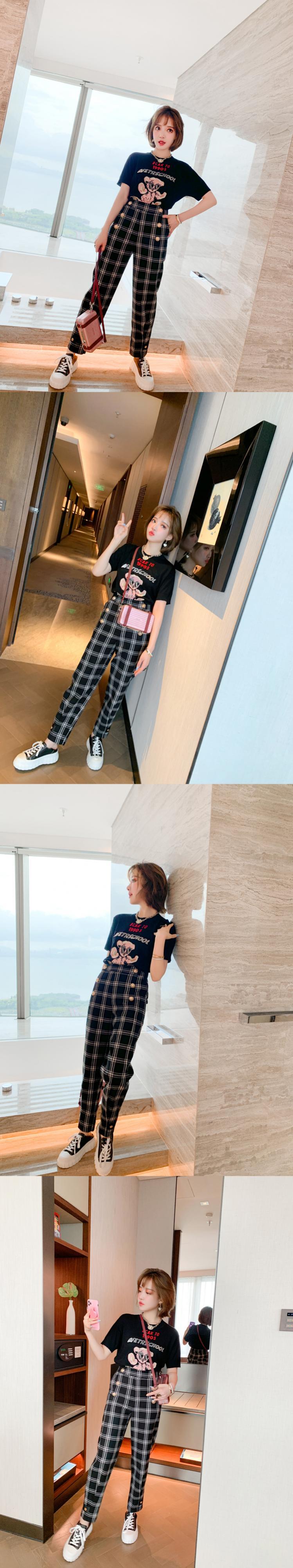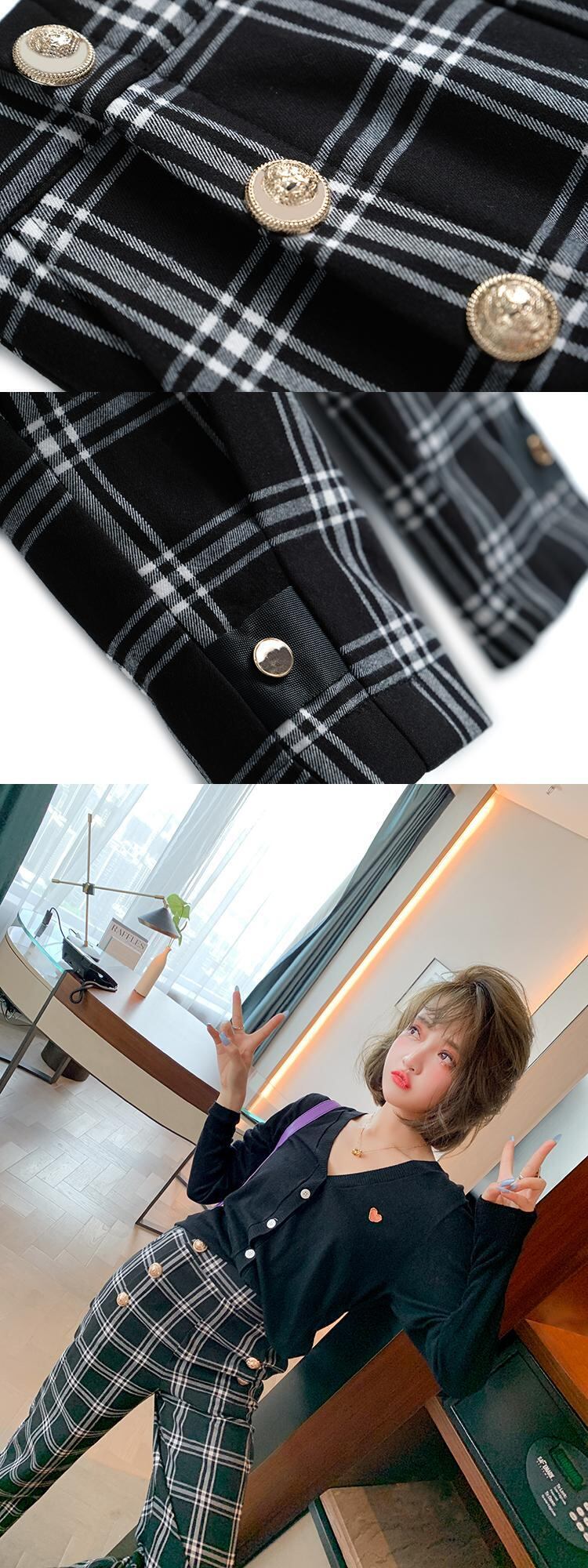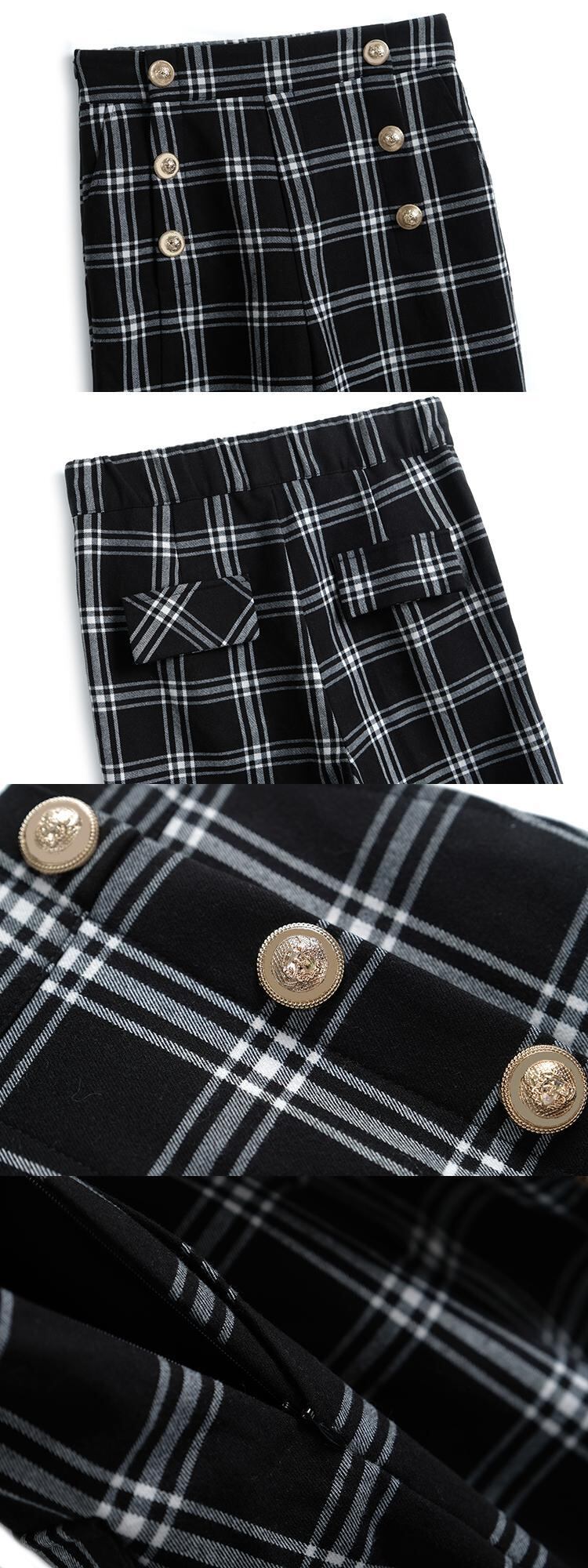 スタンダード格子柄ウェストスリムダブルボタンルーズパンツ レトロ MIUCO10723038410