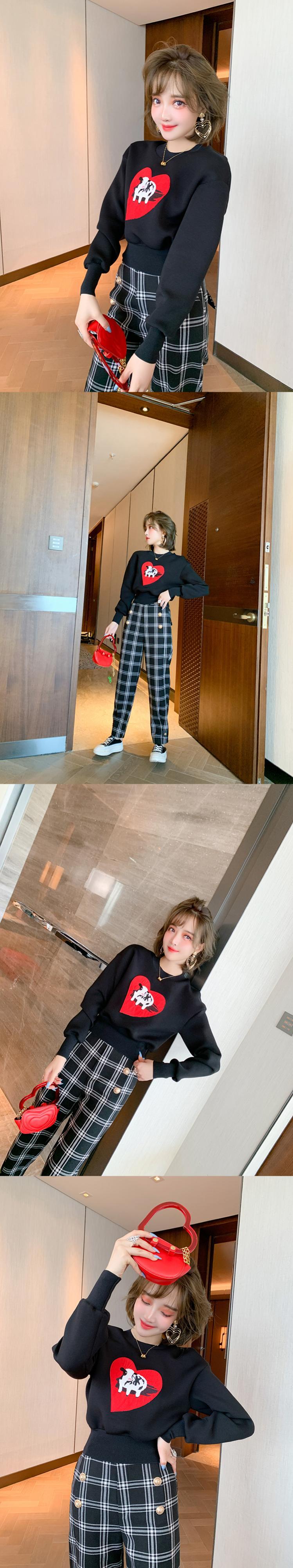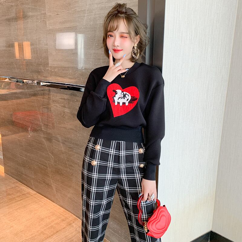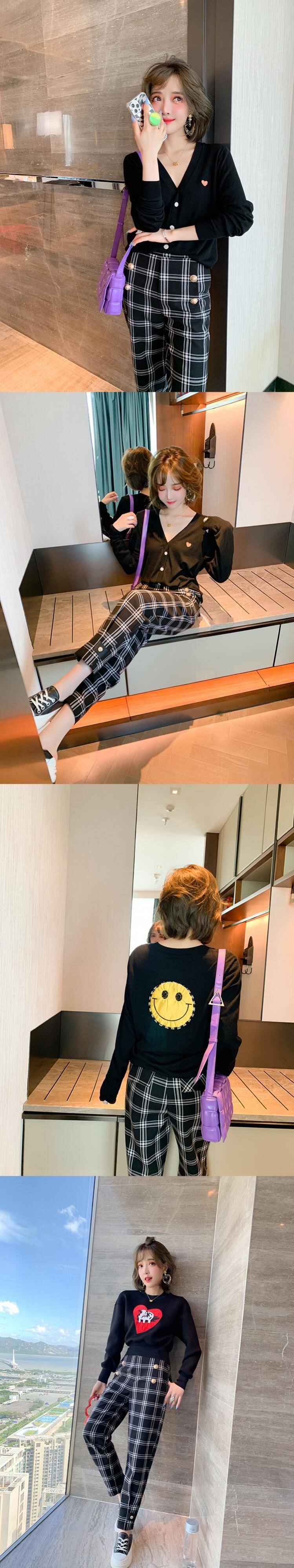 スタンダード格子柄ウェストスリムダブルボタンルーズパンツ レトロ MIUCO10723038410