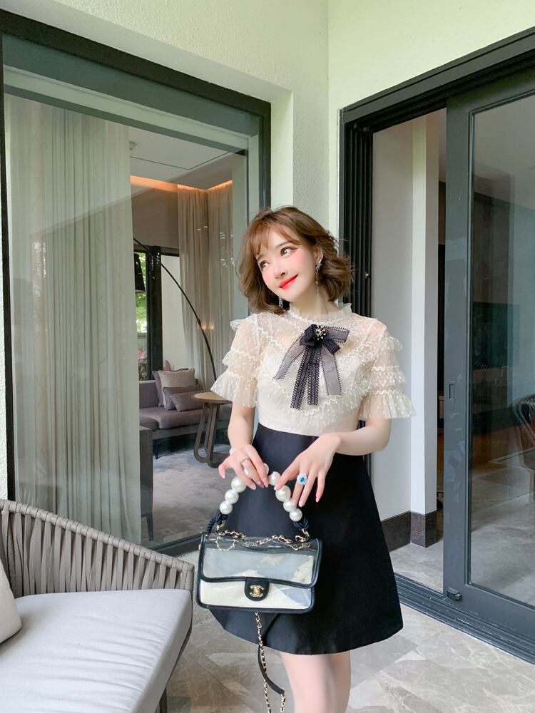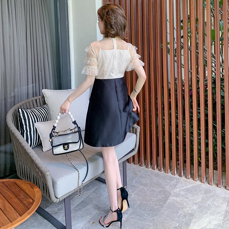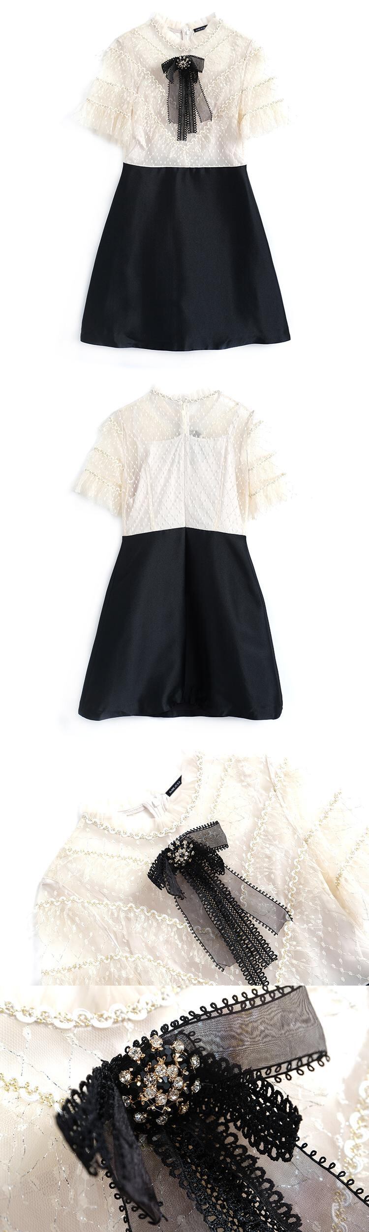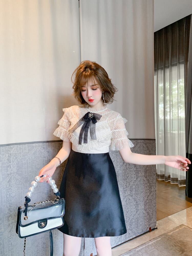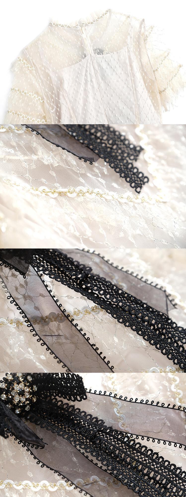 レースウェストAラインドレス サマー レッド リボン 刺繍 夏物 MIUCO78625062973