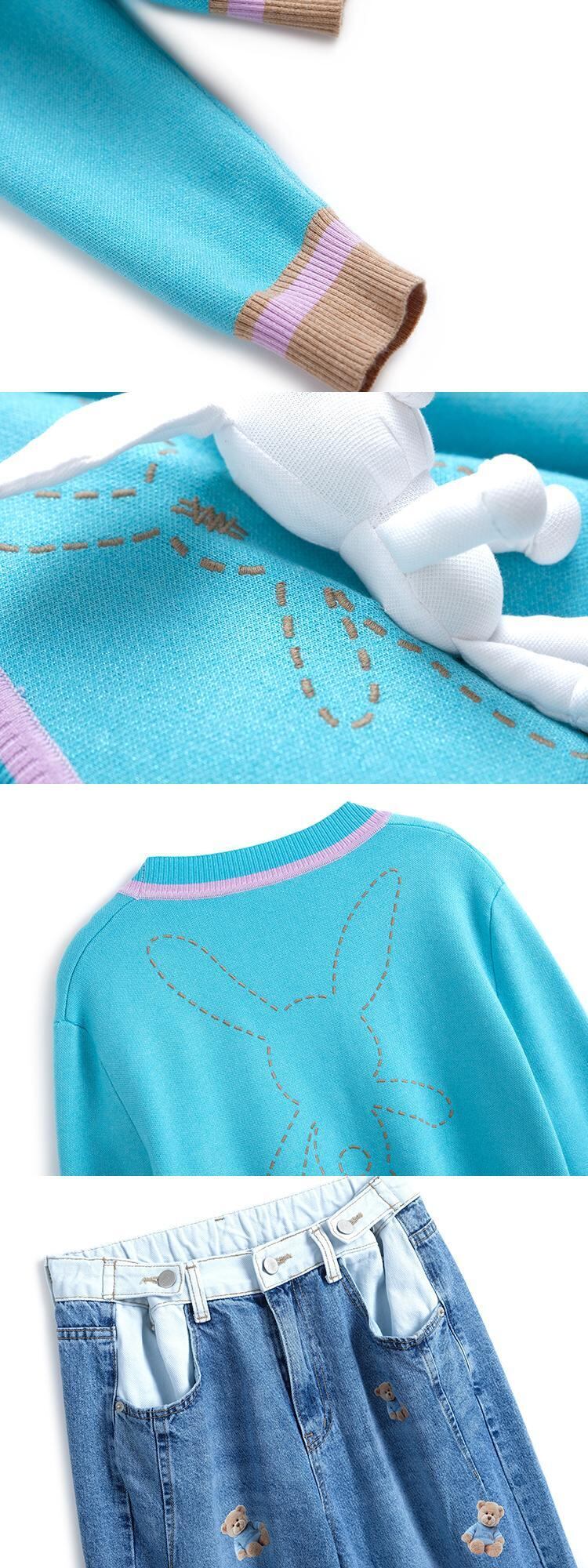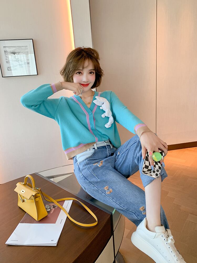 ニットカーディガンプリント柄カジュアルジーンズ オータム 秋物 MIUCO20086651145