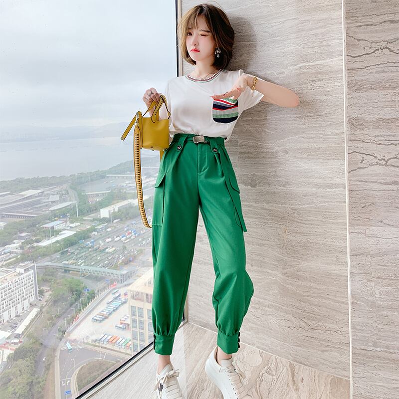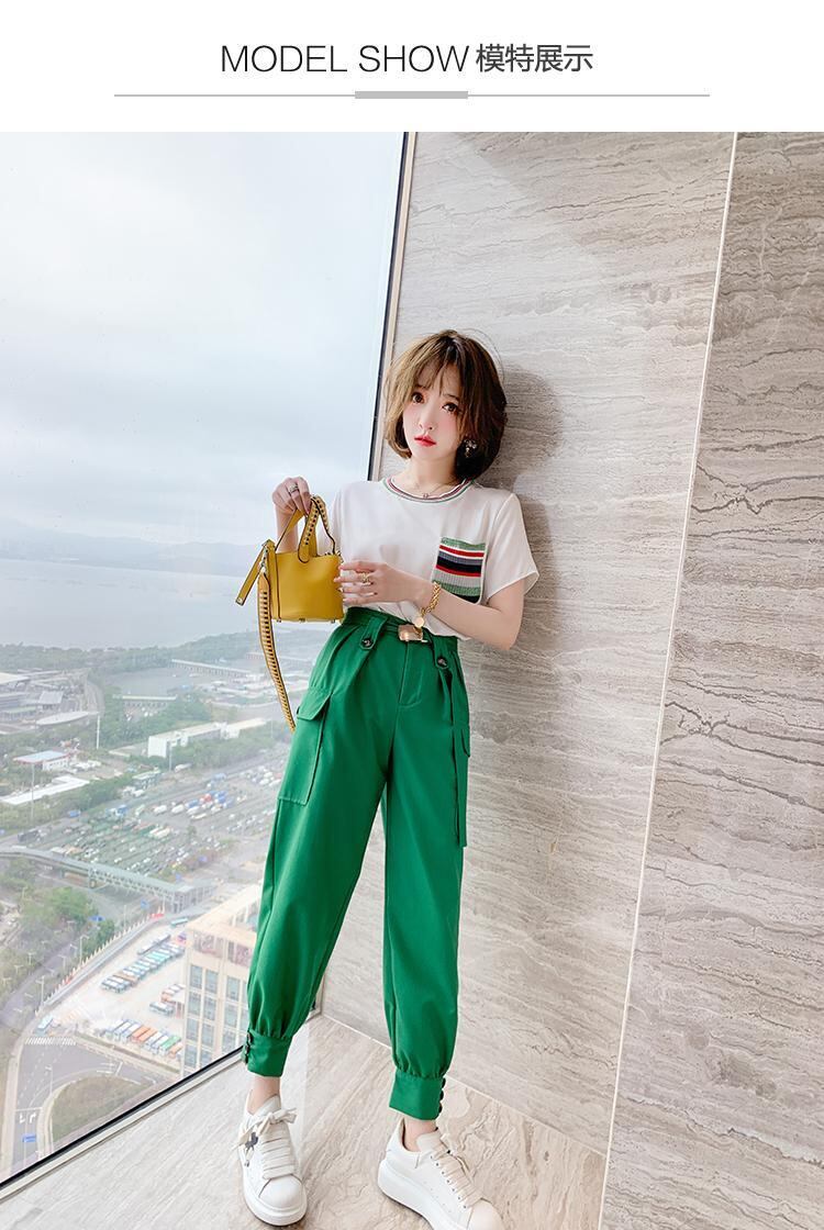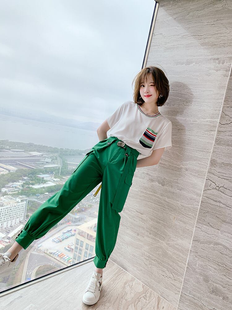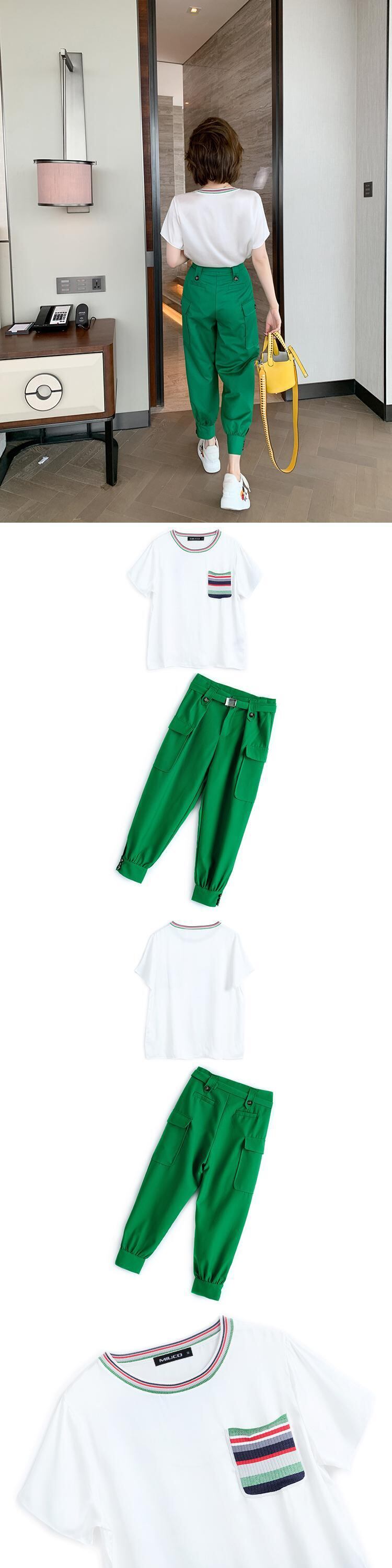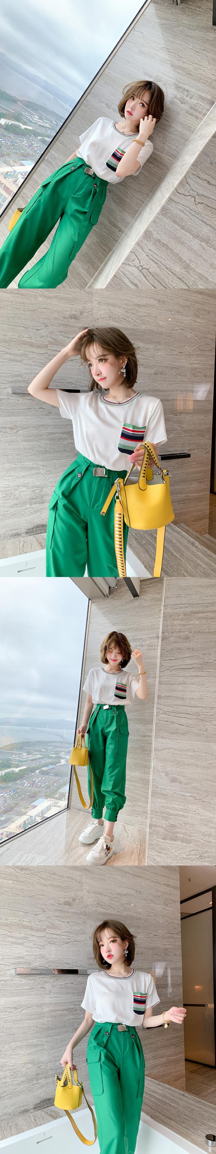 カラーニットルーズTシャツ ウェストスリムオーバーオール スプリング 春物 サマー 夏物 MIUCO81276346233