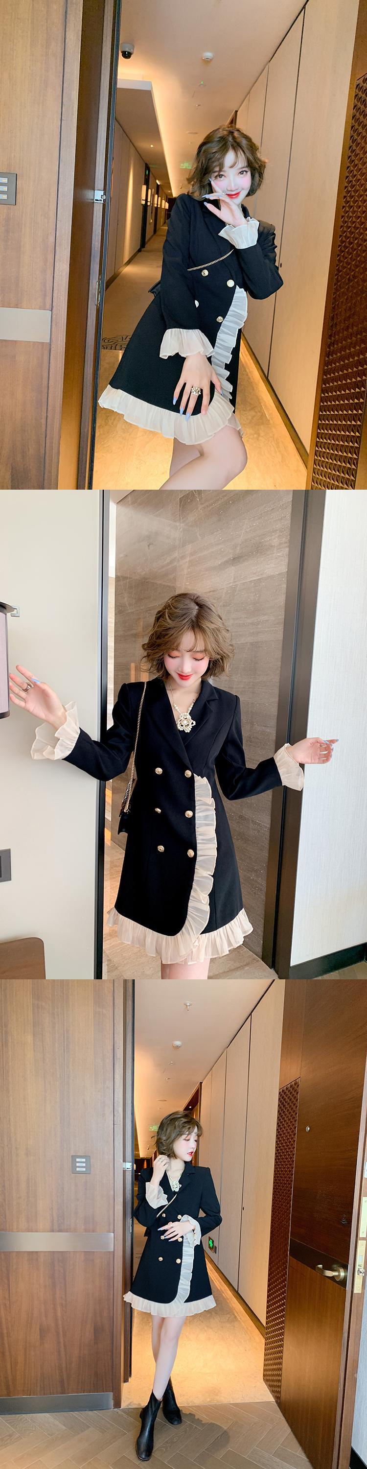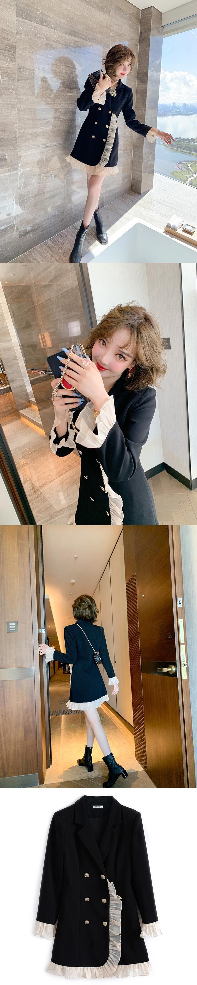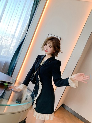カラーウェストドレス オータム 秋物 ステッチ MIUCO92958783673